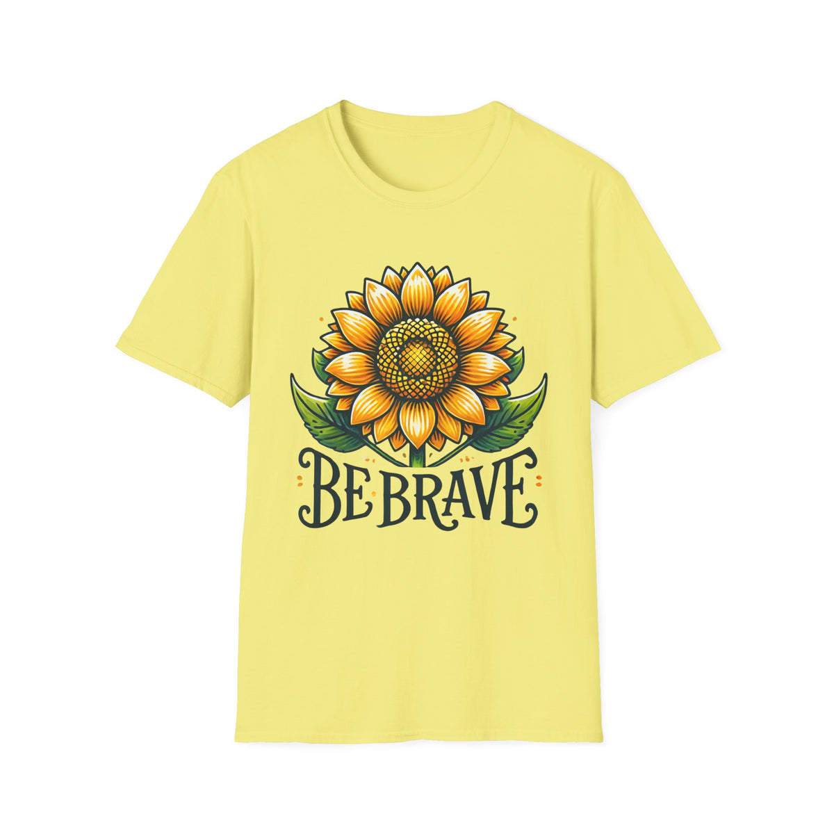 Be Brave Motivational Sunflower Shirt | Botanical Shirt | Positive Message Empowerment Shirt | Nature Lover Gift | Unisex Soft Style T-Shirt