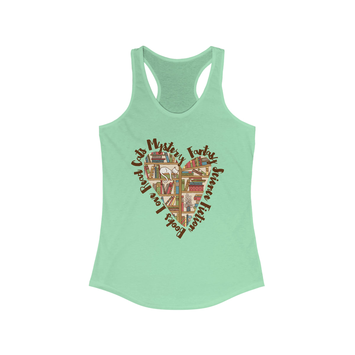 Book Lover Heart Cat Lady T-shirt | Cat Lover Bookworm Gifts | Women's Slim-fit Racerback Tank Top