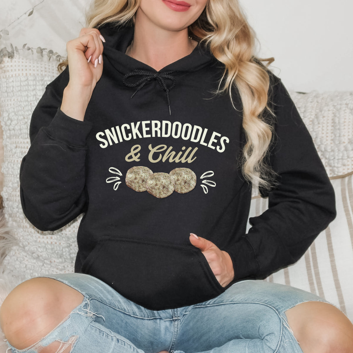Our Snickerdoodles and Chill cookies shirt is a great Netflix and Chill spoof and is the best Snickerdoodle cookie gift for your favorite foodie cookie lover! These baking t-shirts are unisex hooded sweatshirts that come in 5 colors.
