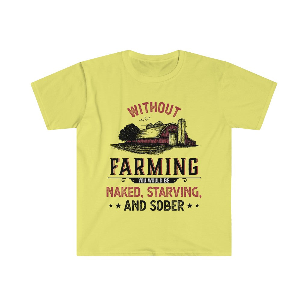 Our funny farm shirt features the text "Without farming you would be naked, starving and sober" and it's a perfect gift for your favorite farmie or anyone who appreciates farm life! These graphic tees are unisex t-shirts that come in 6 colors.