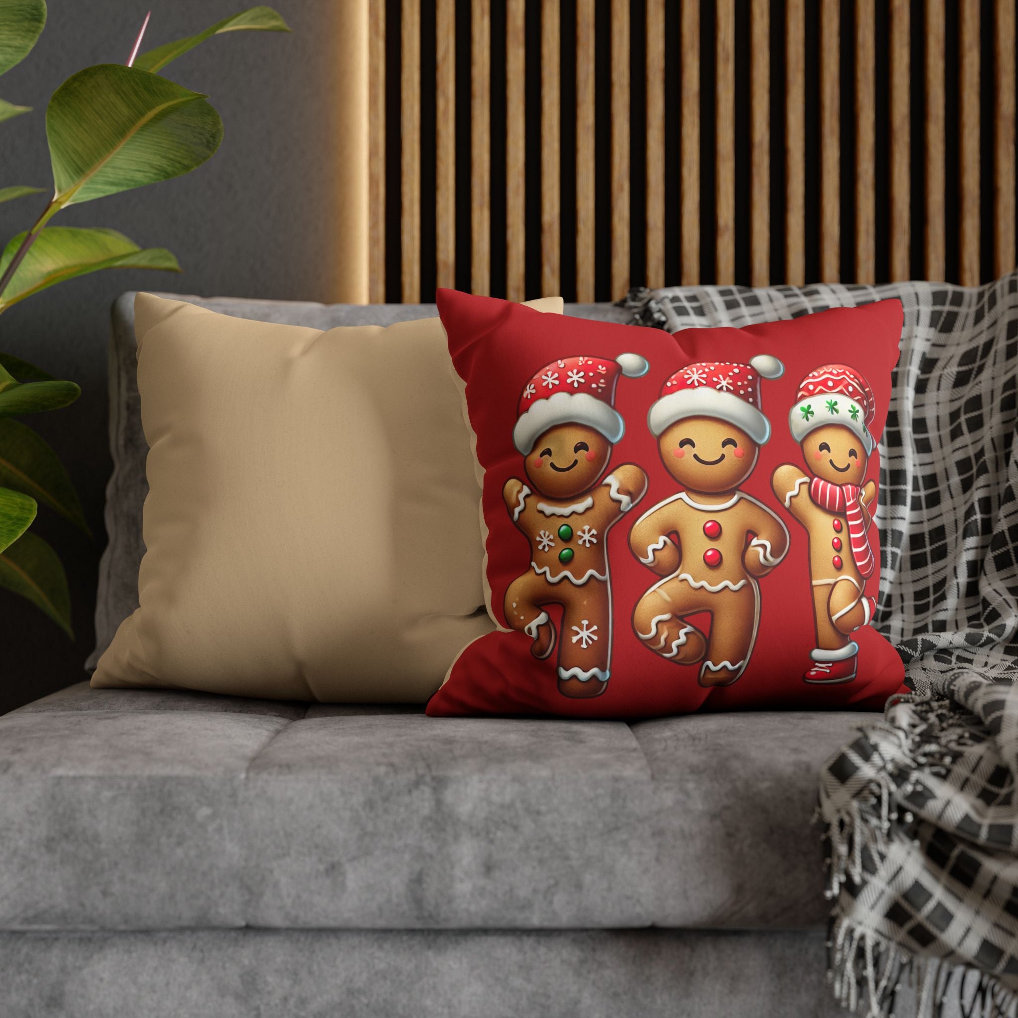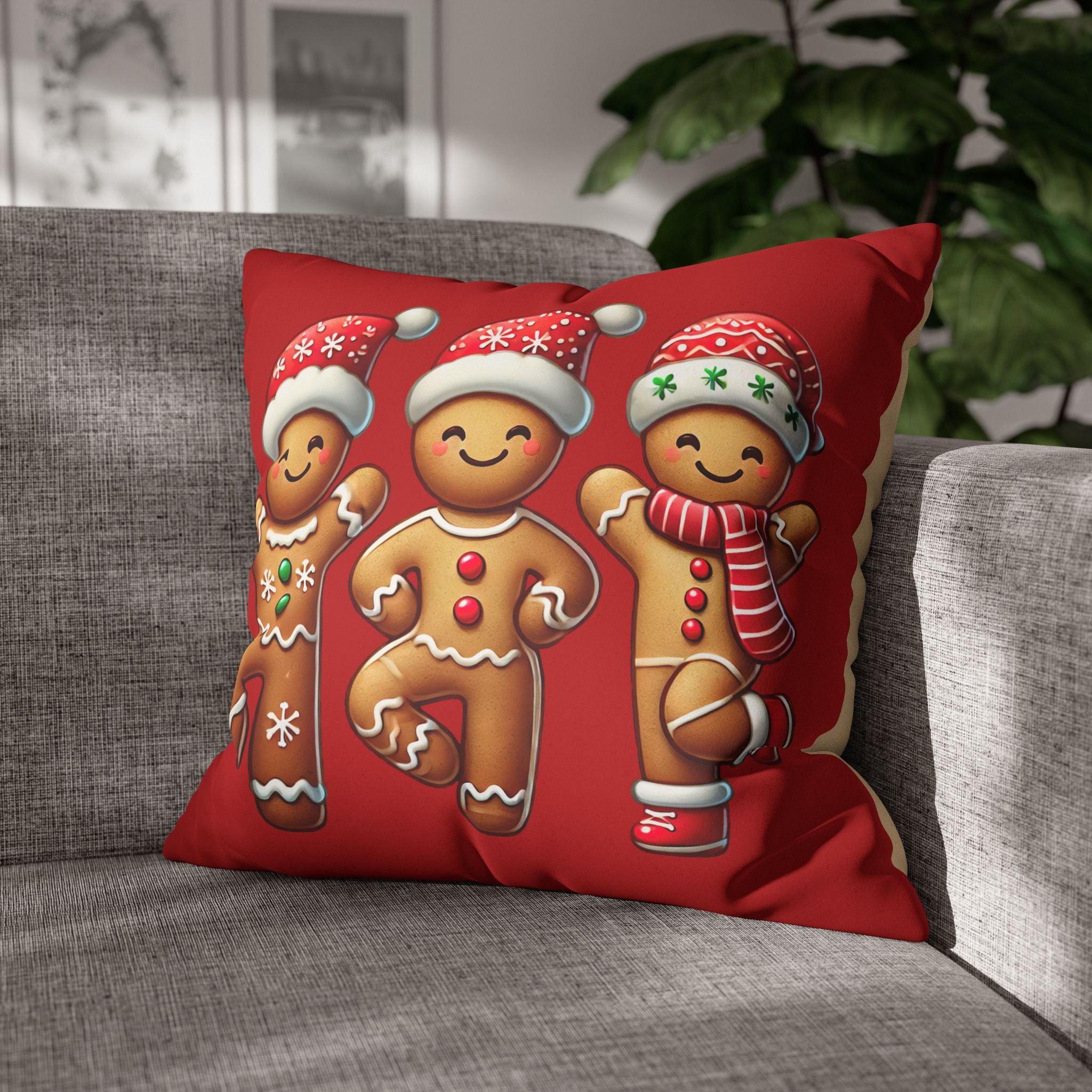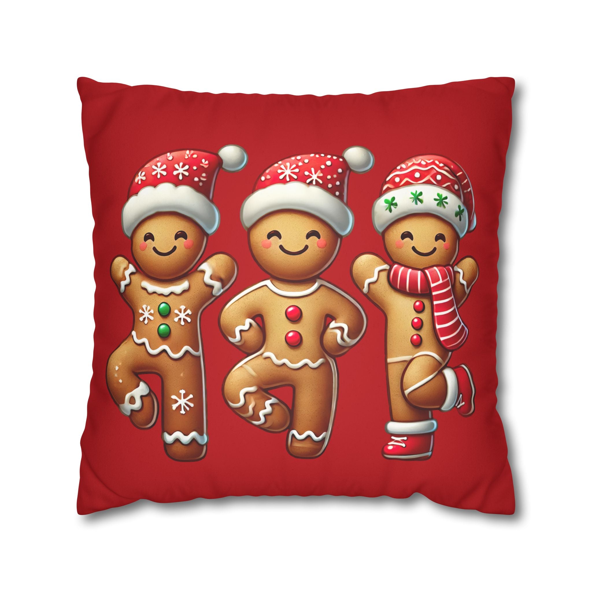 Dancing Gingerbread Cookies Christmas Pillowcase | Cute Gingerbread Man | Christmas Gift For Dancer | Faux Suede Square Pillowcase