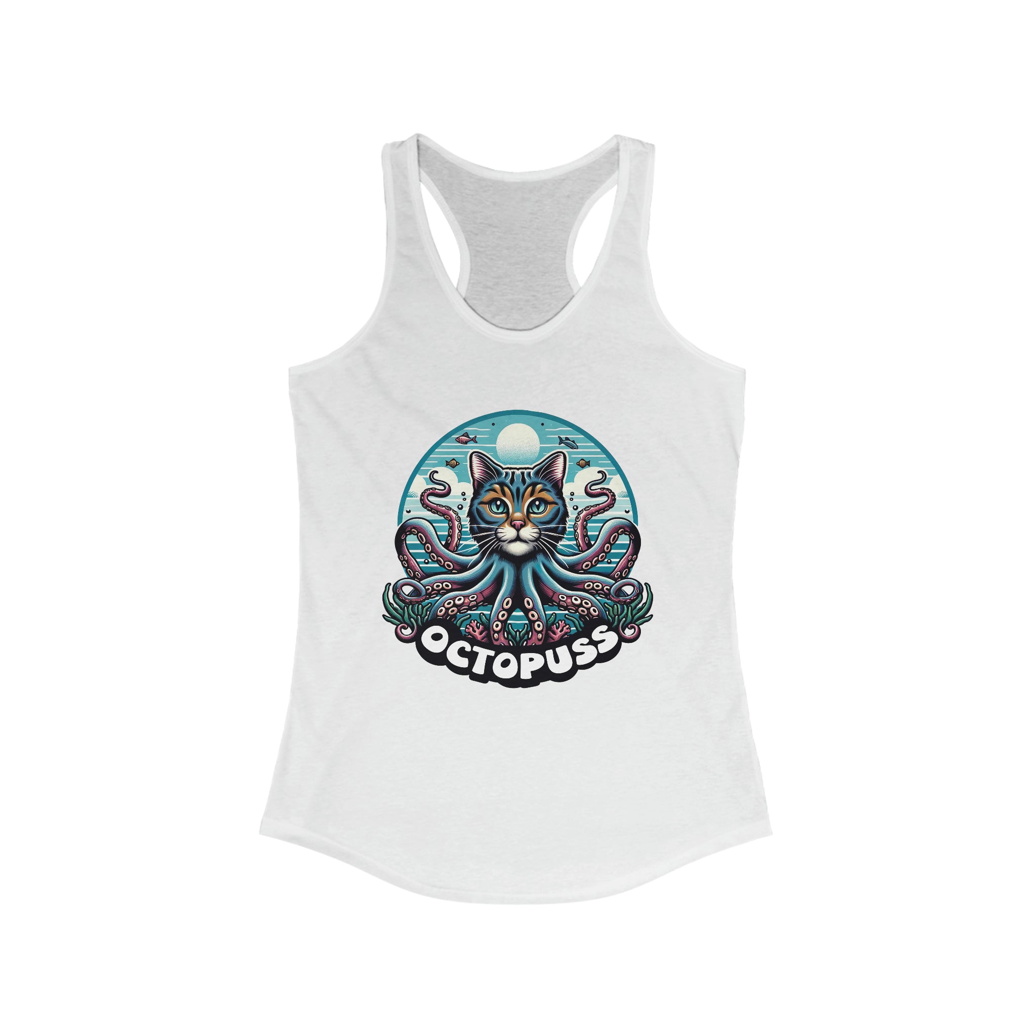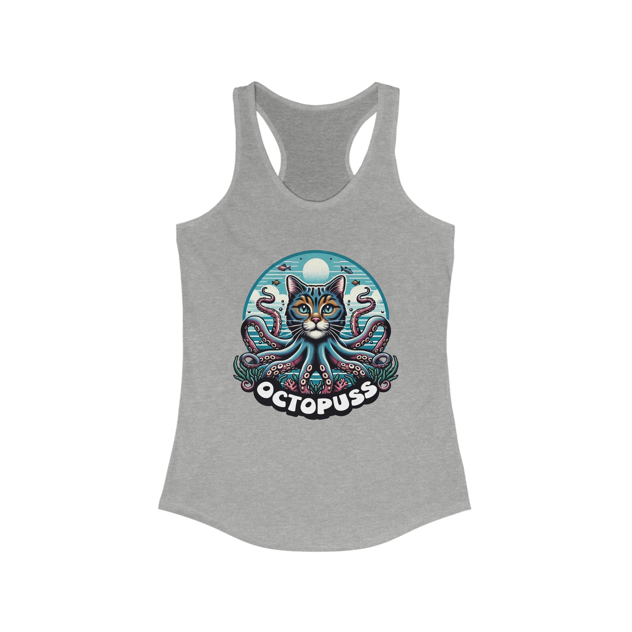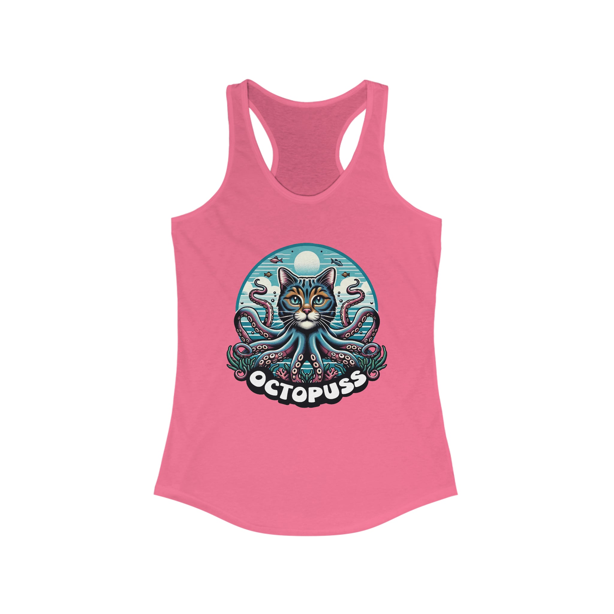 Our funny Octopuss Cat Shirt features a creature with a cat head and octopus body and it's a perfect cat lover gift or for any beach bum ocean lover! This women's slim-fit racerback tank top comes in 5 colors.