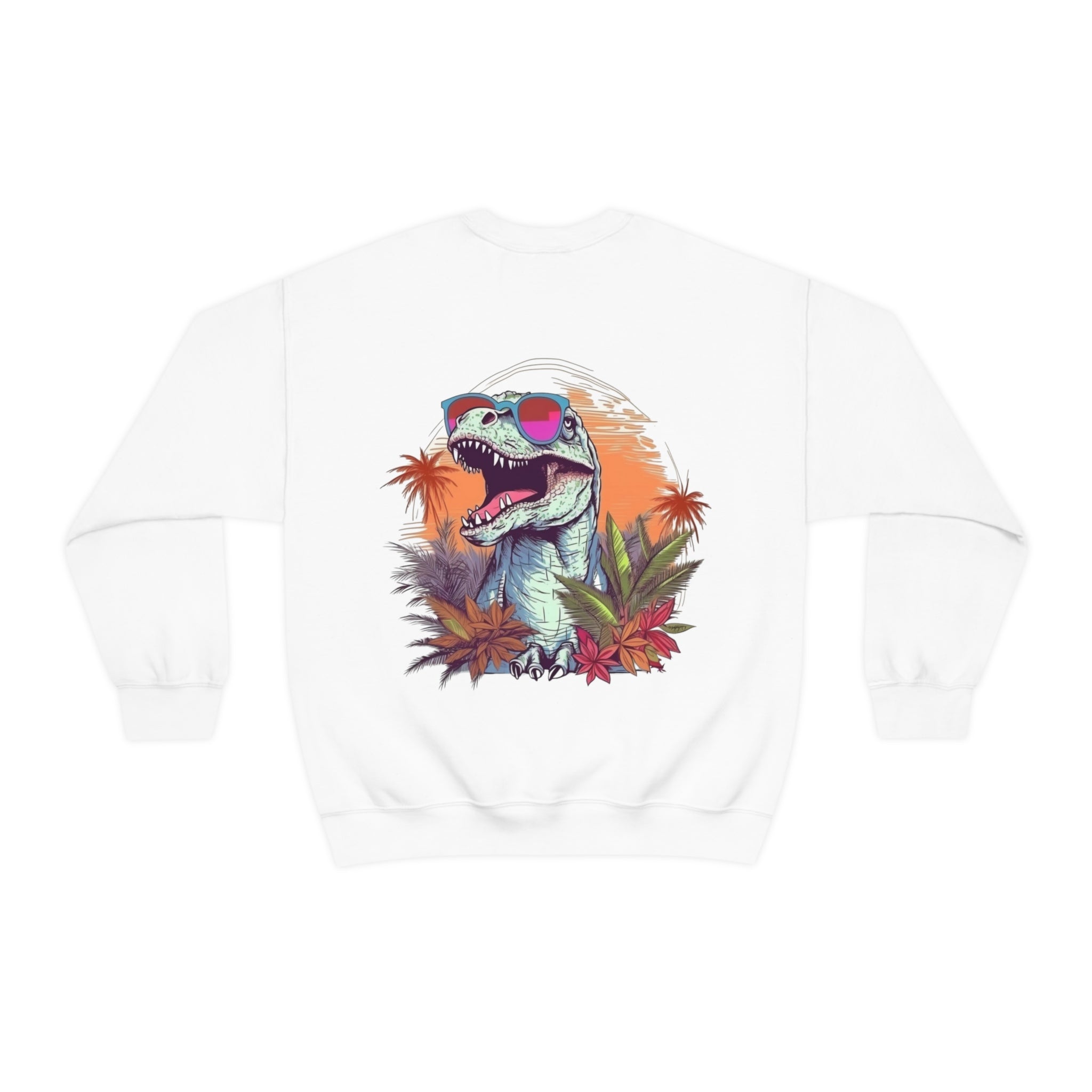 Our Beach Vibes T Rex Shirt is designed to bring a smile to your face and unleash your inner dinosaur lover while embracing the essence of beach life! This unisex crewneck sweatshirt features Beach Vibes on the front in the pocket area of the shirt with the sunglasses-wearing t-rex on the back.