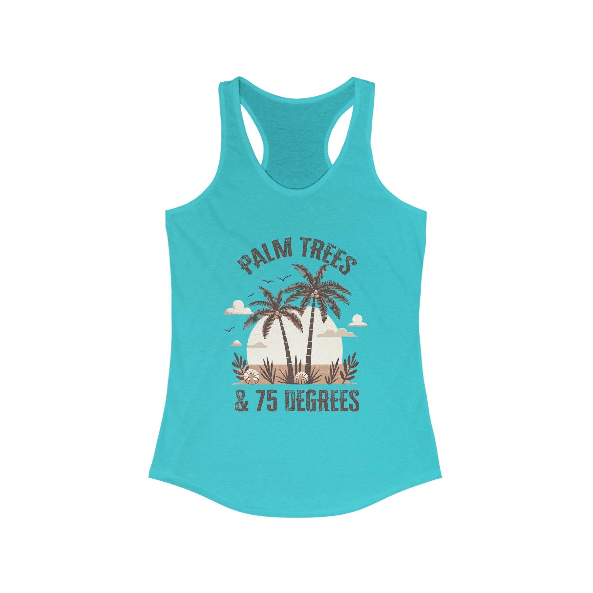 Palm Trees 75 Degrees California Beach Shirt | Beach Bum Shirt | Beach Lover Gift | Women's Slim Fit Racerback Tank Top