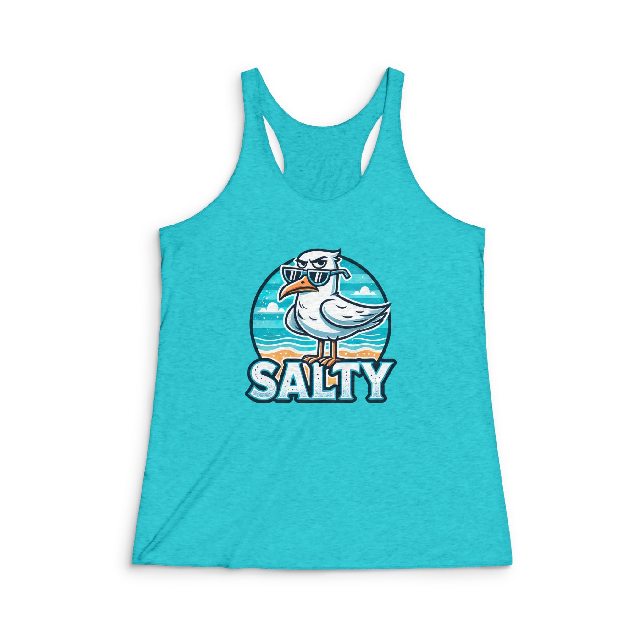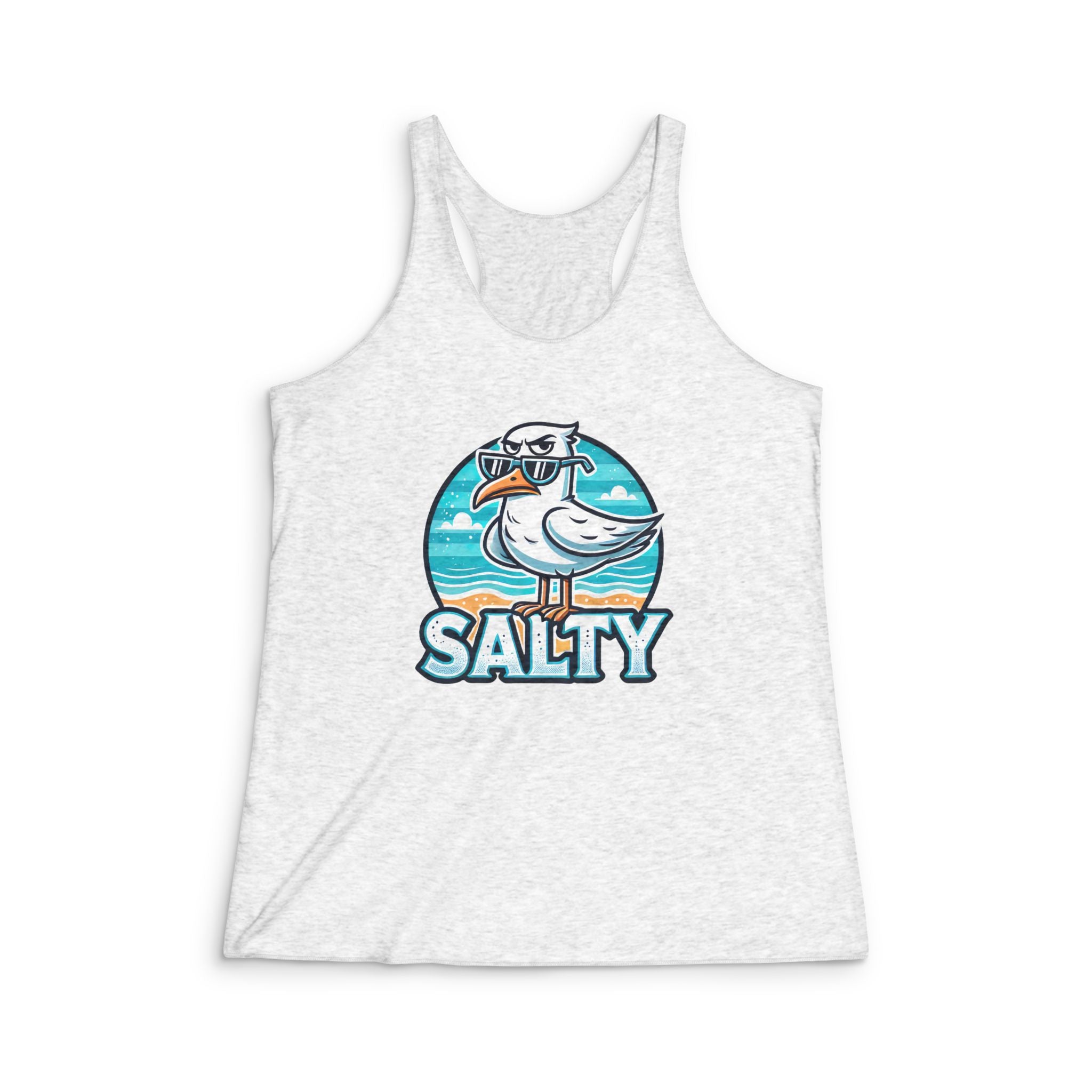Salty Seagull Funny Beach Bum Beach Shirt | Seagull T-shirt | Summer Vibes Beach Gift | Women's Tri-Blend Racerback Tank Top