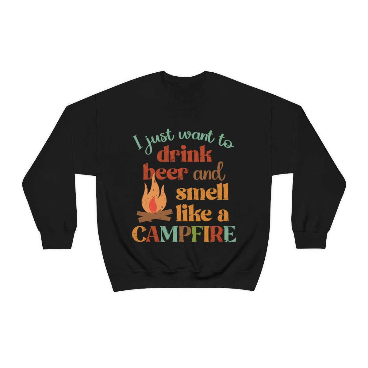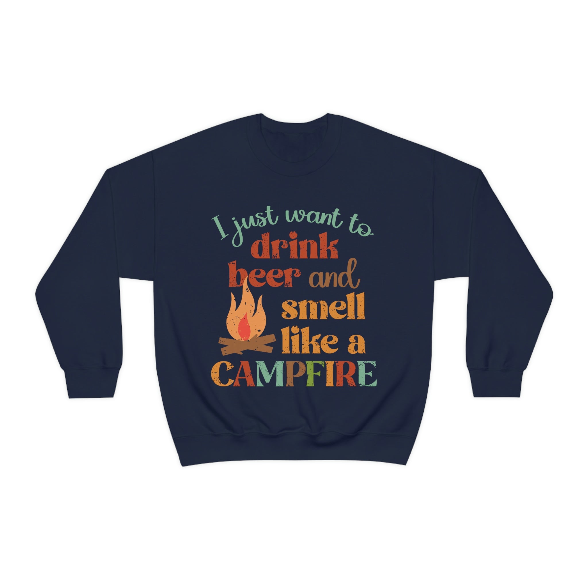 Our funny campfire shirt features the text "I just want to drink beer and smell like a campfire" and is a perfect camping gift for anyone who loves to drink beer in the great outdoors! This beer shirt is a unisex crewneck sweatshirt that comes in 3 colors.
