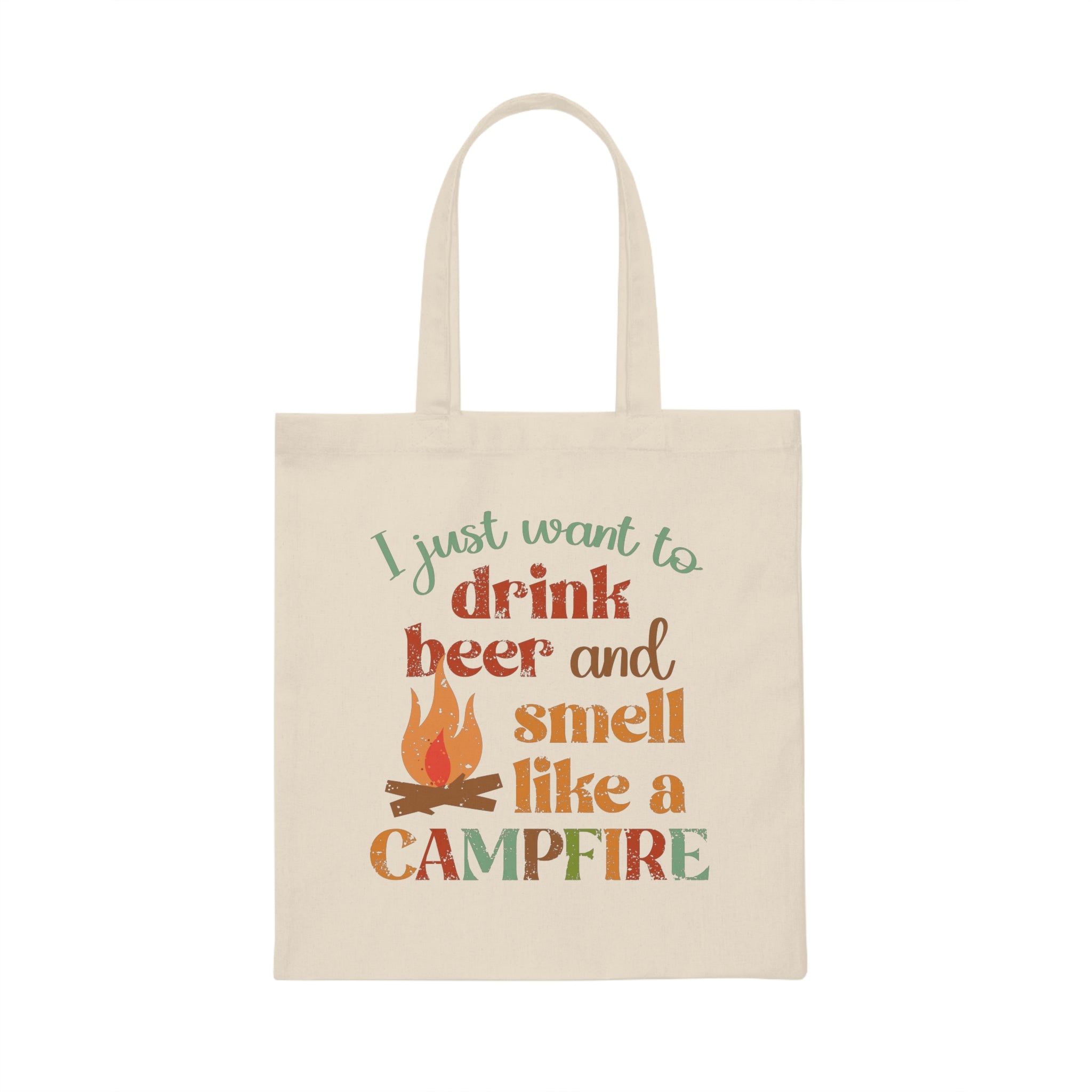 Smell Like a Campfire Beer Tote Bag | Camping Tote | Camping Gifts | Canvas Tote Bag