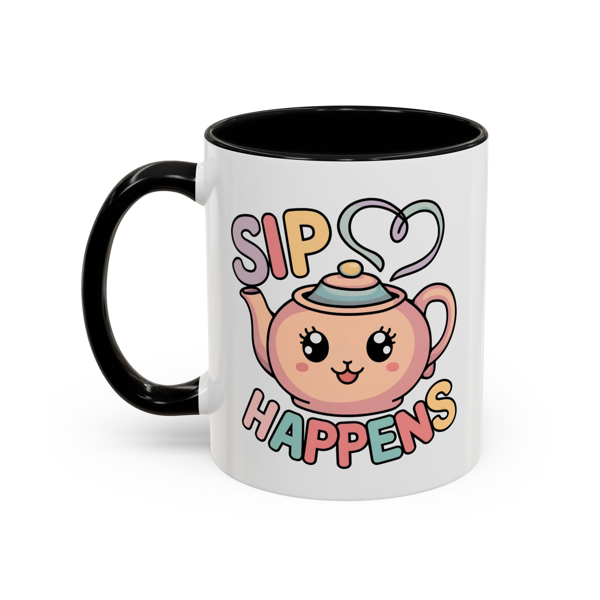 Sip Happens Karaii Tea Coffee Mug | Tea Lover Coffee Cup | 11 oz. Accent Colors Ceramic Coffee Mug