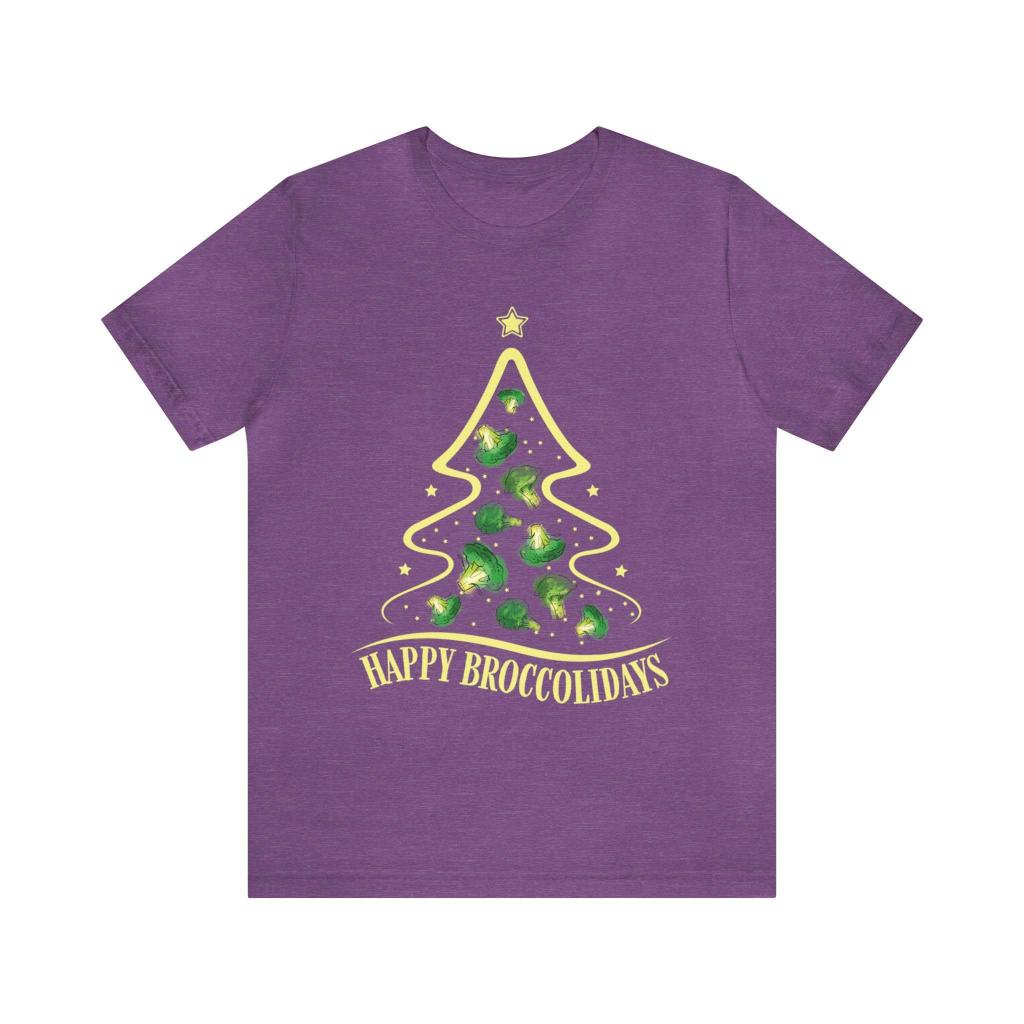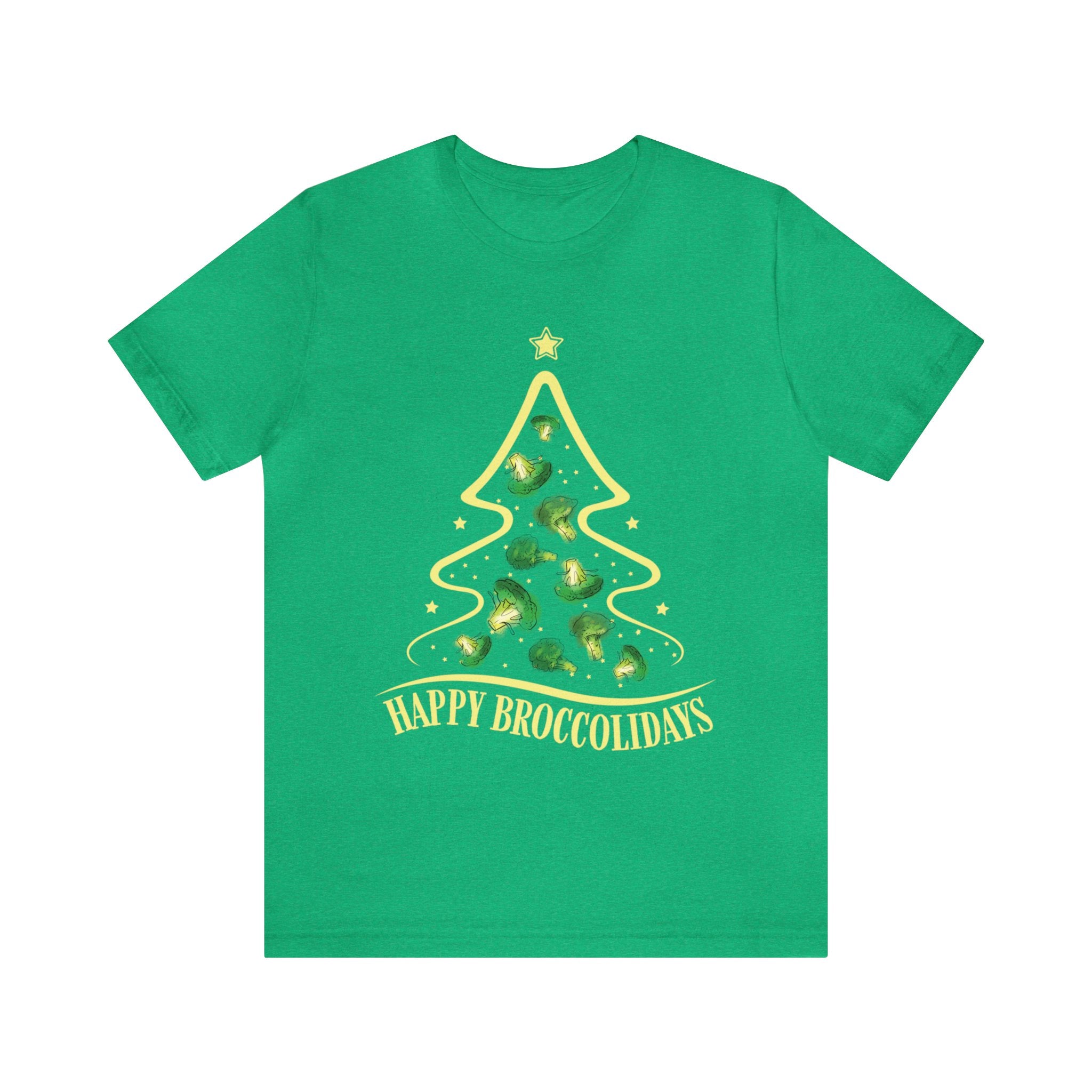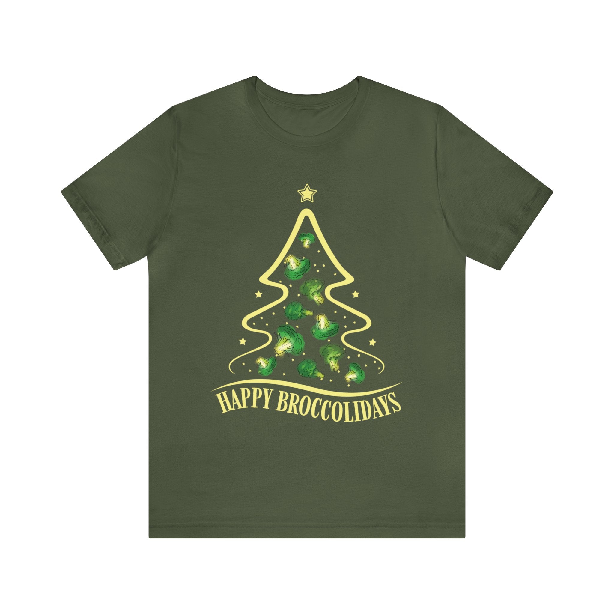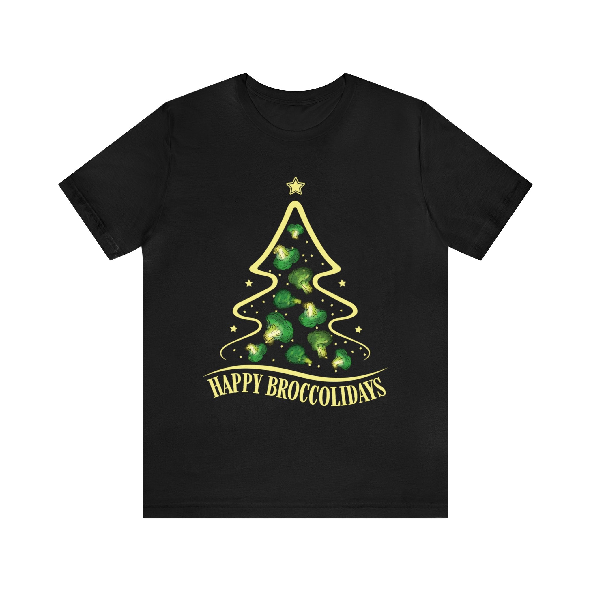 Happy Holiday Broccoli Christmas Tree Shirt | Funny Broccoli Lover Vegan Gift | Unisex Jersey T-shirt