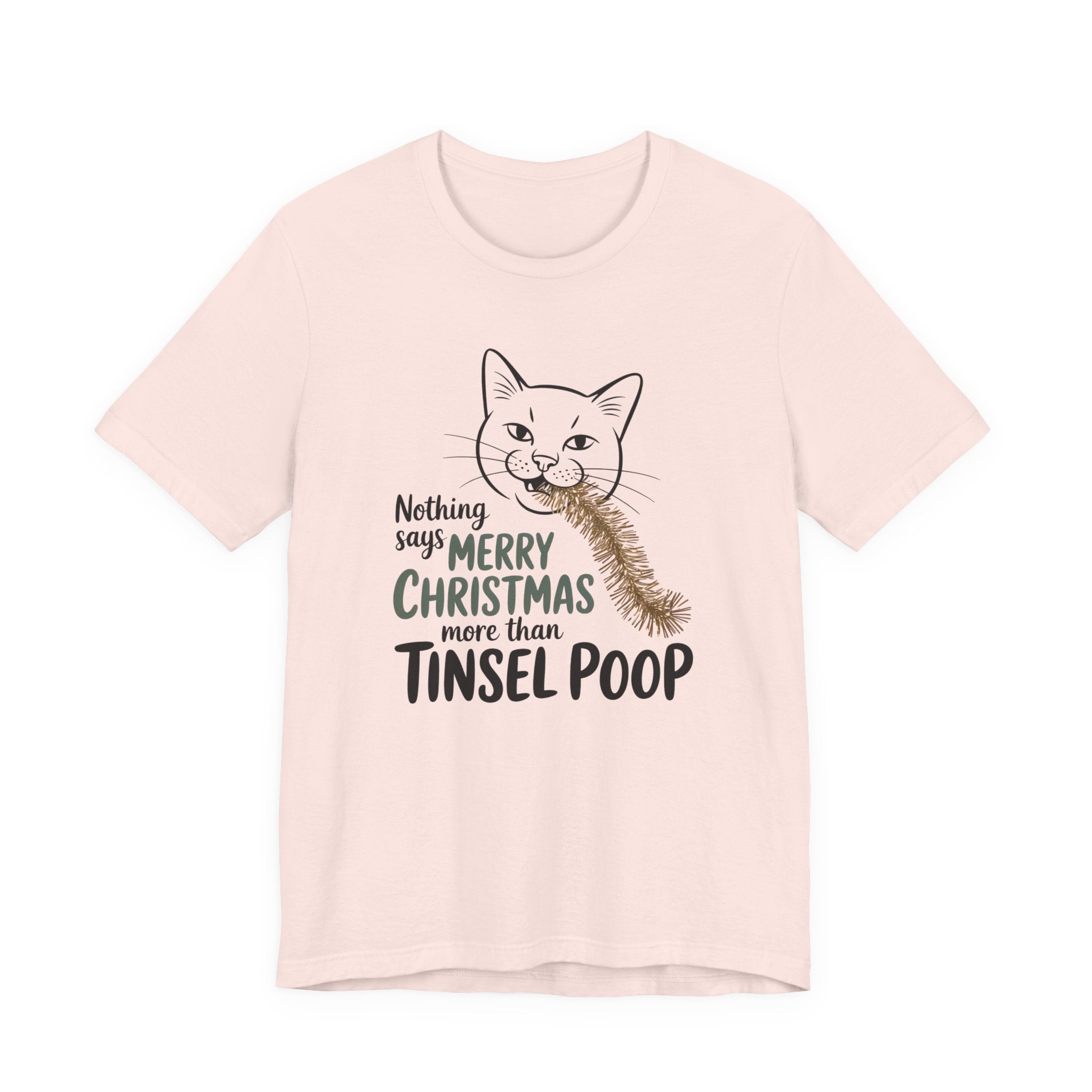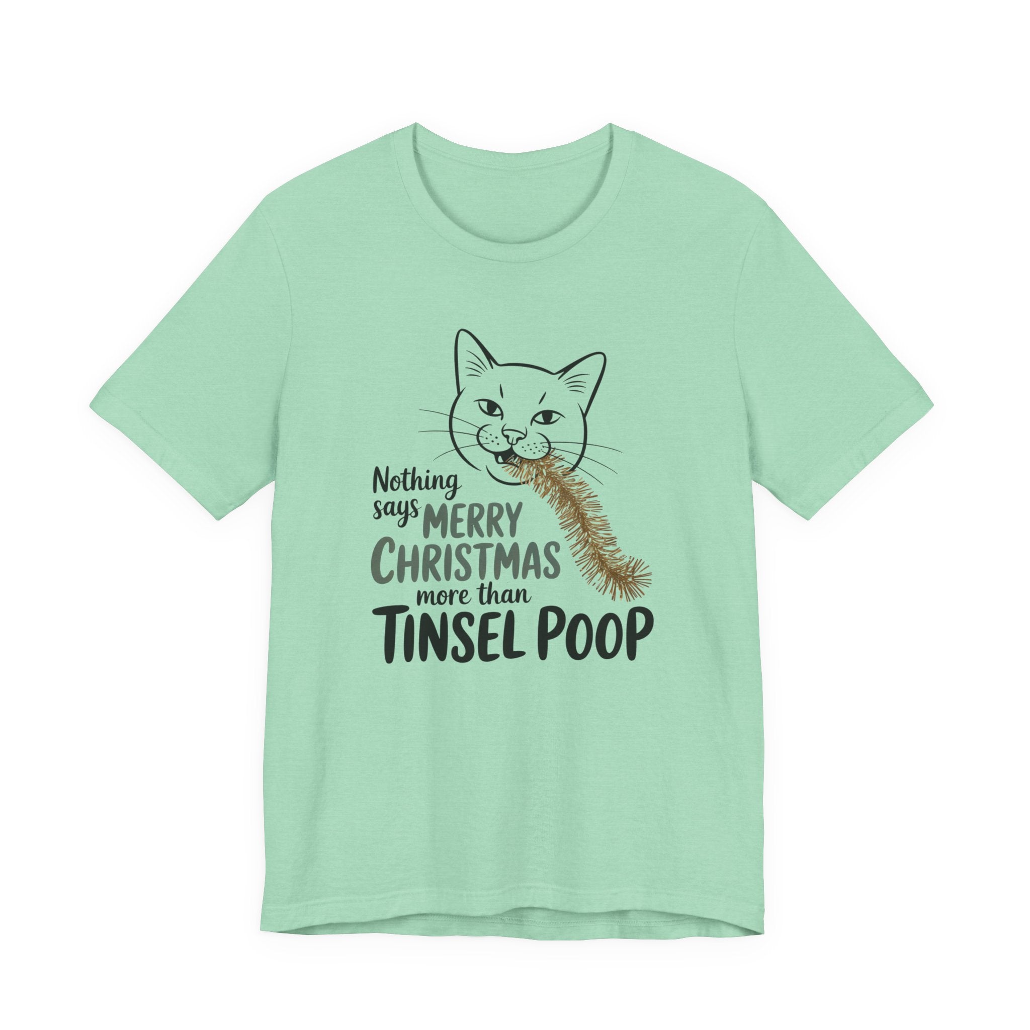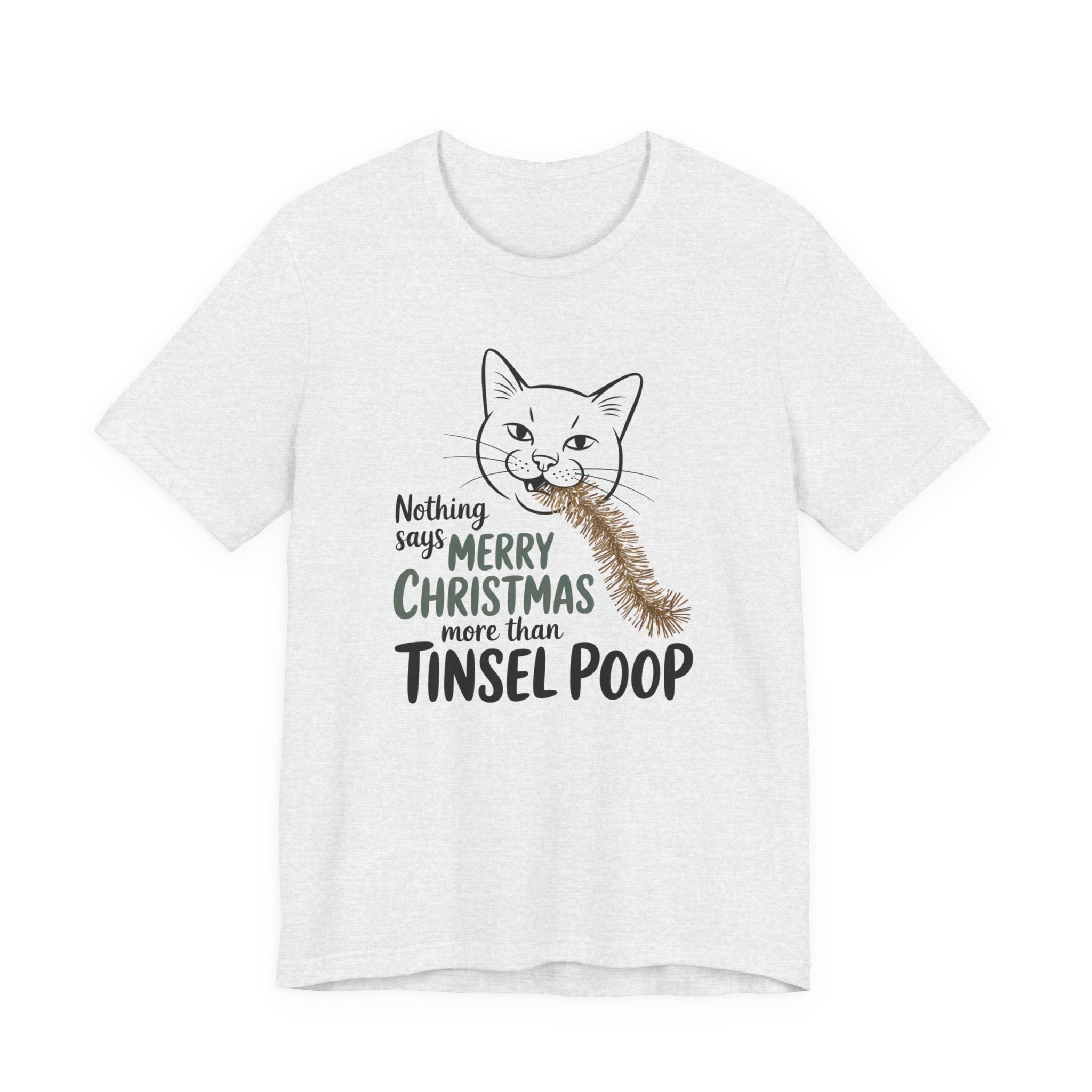 Merry Christmas Funny Cat Shirt | Tinsel Poop Cat Lover Shirt | Unisex Jersey T-shirt