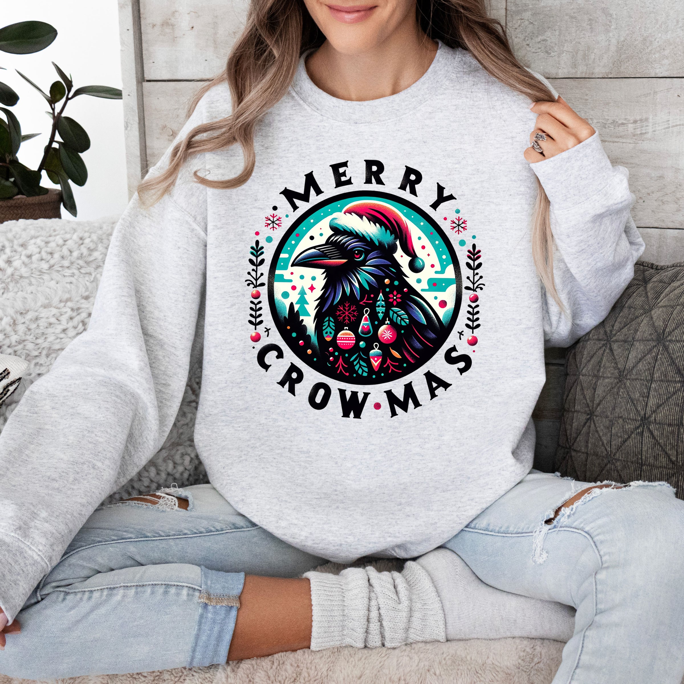 Get into the holiday spirit with a twist! This "Merry Crow-mas" t-shirt features a festive black crow perched amidst Christmas cheer. The playful design combines holiday vibes with a gothic edge, perfect for those who enjoy a unique take on seasonal celebrations. Whether you're attending a Christmas party or just love the contrast of spooky and merry, this crow-themed tee is a fun way to add some personality to your holiday wardrobe. Great for crow lovers and Christmas enthusiasts alike! This cozy unisex crewneck sweatshirt comes in 5 colors.