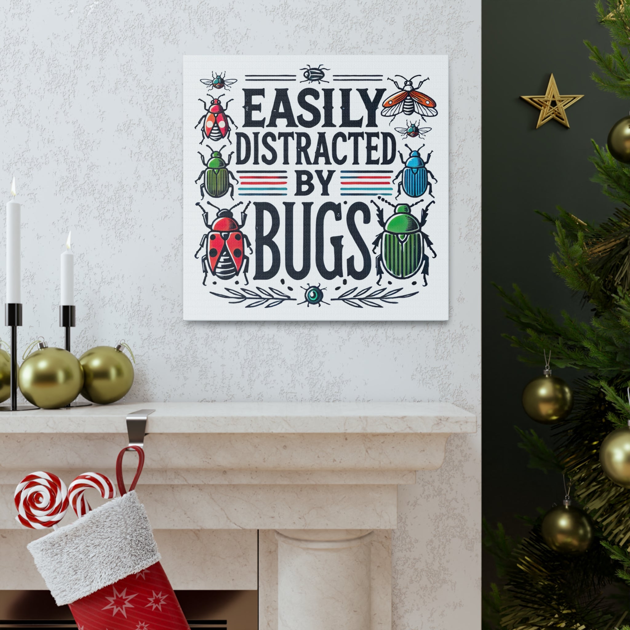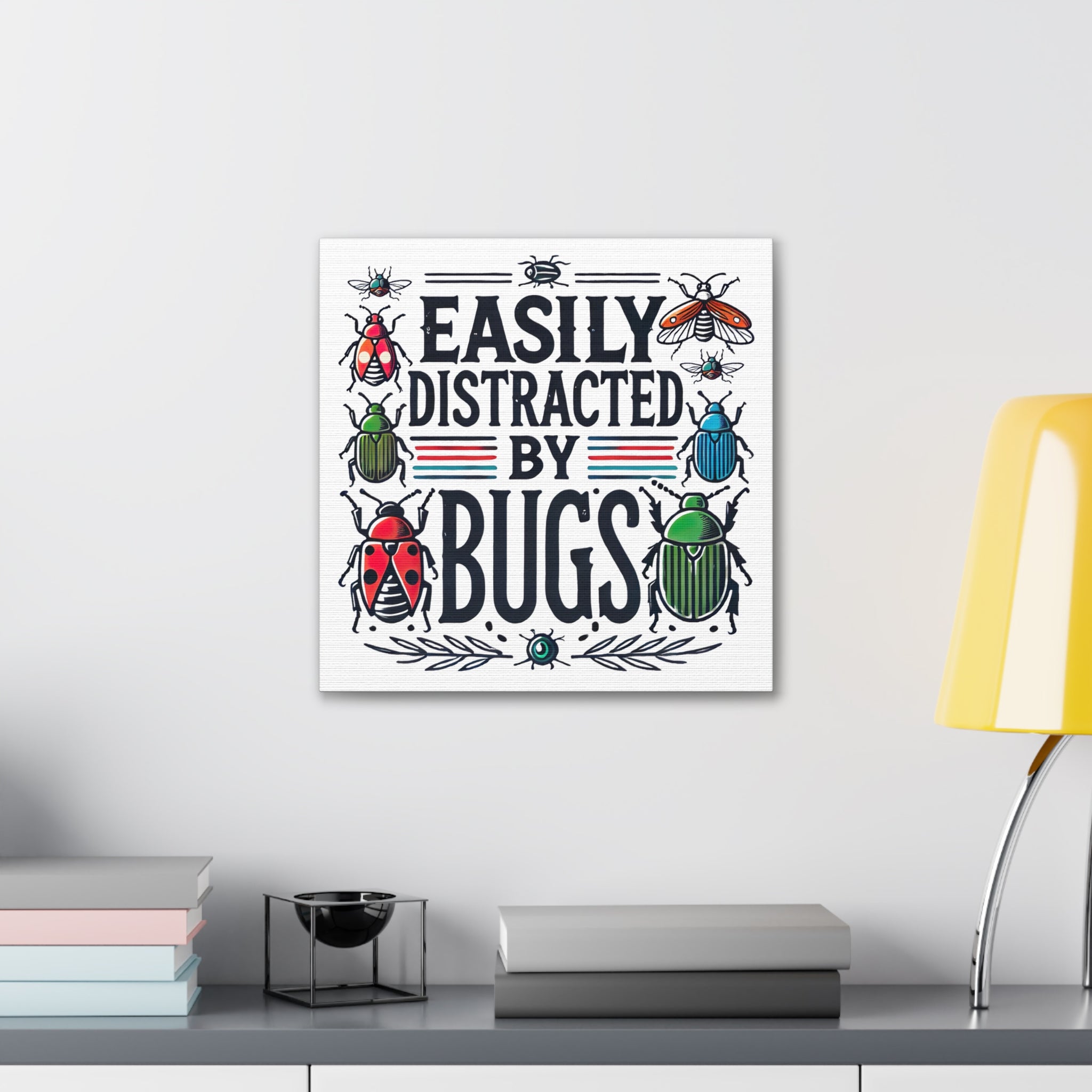 Easily Distracted By Bugs Insect Wall Art | Entomology Home Decor | Nature Lover Gift | Bug Lover Gift | Square Canvas Gallery Art