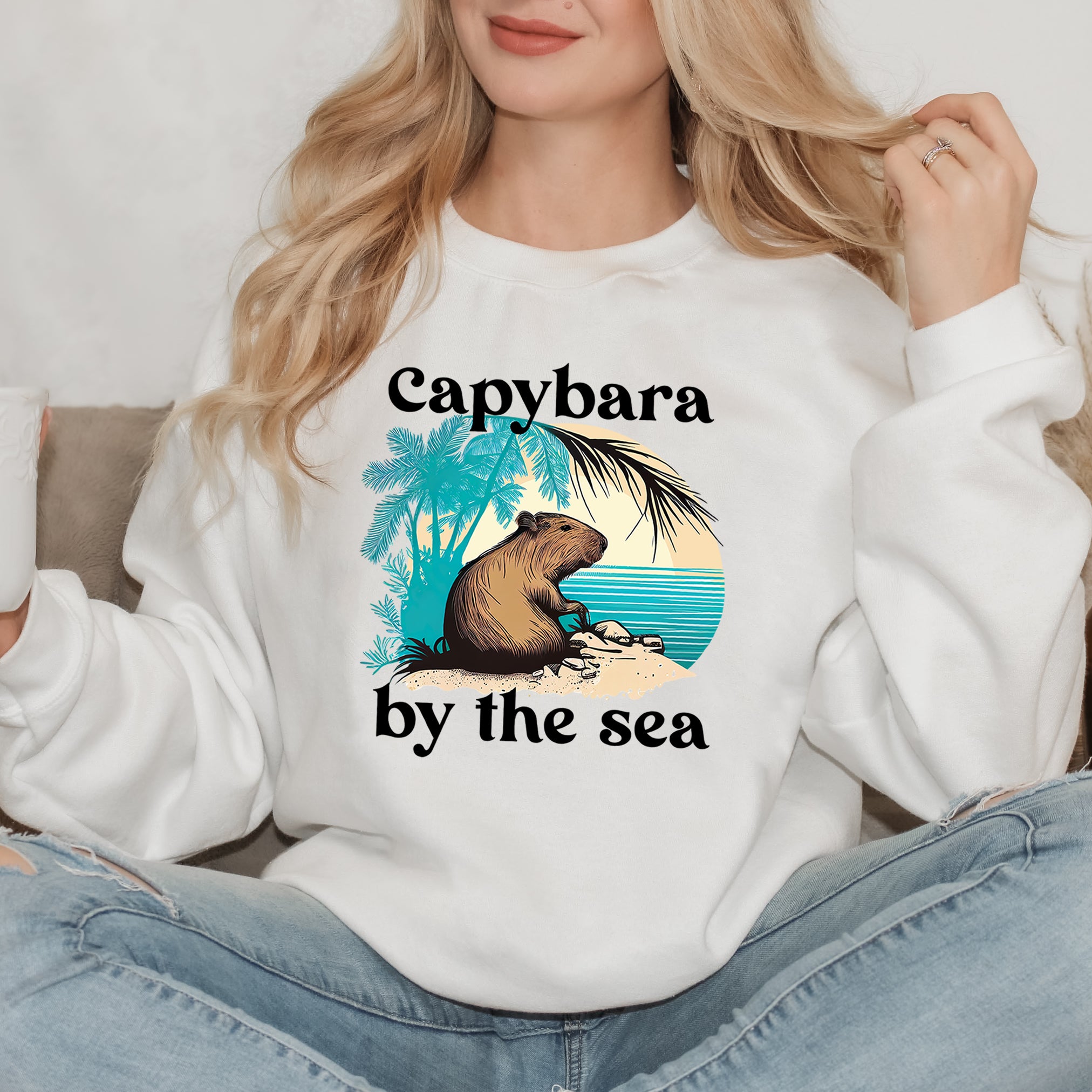 Capybara By The Sea Shirt | Capybara Lover Gift | Tropical Island Sweatshirt | Funny Capybara Shirt| | Unisex Crewneck Sweatshirt