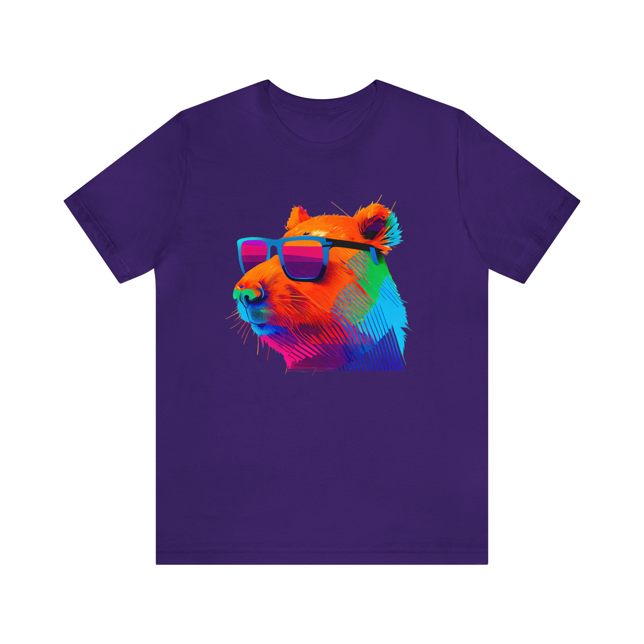 The Cool Capybara Shirt is a super soft and stylish unisex jersey t-shirt designed for capybara lovers! The shirt features a cute and retro design of a capybara wearing sunglasses and makes a fun capybara lover gift! OTHER STYLES Message me if you would like to see this design on other styles OR if you would like to customize it!