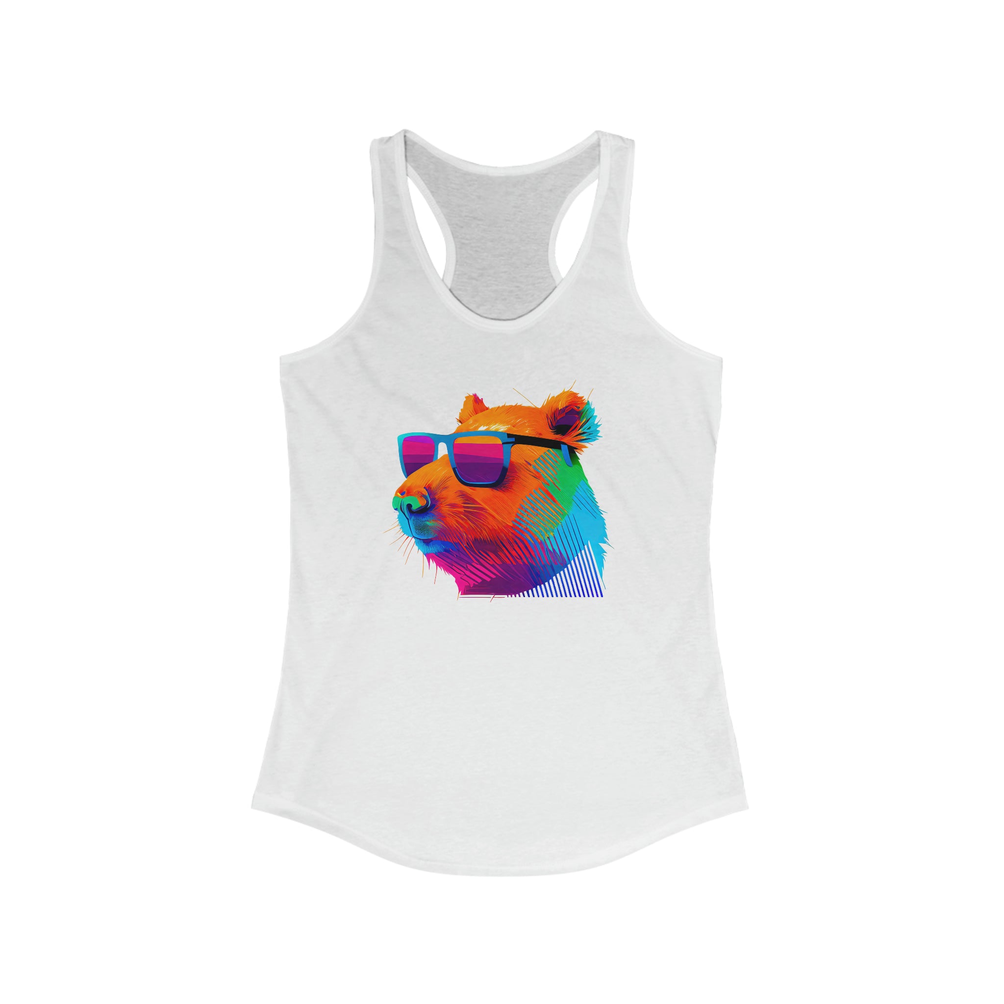 The Cool Capybara Shirt is a soft and stylish slim-fit racerback tank top designed for capybara lovers! The shirt features a cute and retro design of a capybara wearing sunglasses and makes a fun capybara lover gift! PLEASSE NOTE - THIS TEE RUNS SMALL - SEE PHOTO AREA FOR SIZING INSTRUCTIONS.