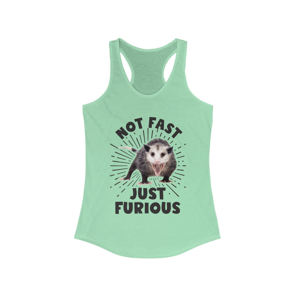 Not Fast and Furious Funny Possum Shirt | Funny Nature Lover Gift | Women's Slim-fit Racerback Tank Top