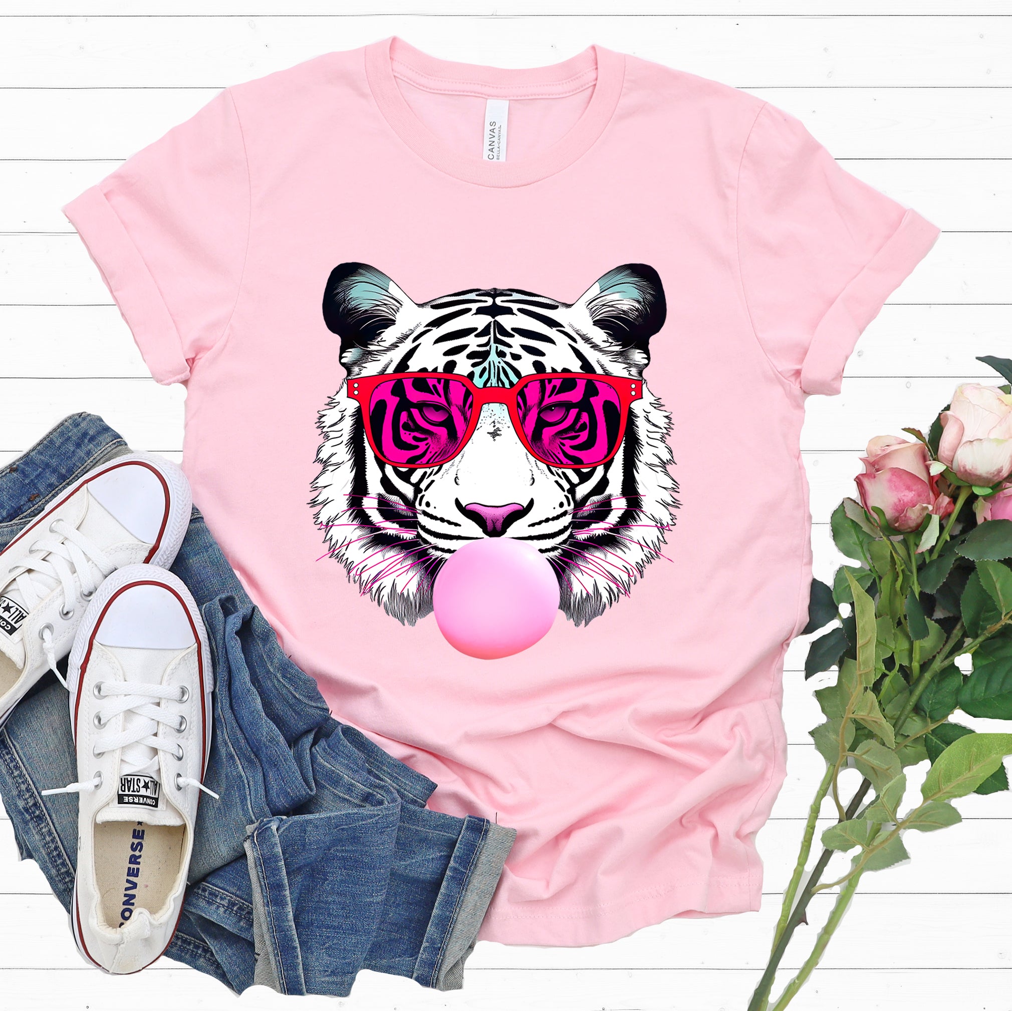 Our Bubblegum Pink Tiger Shirt combines the beauty of a majestic tiger with fun pops of pink! This pop art shirt features a tiger blowing pink bubblegum and it makes a perfect animal lover gift for anyone who wants to stand out from the crowd! This cute summer shirt is a super soft unisex jersey t-shirt that comes in 5 colors.