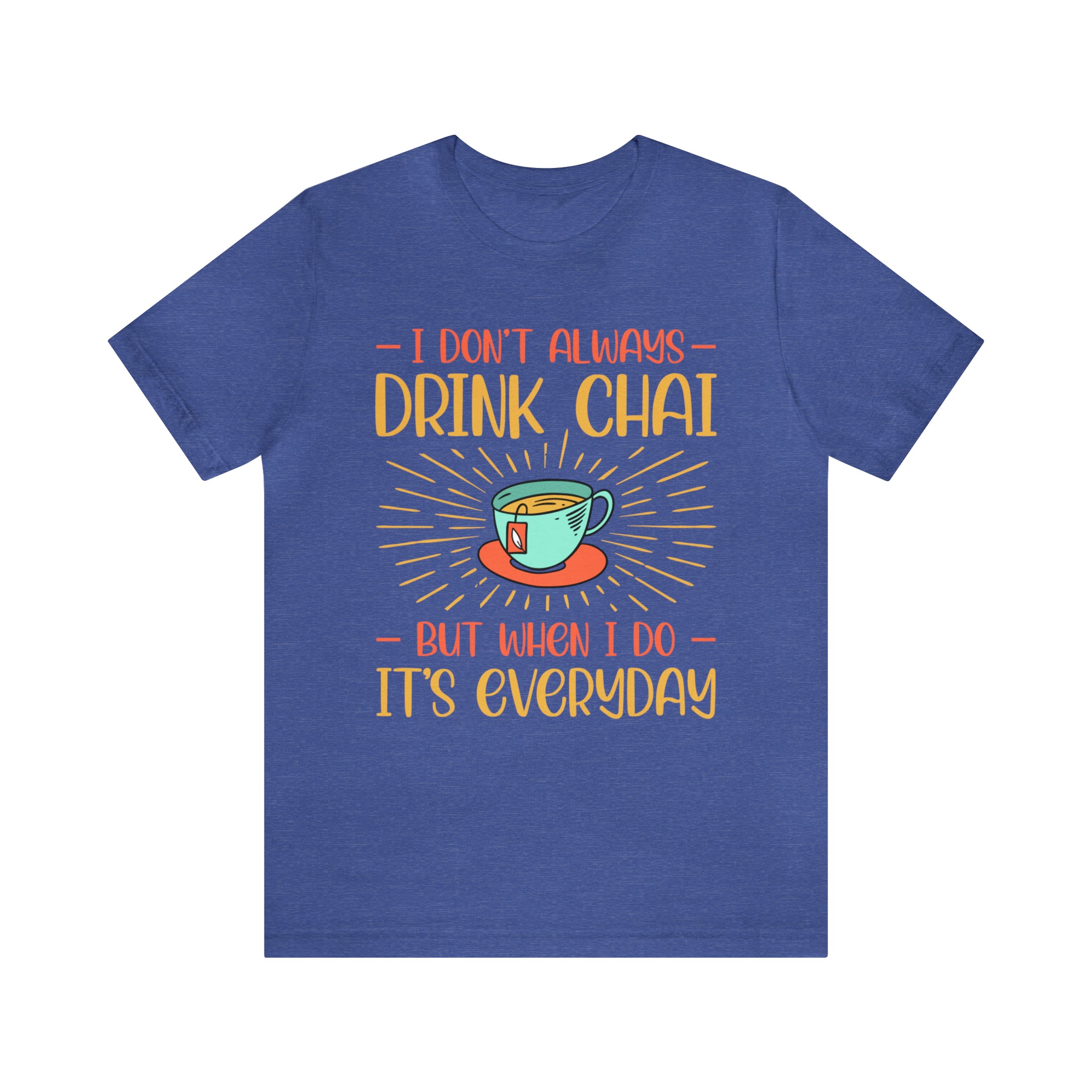 This playful yet elegant t-shirt design features the phrase "I Don’t Always Drink Chai, but When I Do It’s Everyday” and is perfect for all chai enthusiasts! Whether you are a tea lover or fan of Indian culture, you will love this super soft t-shirt!