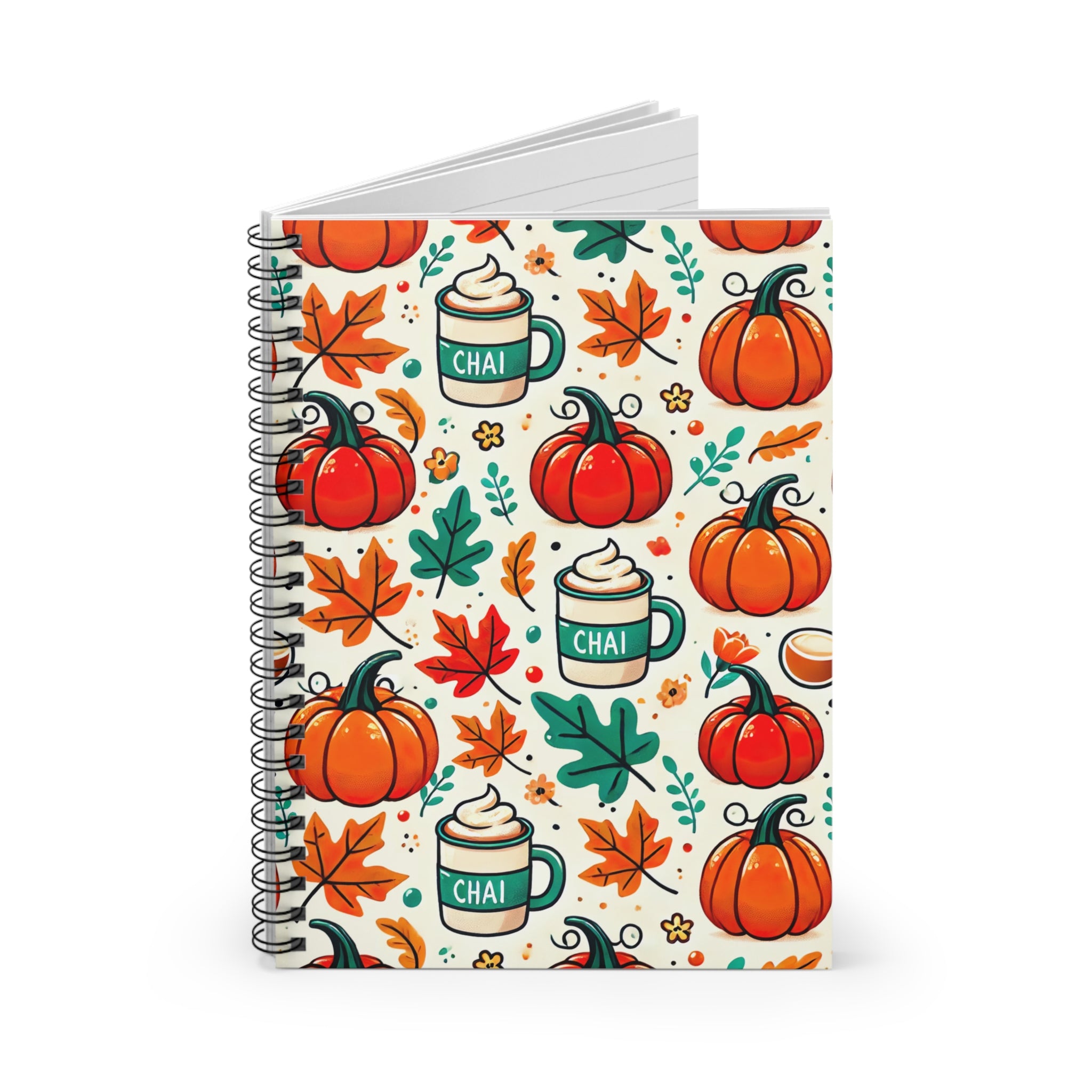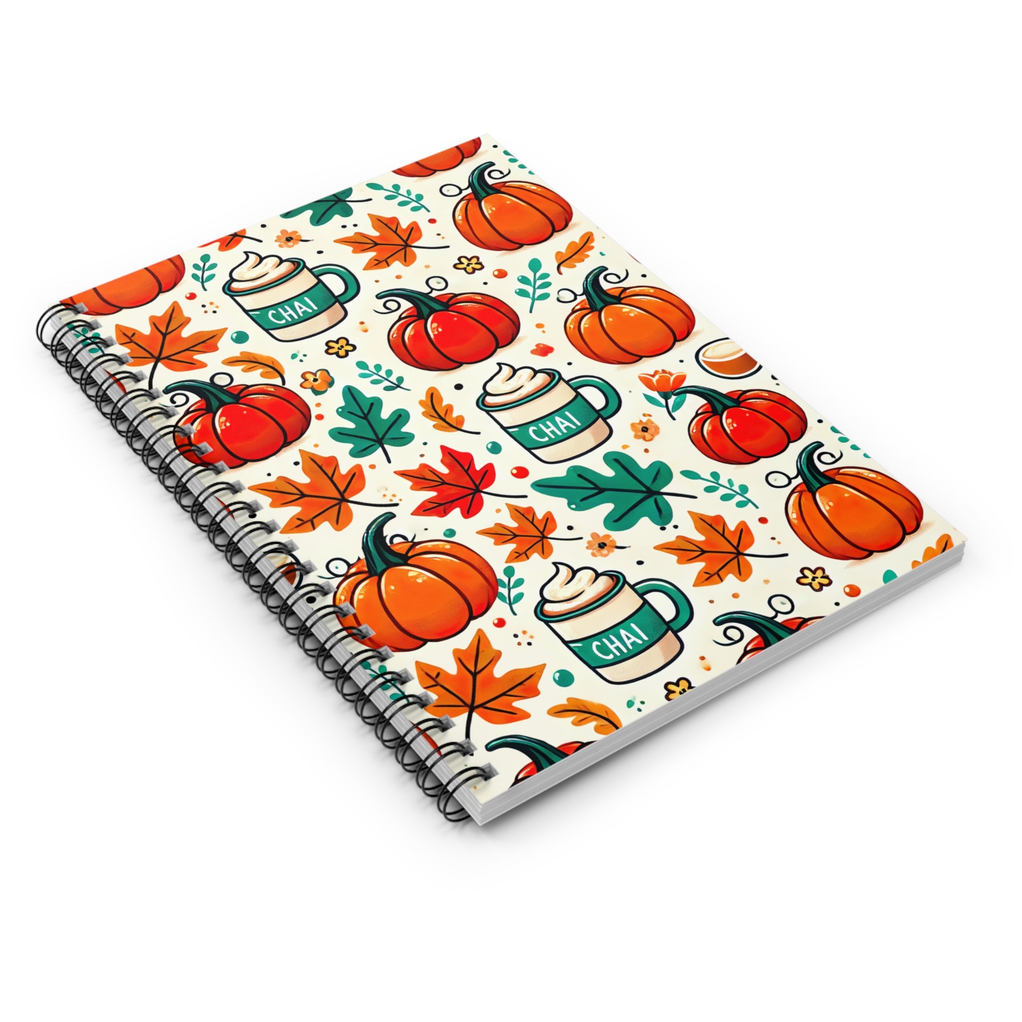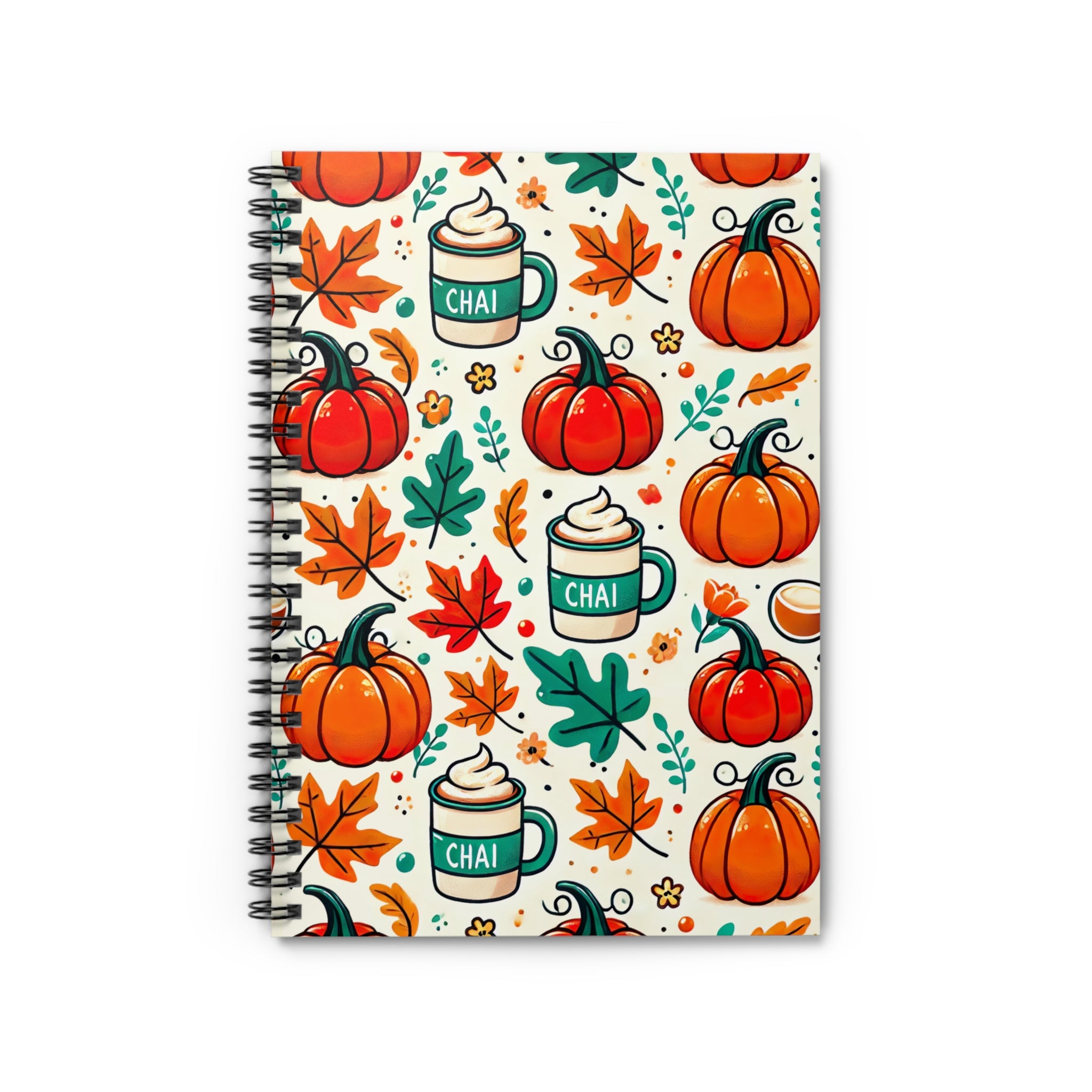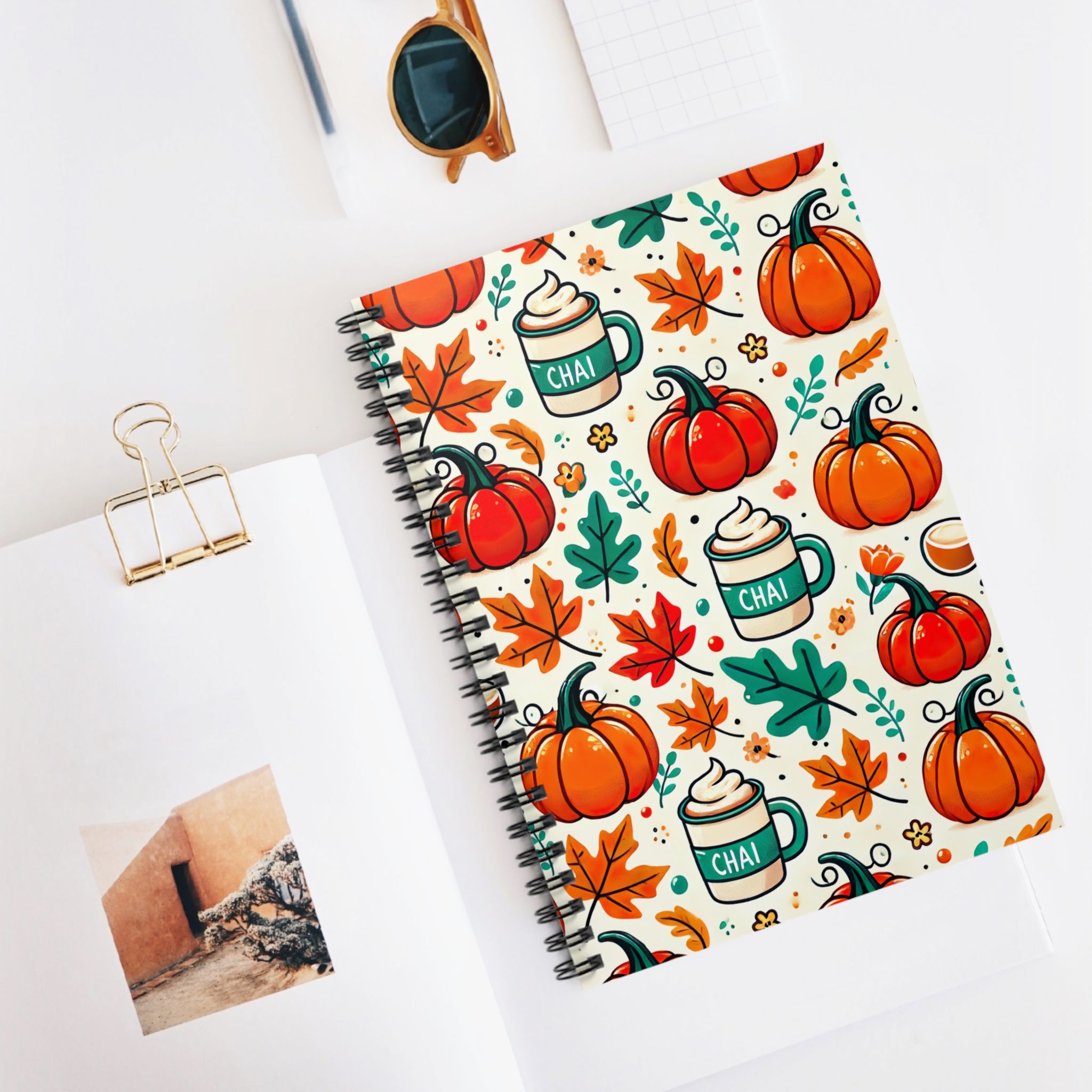 Pumpkin Fall Chai Tea Notebook Journal | Fall Gift For Her | Spiral Notebook - Ruled Line