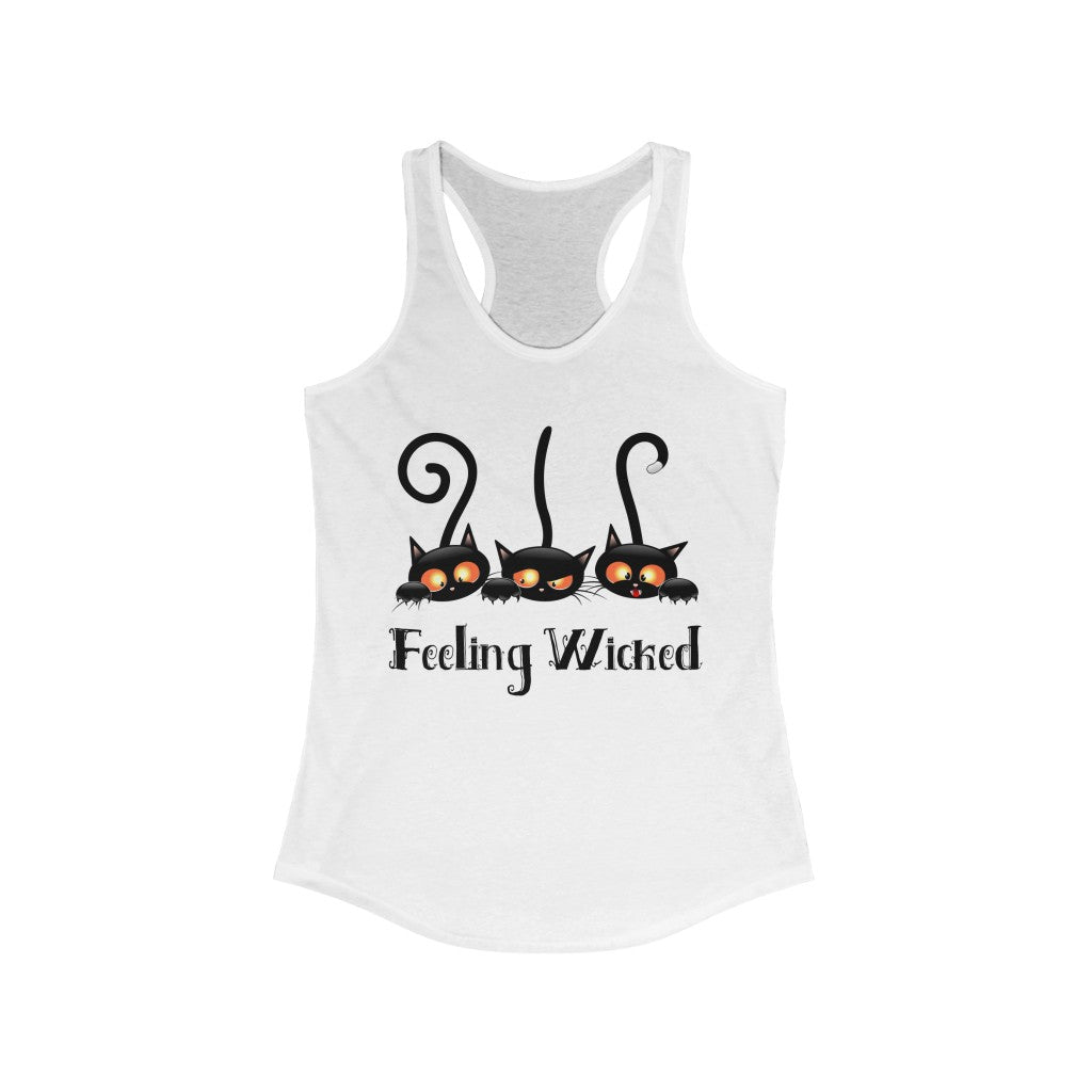 Feeling Wicked Black Cat Halloween Shirt | Funny Cat Lover T-shirt | Women's Slim-fit Racerback Tank Top