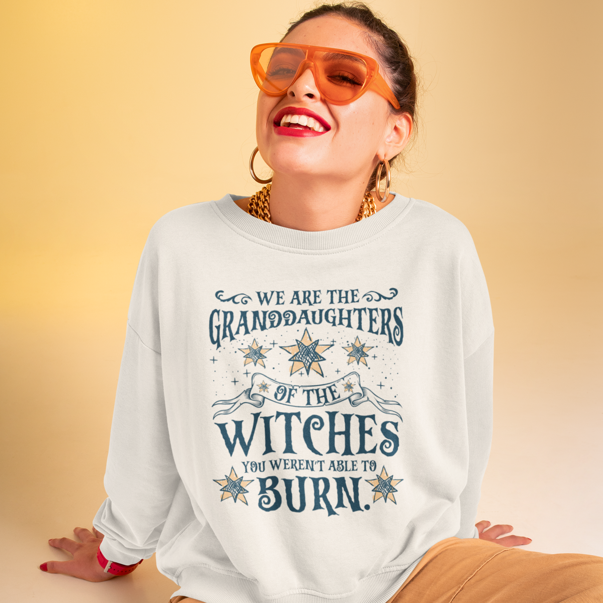 Our Halloween witch shirt features the text "We are the grandaughters of the witches you weren't able to burn" and is the perfect girl power gift for your favorite wiccan! This unisex crewneck sweatshirt comes in 6 colors.