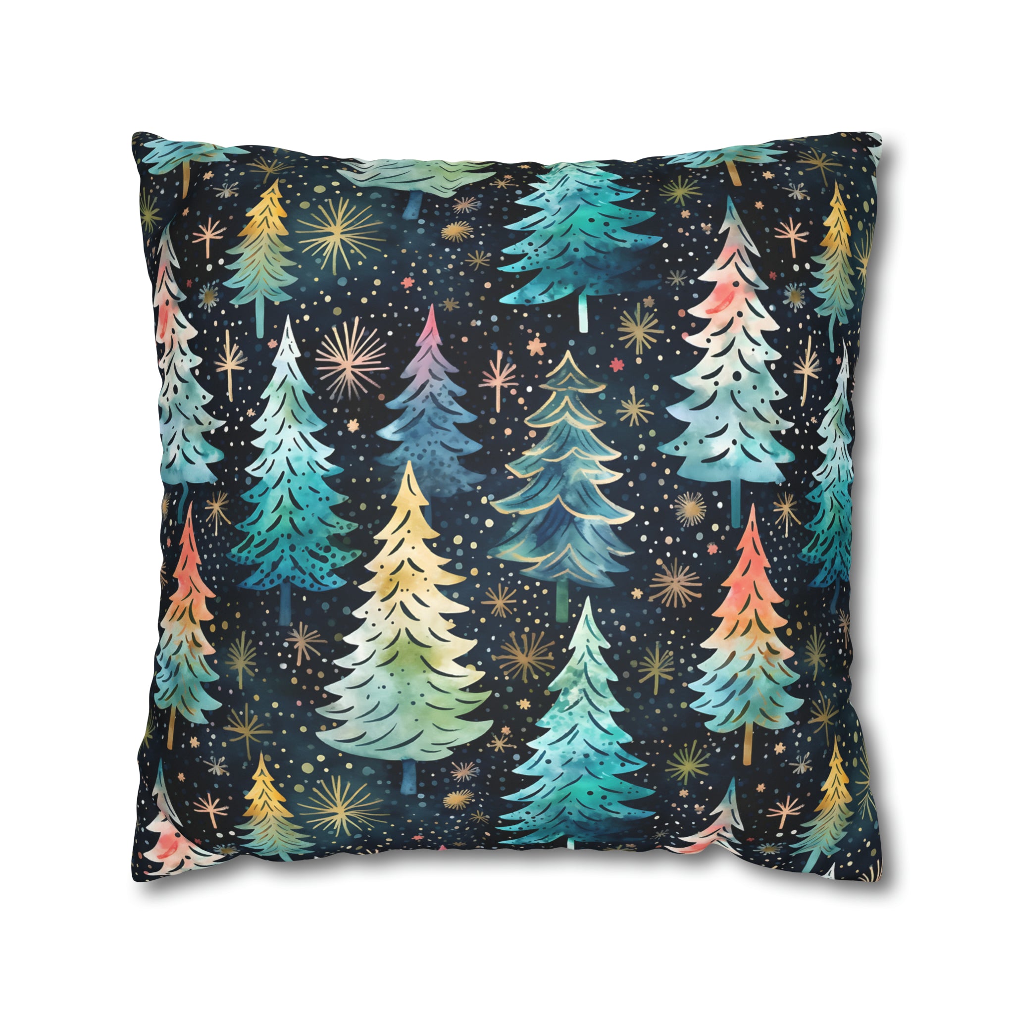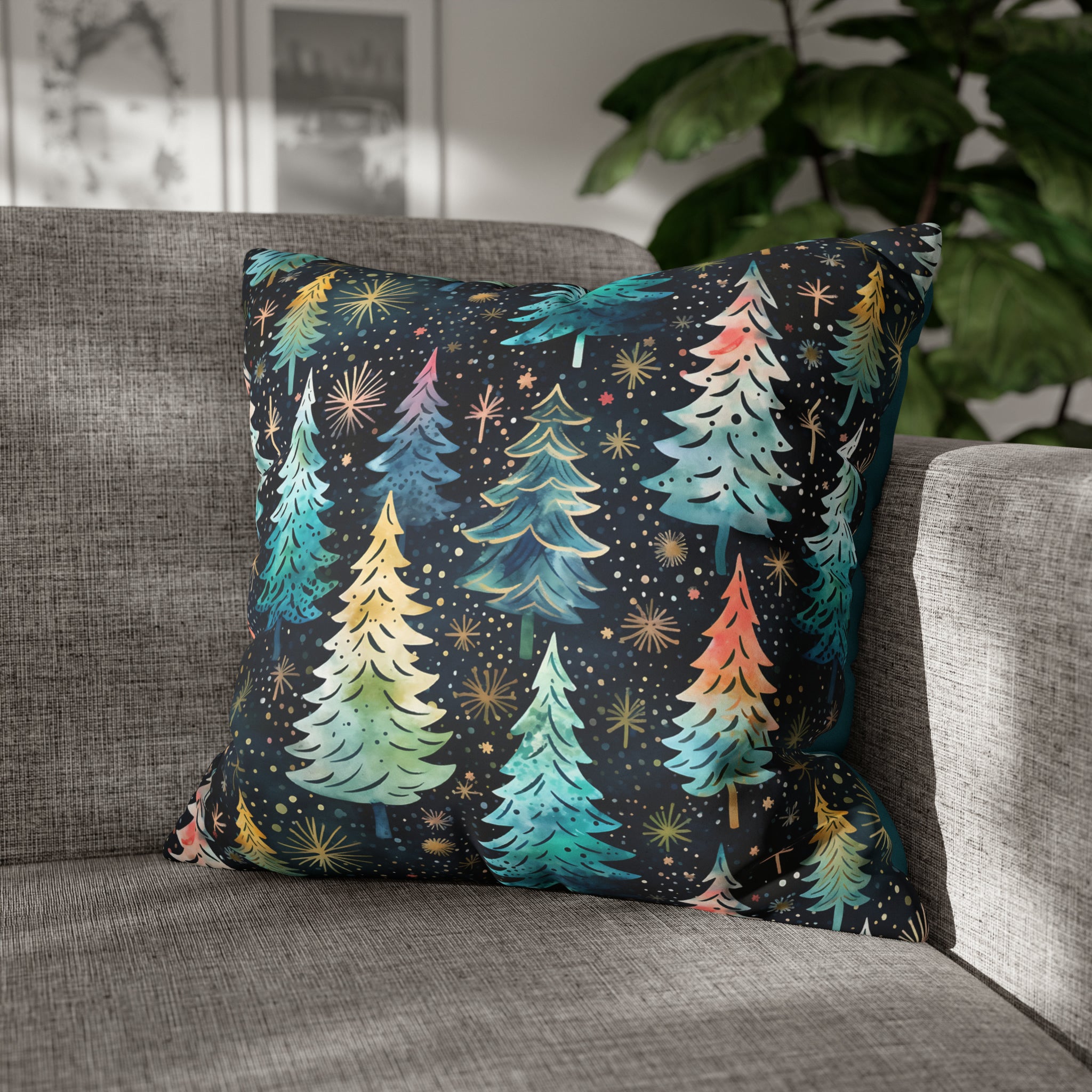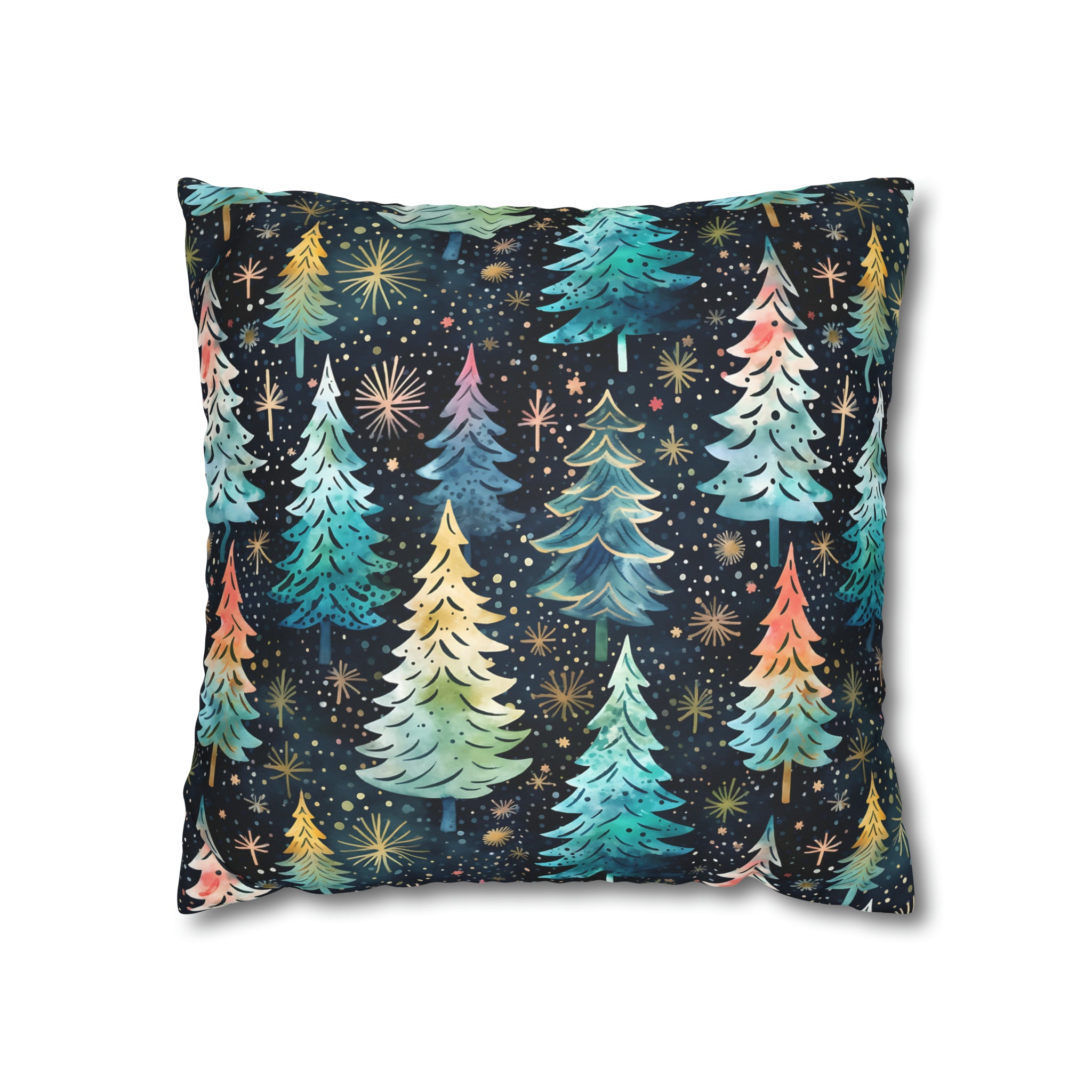 Teal Christmas Tree Throw Pillow Case | Christmas Pillow Home Decor | Faux Suede Decorative Throw Pillow Case