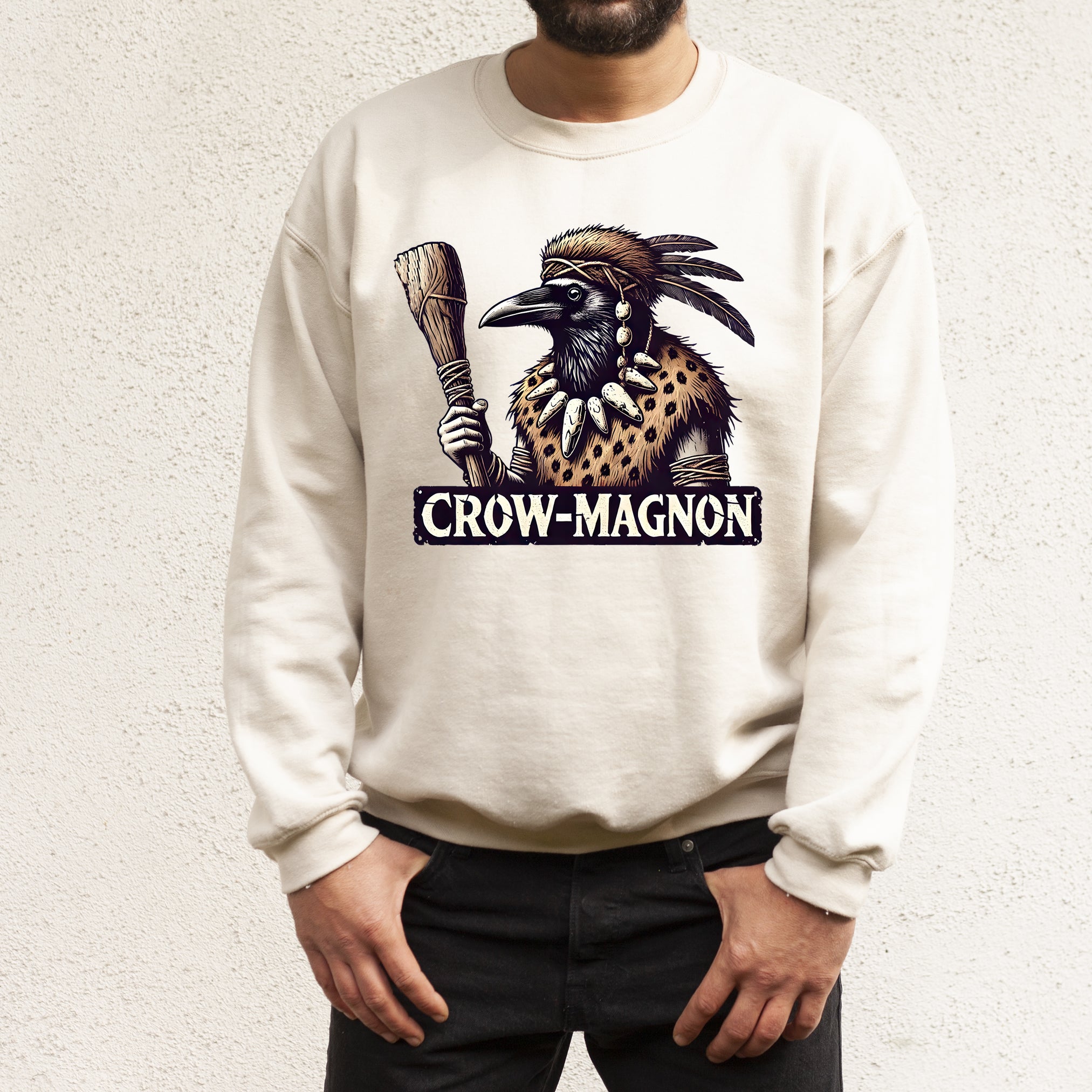 Crow-magnon Funny Caveman Crow Meme Shirt | Funny Corvid Bird Shirt | Crow Art Bird Lover Gift | | Unisex Crewneck Sweatshirt