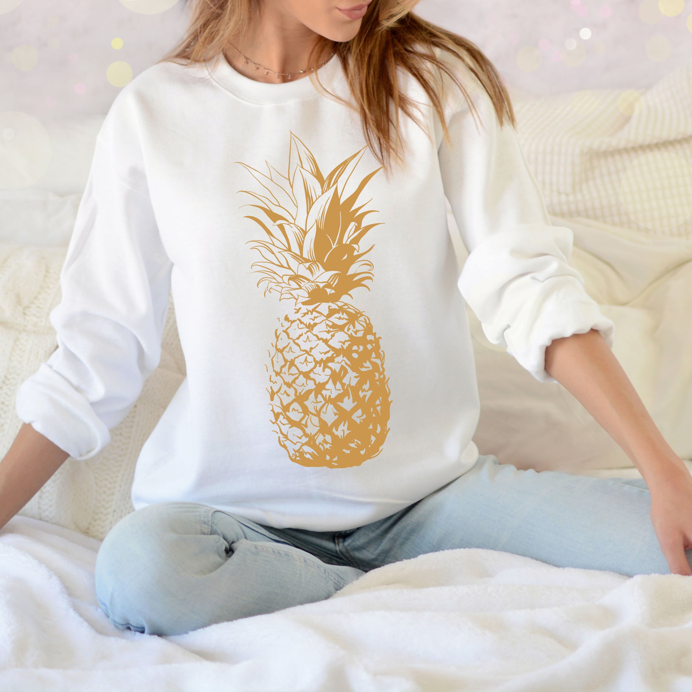 Gold Pineapple Beach Bum Aesthetic Shirt | Hawaiian Gift | Unisex Crewneck Sweatshirt