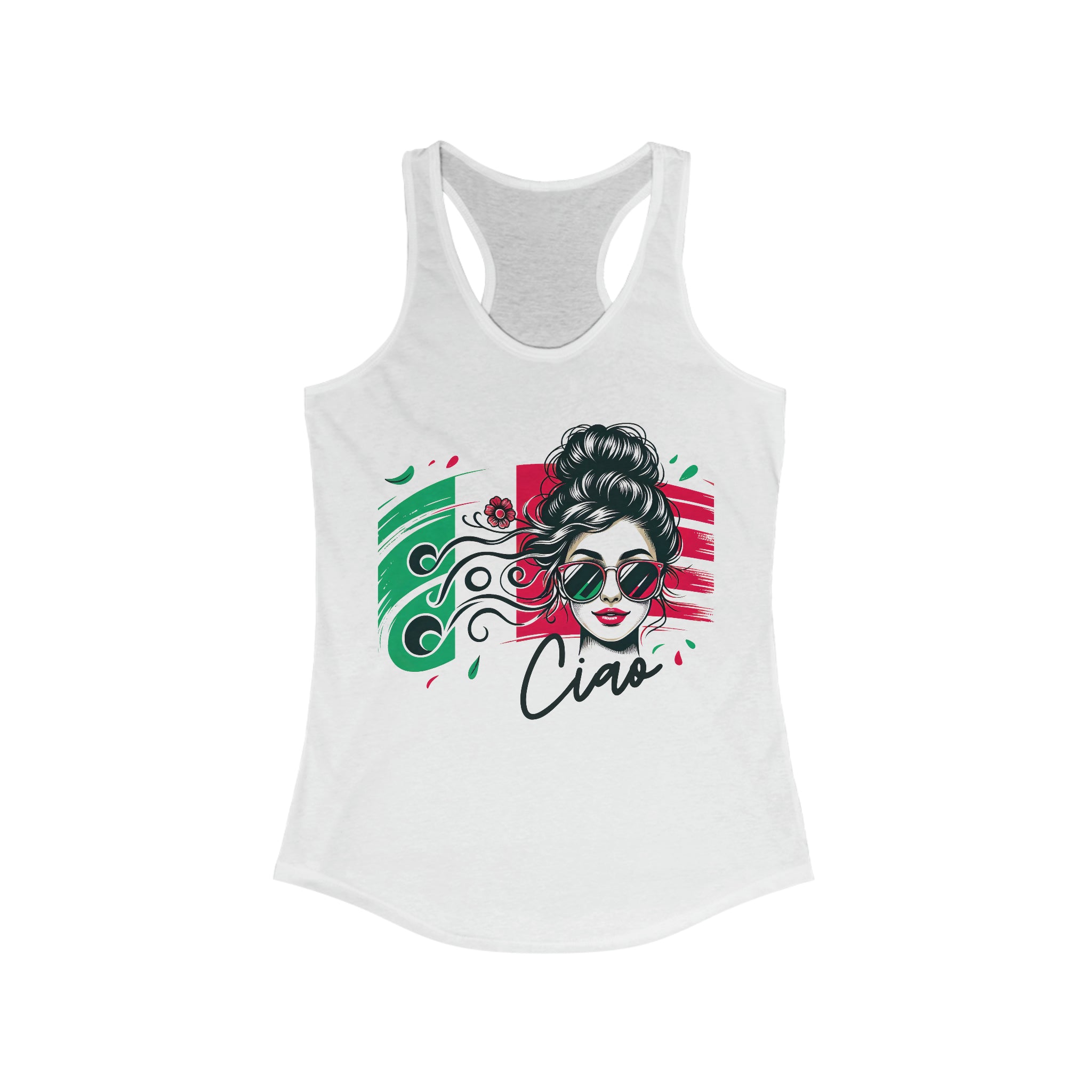 Ciao Italian Girl Cute Italy Trip shirt | Italy Lover Shirt | World Traveler Italian Flag Gift | Women's Ideal Racerback Tank