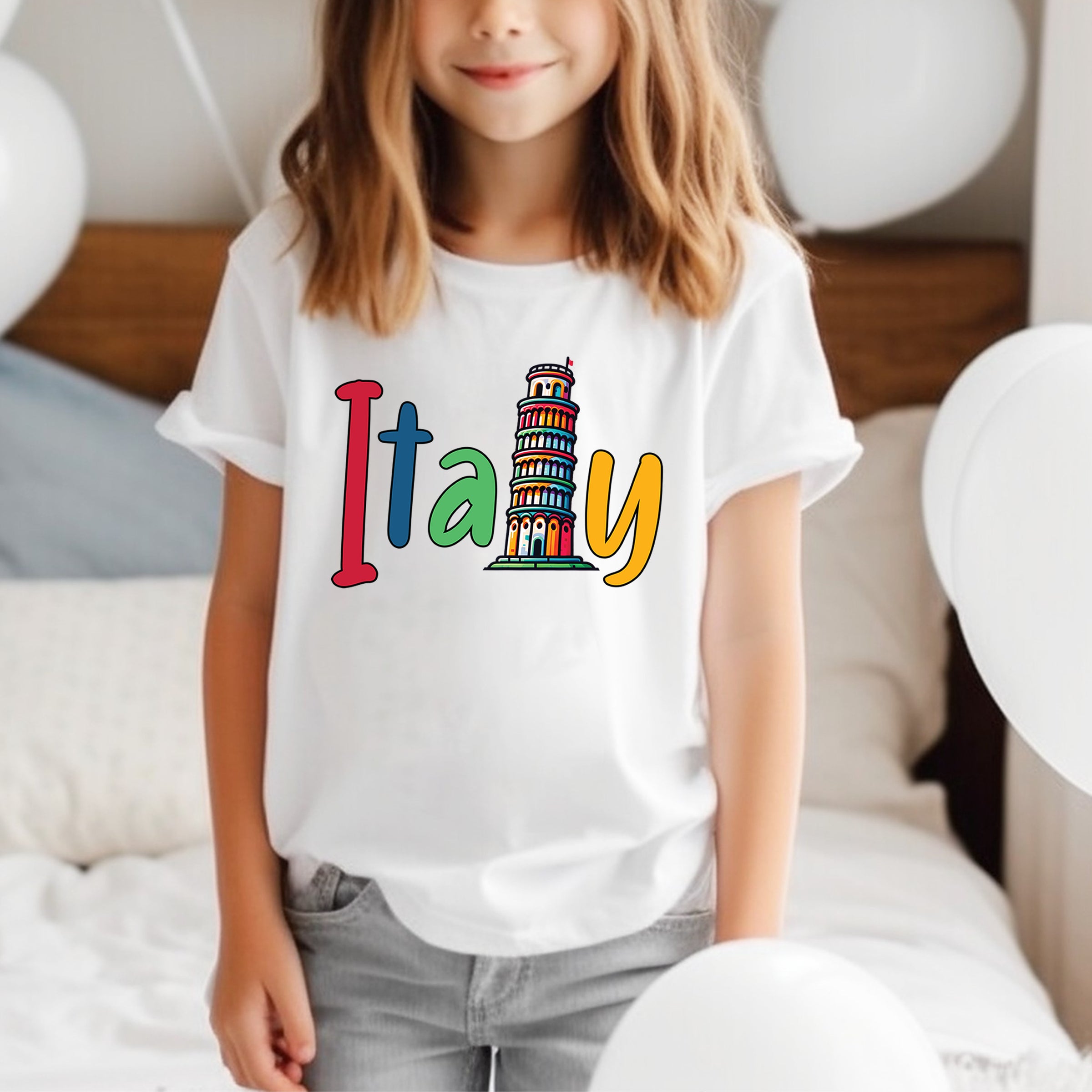 Show your love for Italy with this creative "ITALY" t-shirt, featuring the iconic Leaning Tower of Pisa as the letter "L"! This clever design combines a playful twist with Italian pride, perfect for travelers, Italy enthusiasts, or anyone who appreciates famous landmarks. Whether you're reminiscing about a trip to Italy or simply celebrating its rich culture, this tee is a fun and stylish way to share your love for Italian heritage and one of the world's most recognizable monuments. The super soft youth jersey t-shirt comes in 6 colors.