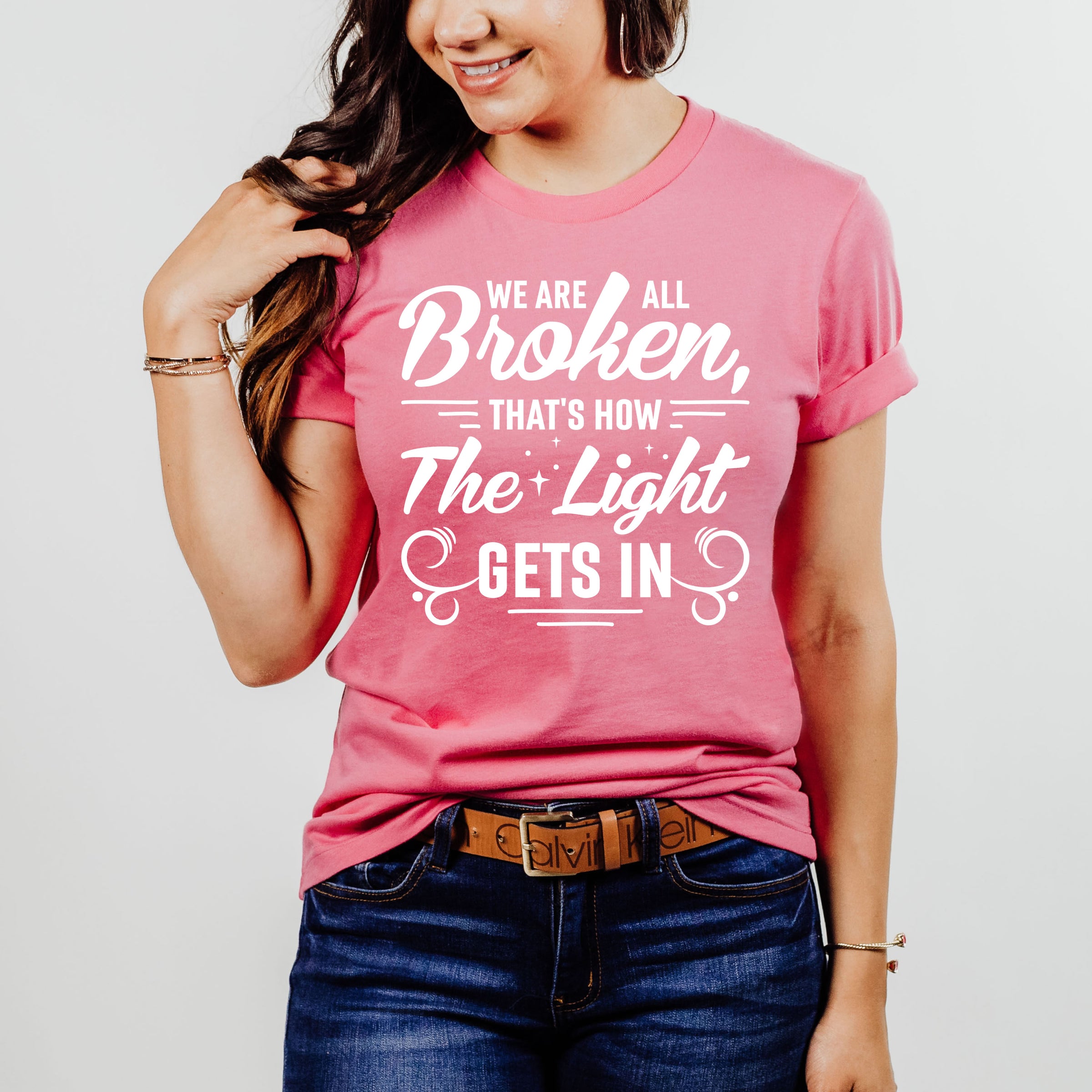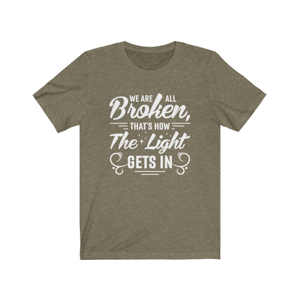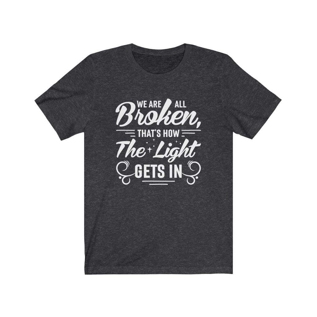 Our psychology shirt features the positive quote "We are all broken, that's how the light gets in" and is a perfect school psychology gift for your favorite school counselor, psychologist or anyone who needs inspiration! These graphic tees are unisex jersey t-shirts.
