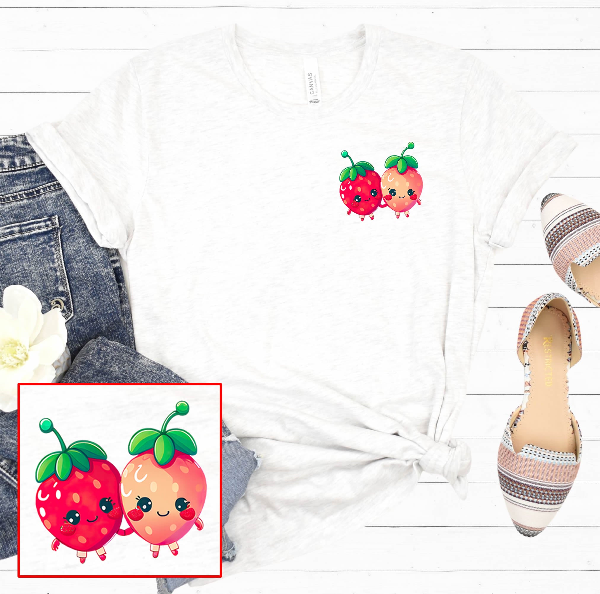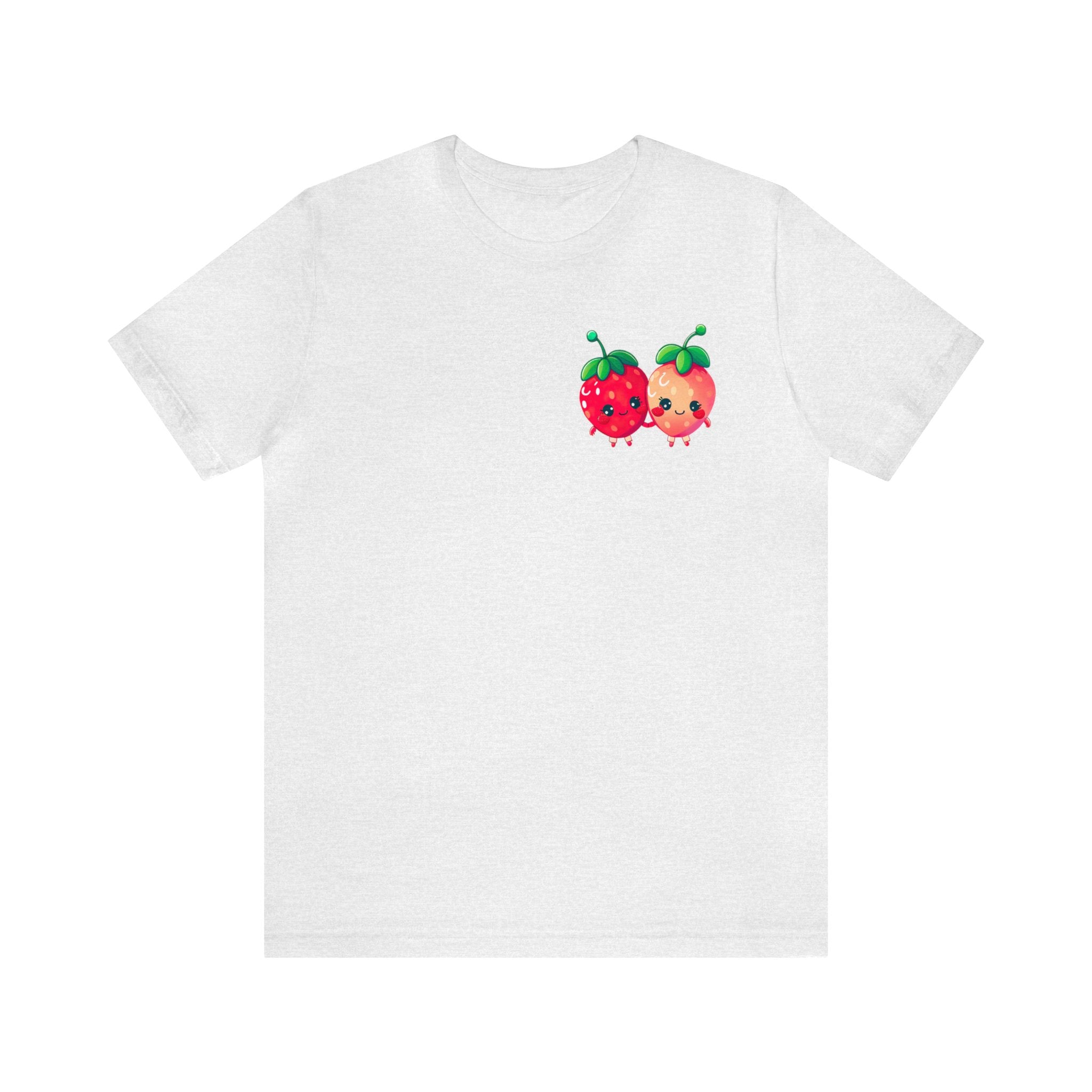 This Cute Strawberry Shirt features two adorable strawberries holding hands on the front pocket area of the shirt (there is no front pocket). The shirt is made of a super soft and comfortable unisex jersey material, making it perfect for everyday wear. This Kawaii Shirt is great for anyone who loves sweet and cute aesthetic fruit!