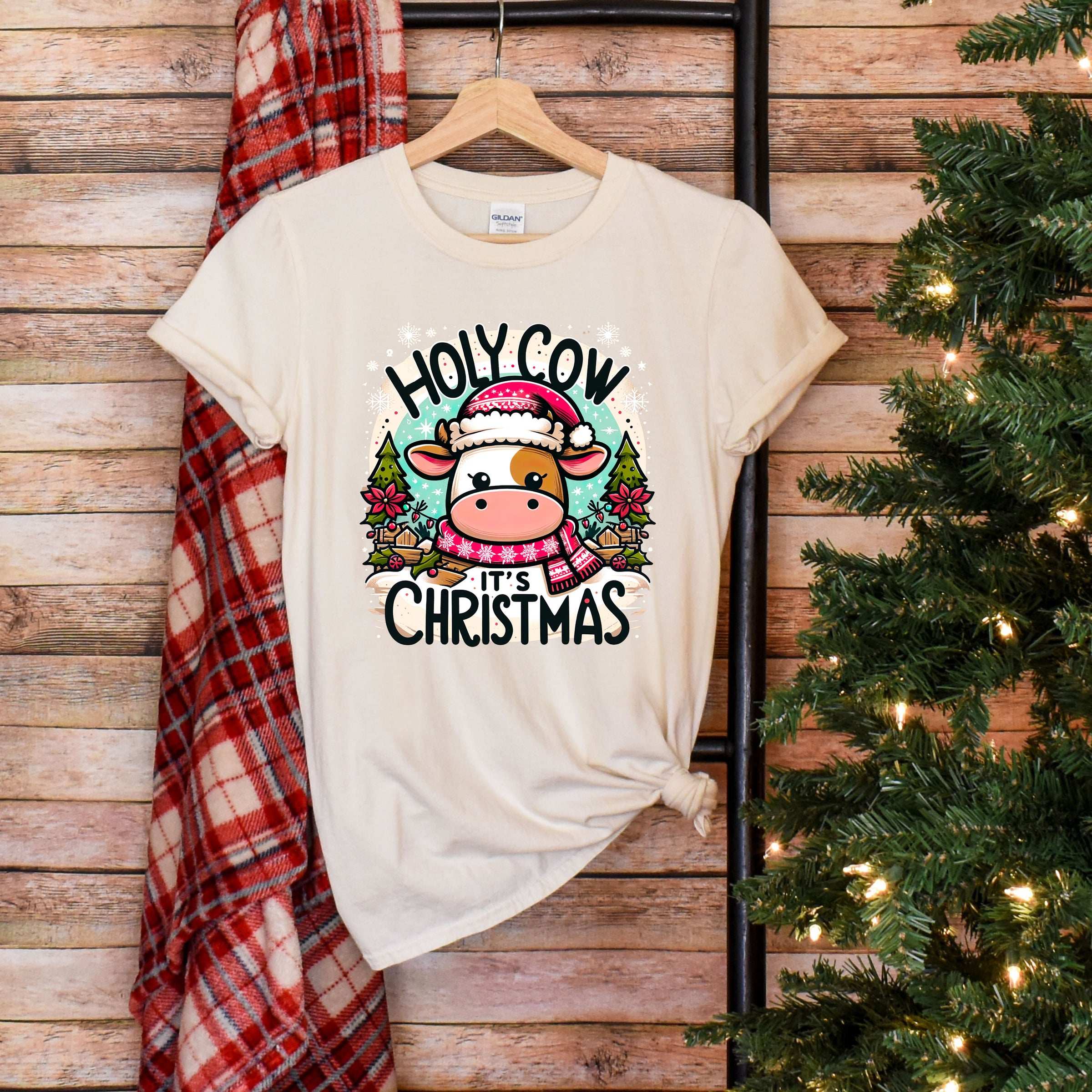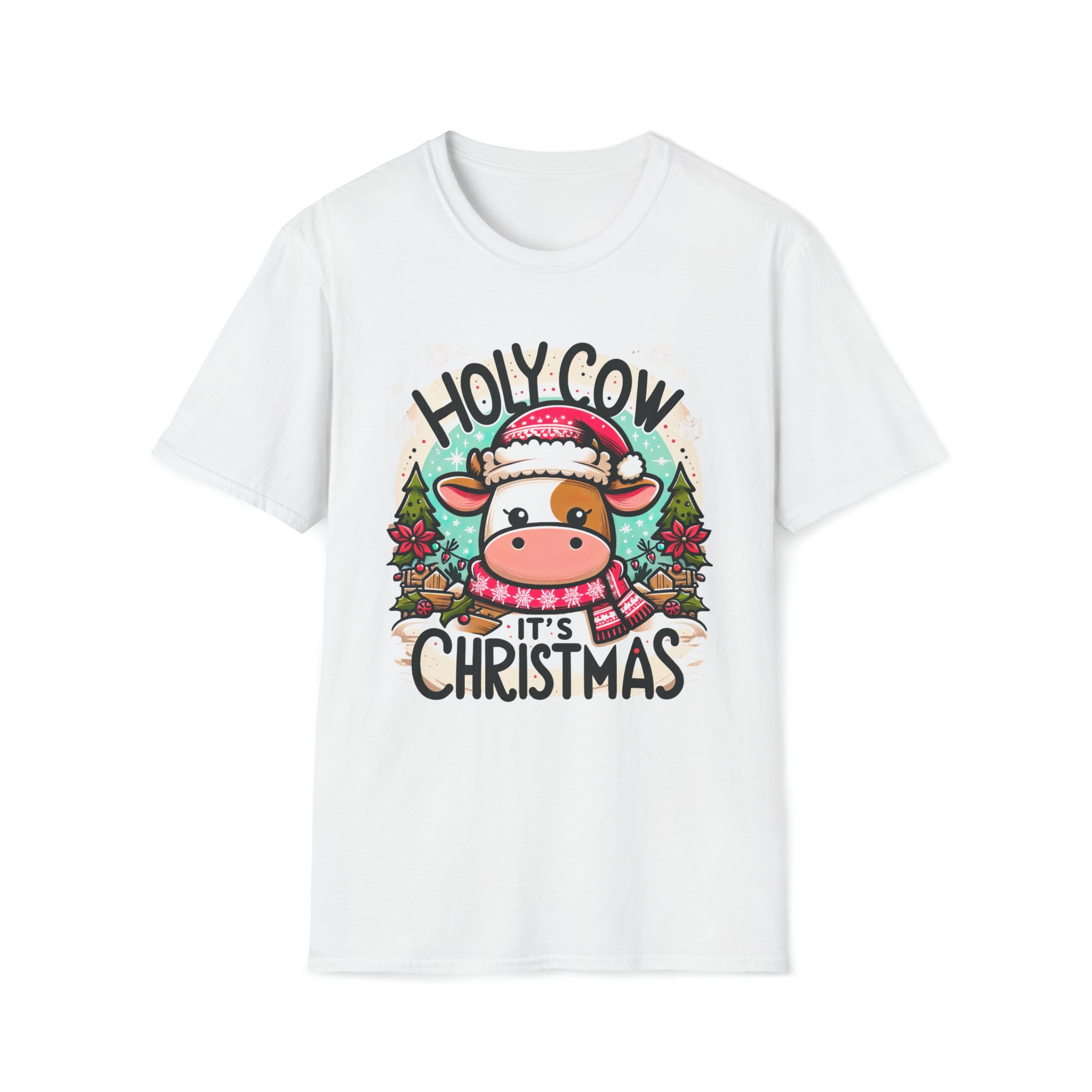Holy Cow It's Christmas Shirt | Cute Cow Shirt | Farm Girl Gift | Cow Christmas Shirt | Unisex Soft Style T-Shirt