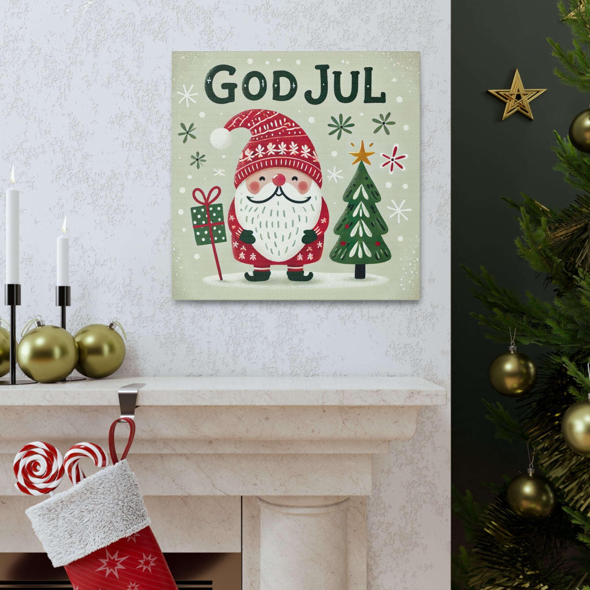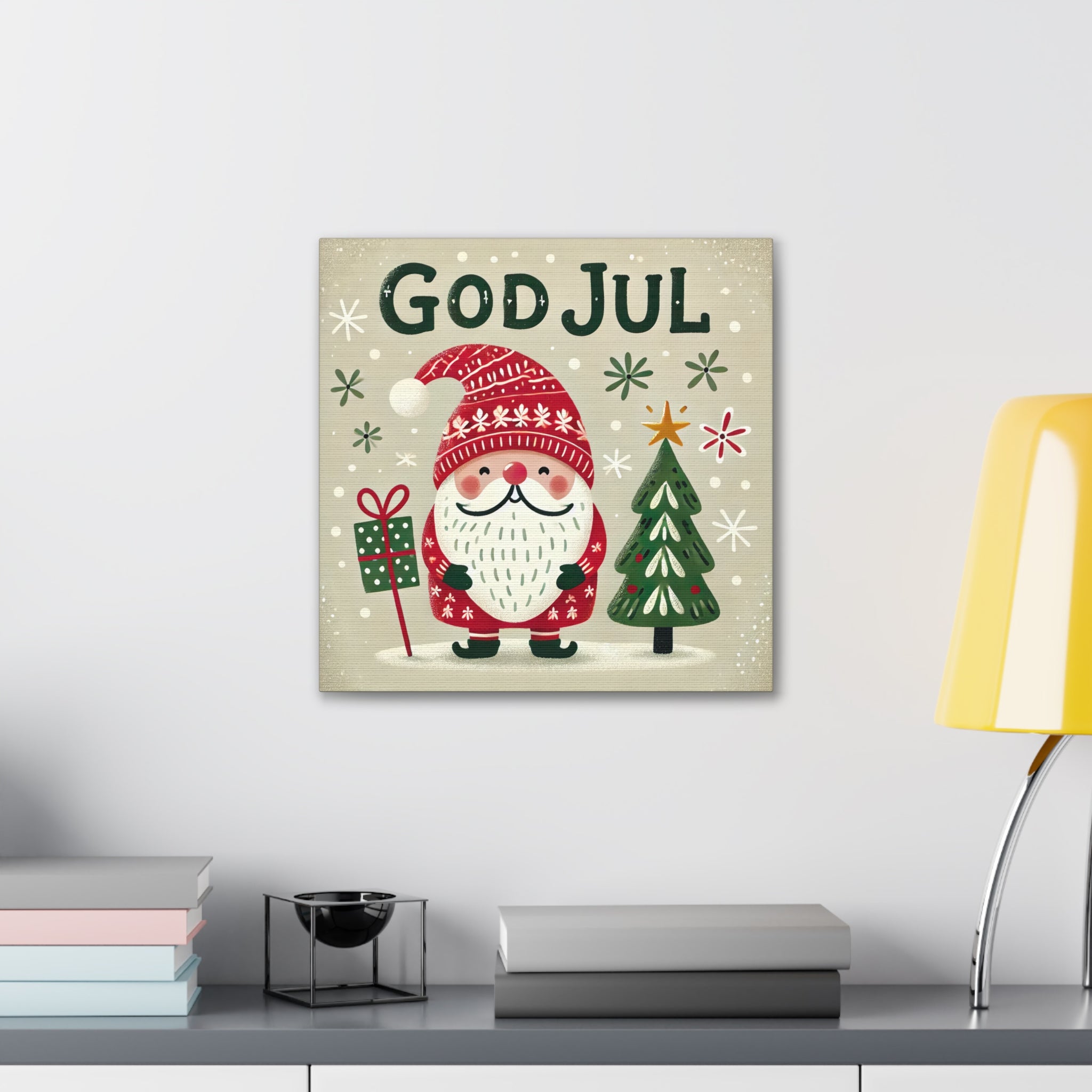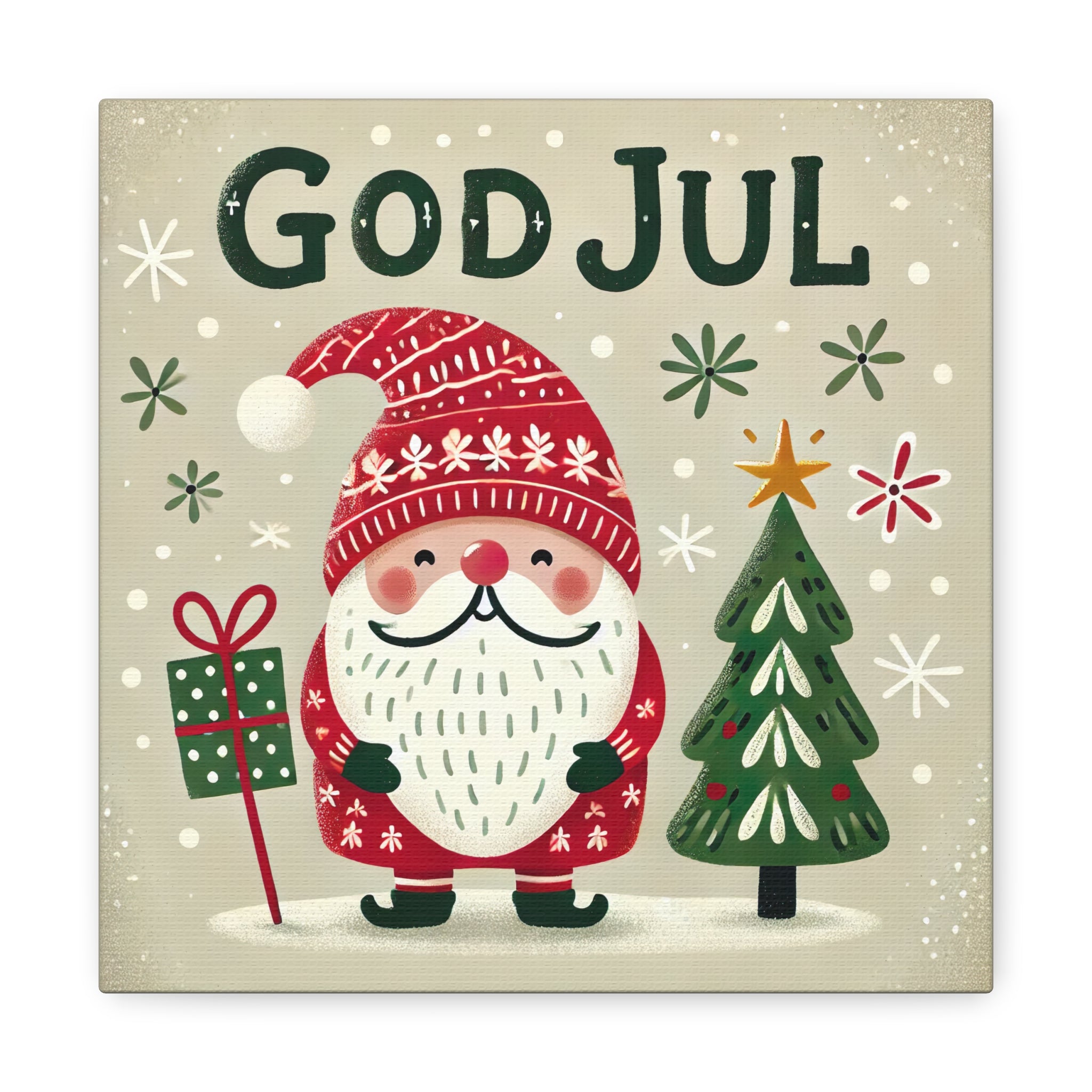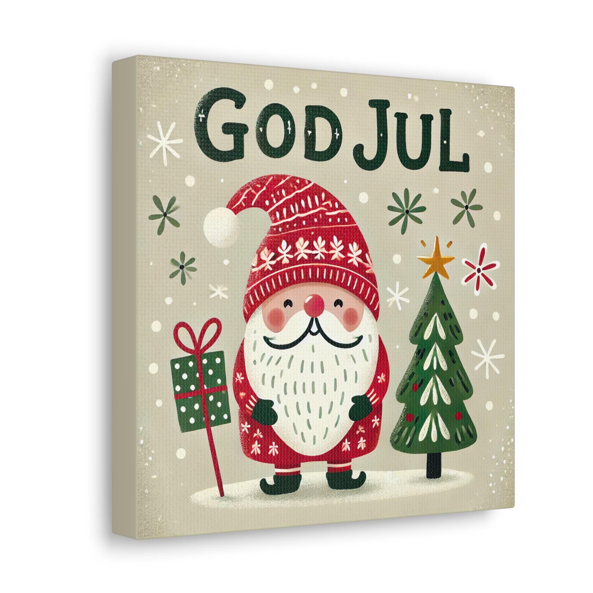God Jul Scandinavian Christmas Gnome Wall Art | Nordic Christmas Gift Home Decor | Farmhouse Wall Art | Square Canvas Gallery Art