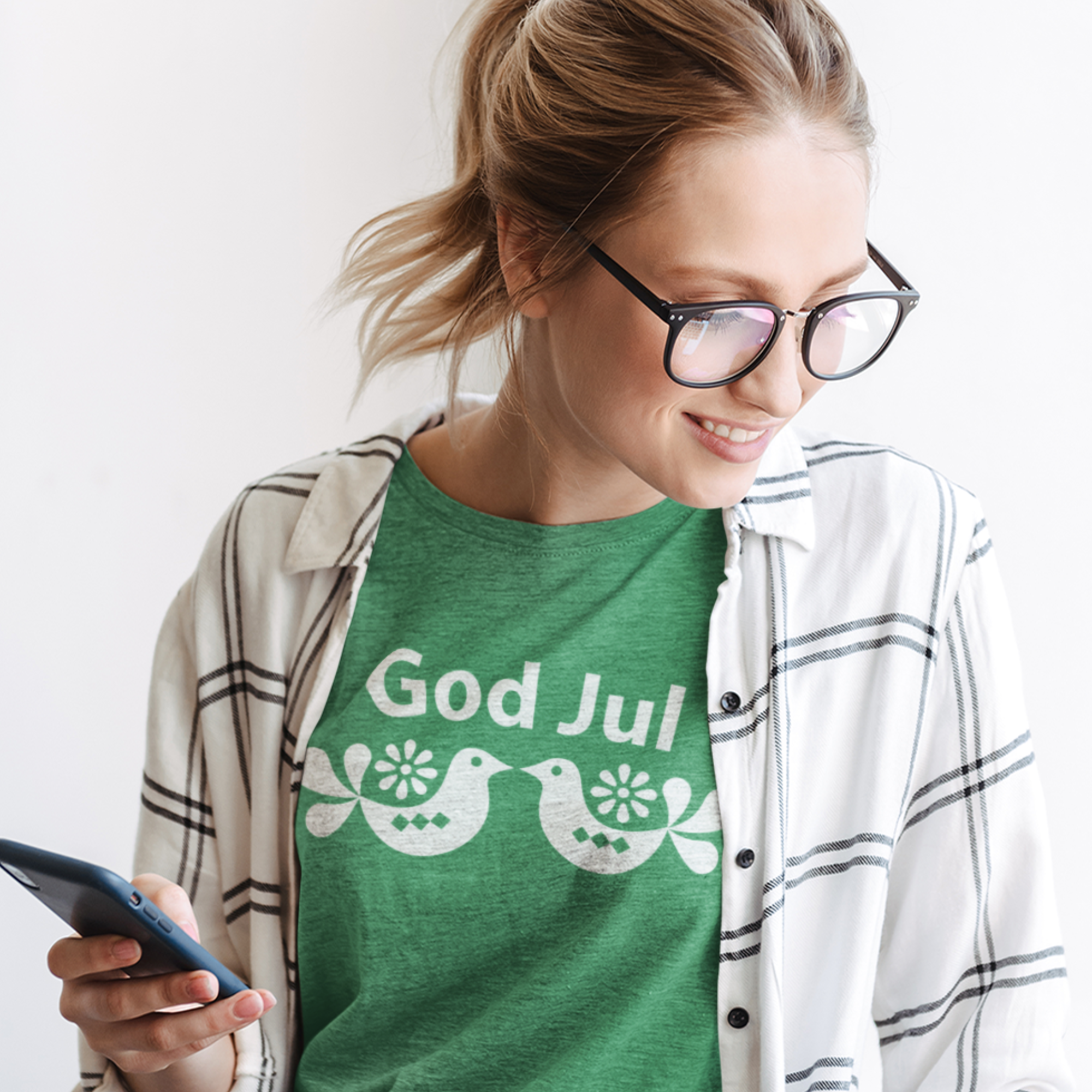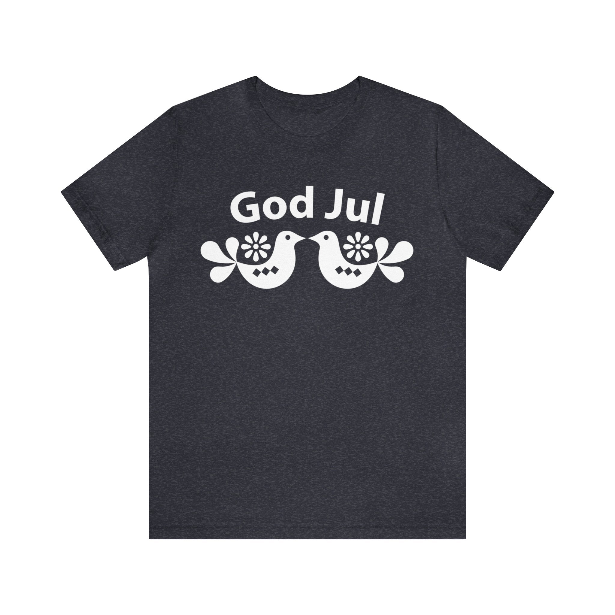 Our God Jul Christmas shirt is a perfect Christmas gift for anyone who loves Nordic or Scandi folk art. God Jul is a Norwegian and Sweidish phrase meaning "Merry Christmas"! This unisex jersey t-shirt comes in 6 beautiful colors!