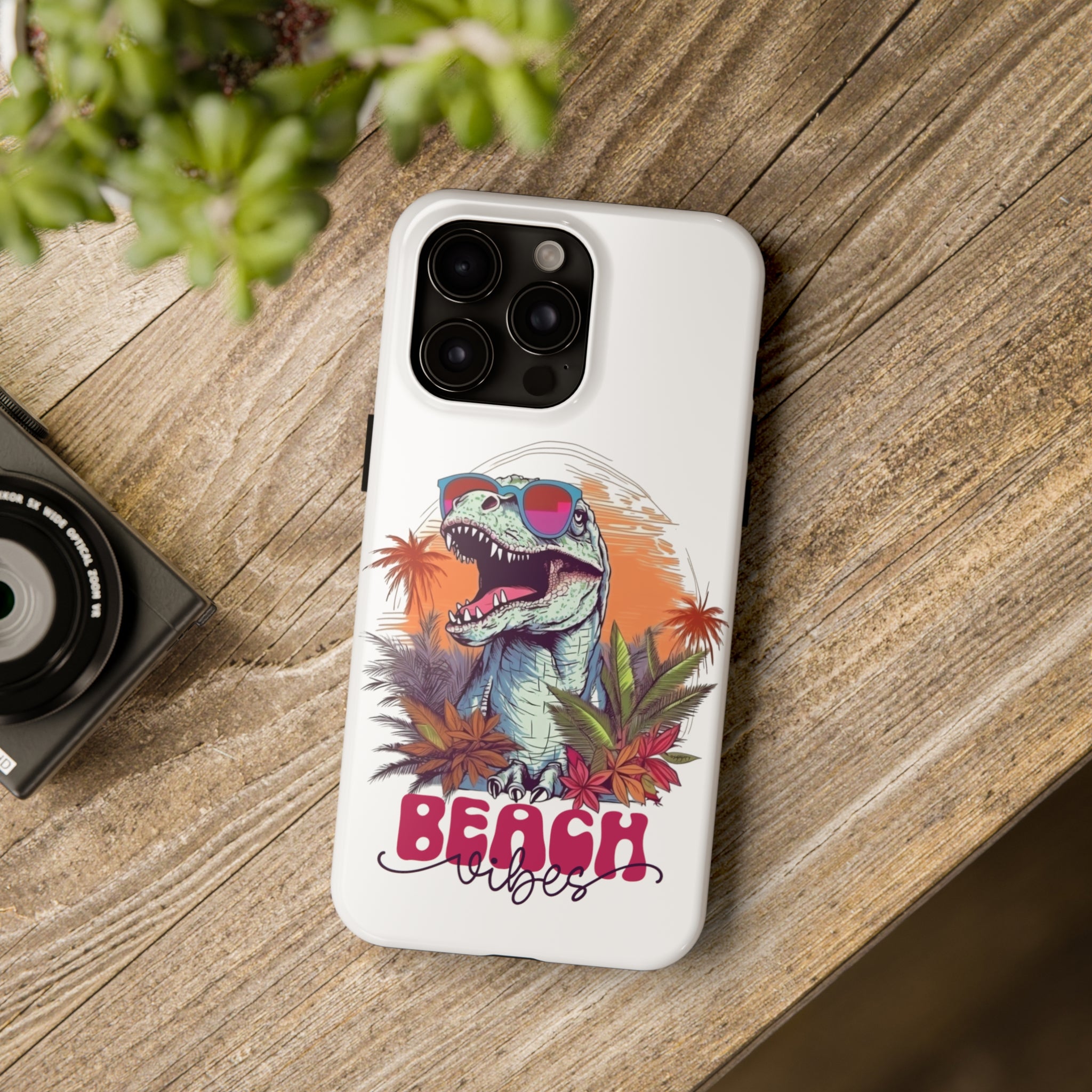 Beach Vibes T Rex iPhone Case | iPhone 15 14 13 12 11 Phone Case | Summer Dinosaur Gifts | Tough Impact-resistant Phone Case