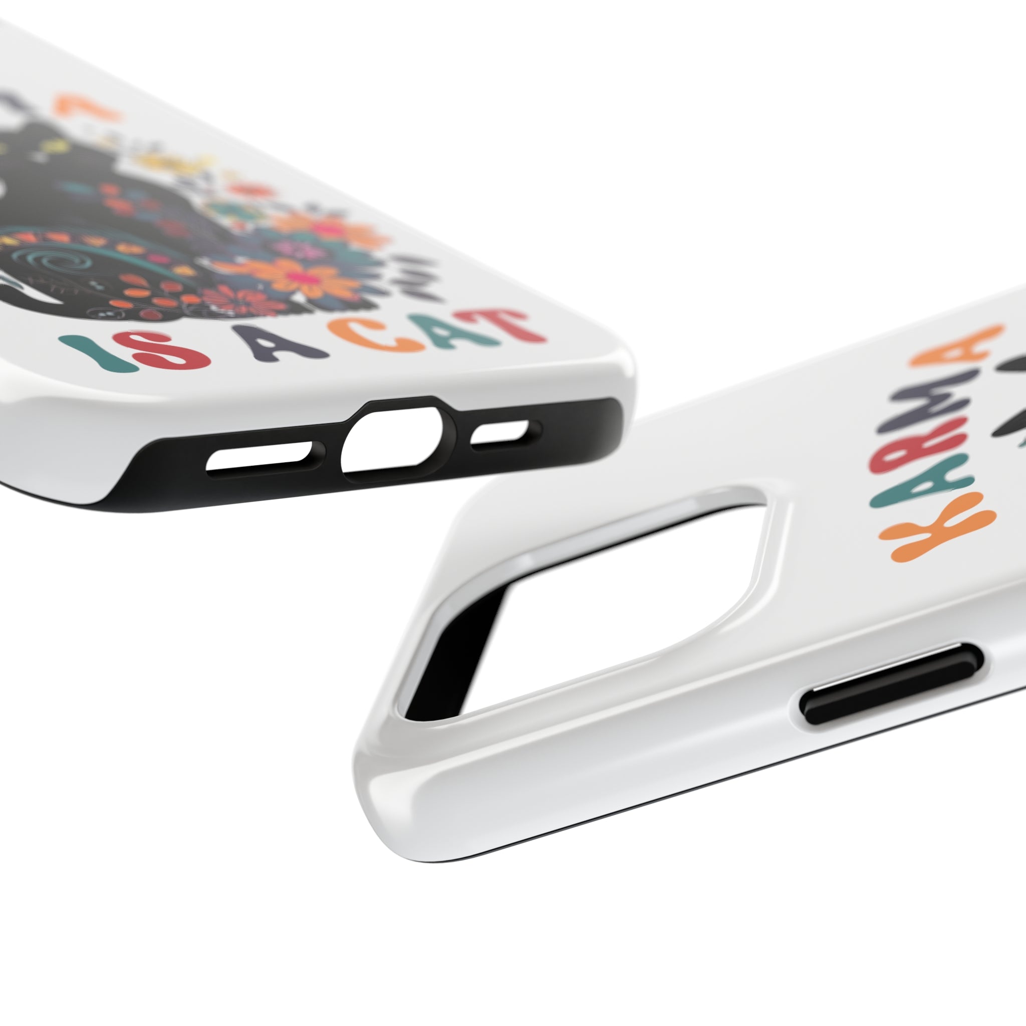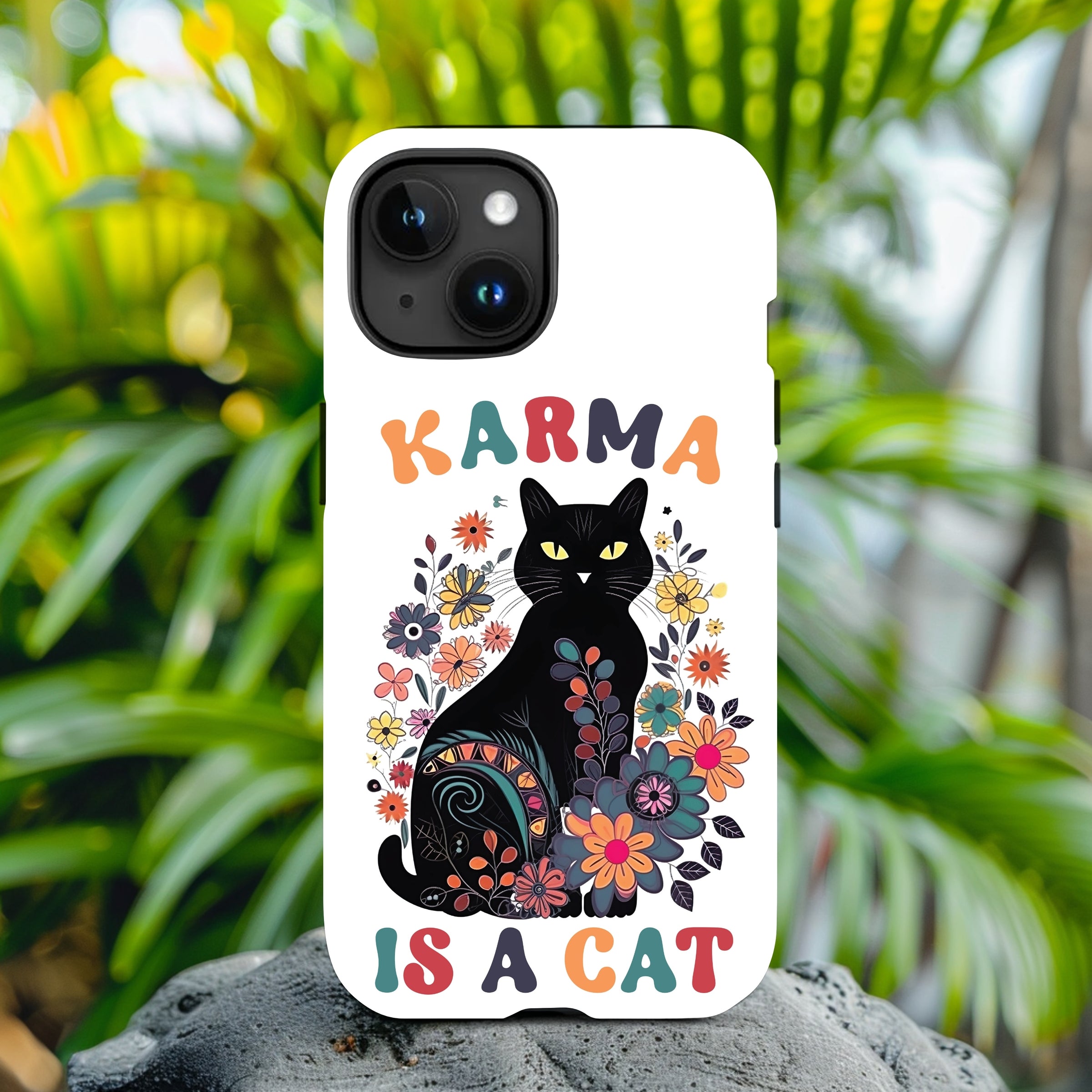 Karma Is A Cat iPhone Case | iPhone 16 15 14 13 12 Phone Case | Black Cat Lover Gift | Tough Impact-resistant Phone Case