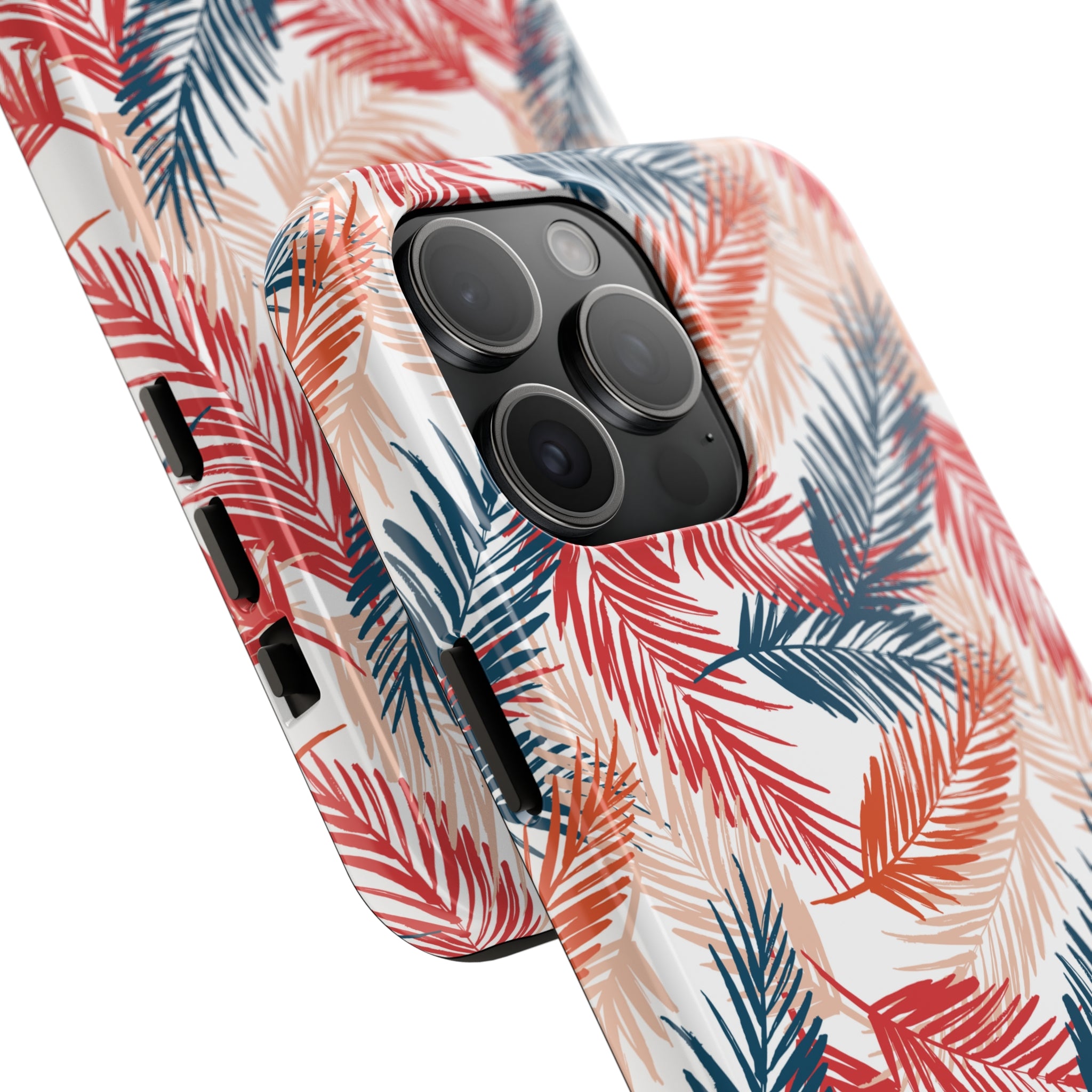 Our tropical palm trees iPhone Case is a tough and durable phone case designed to protect your iPhone from impacts and scratches. This unique case features a colorful palm leaves pattern that is a perfect beach bum gift or for anyone who wants that extra protection and strength! You can select from any of the iPhone 15, 14, 13, 12, and 11 models in the dropdown.