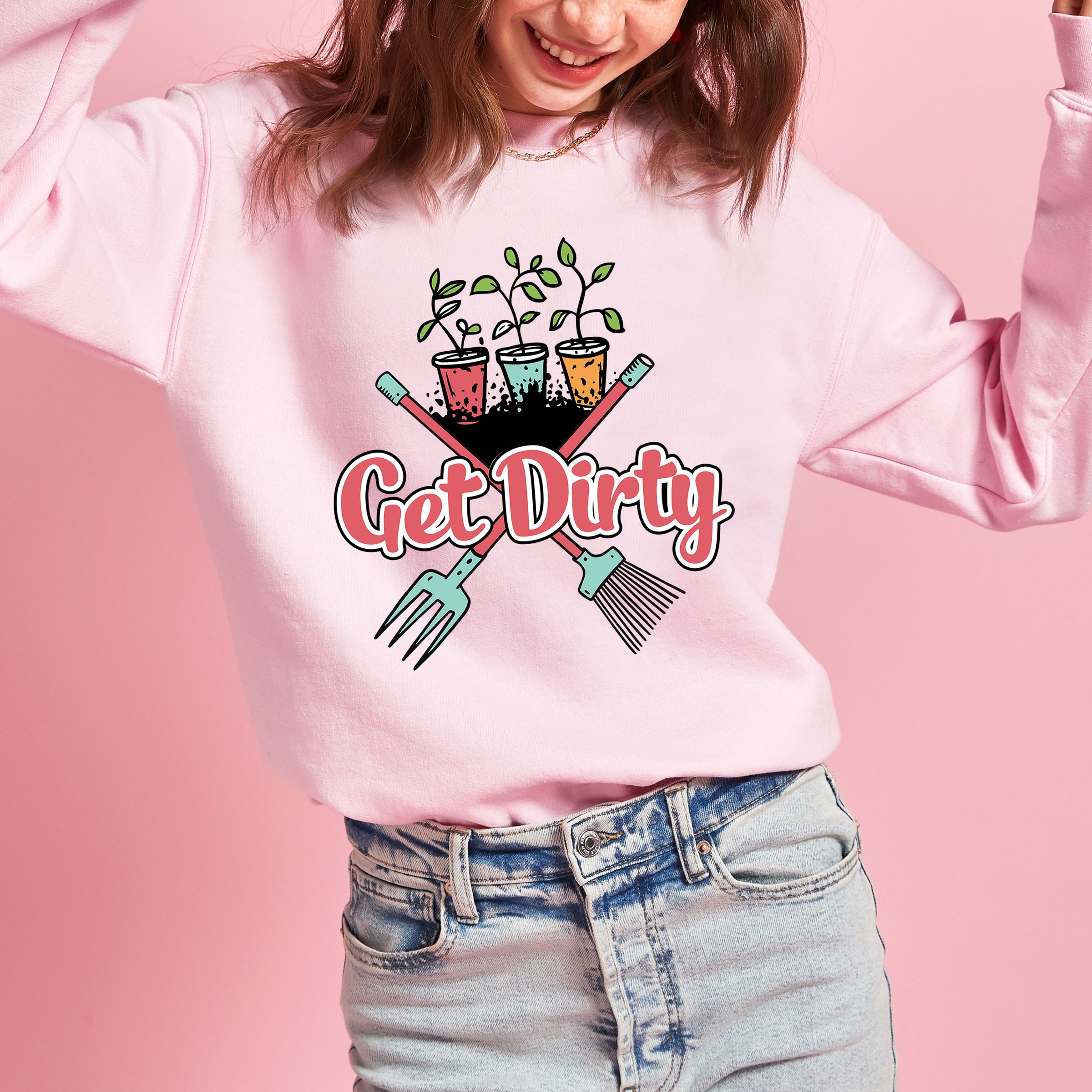 Our Get Dirty funny gardening shirt is a perfect plant lover gift for your favorite plant lady! This unisex crewneck sweatshirt comes in 6 colors.