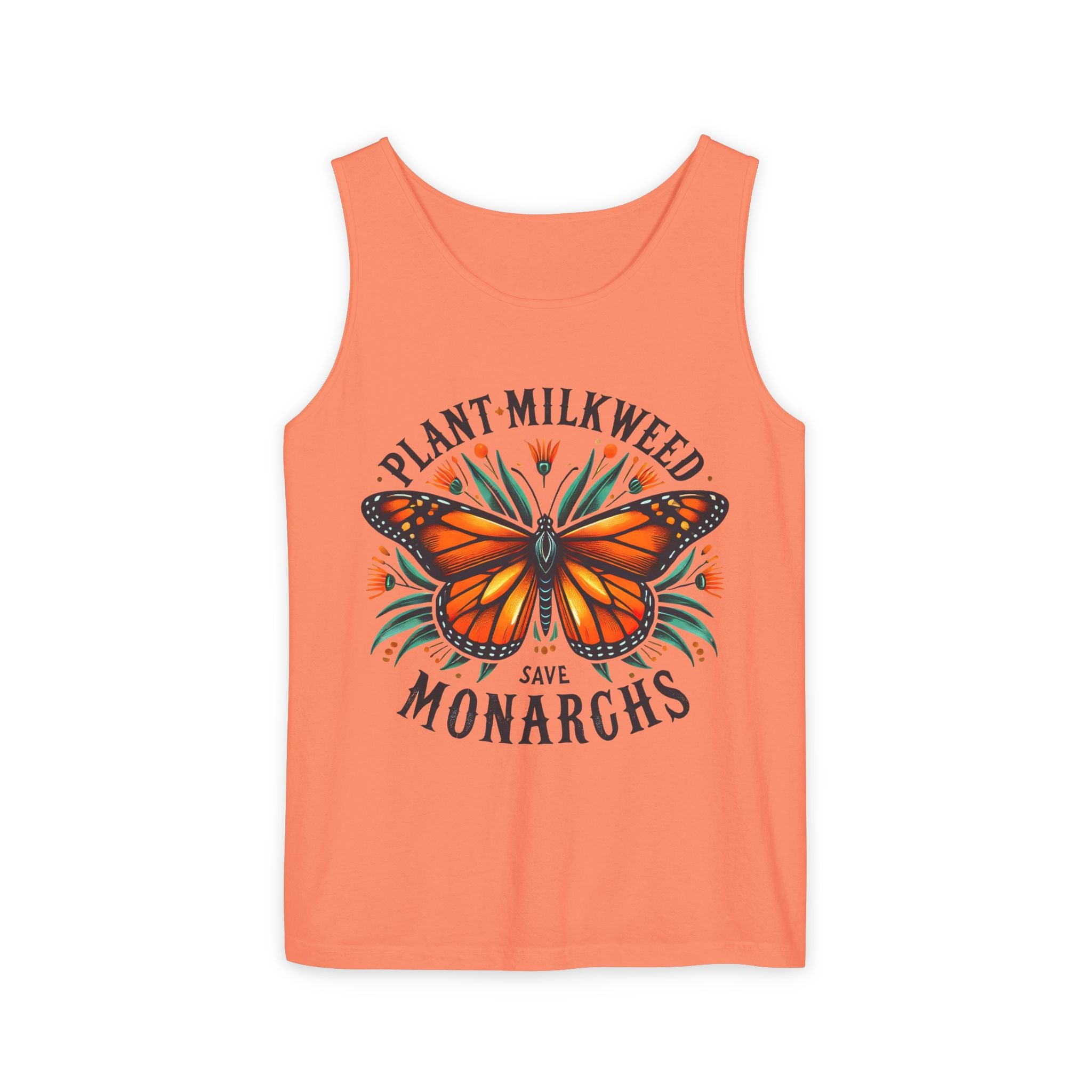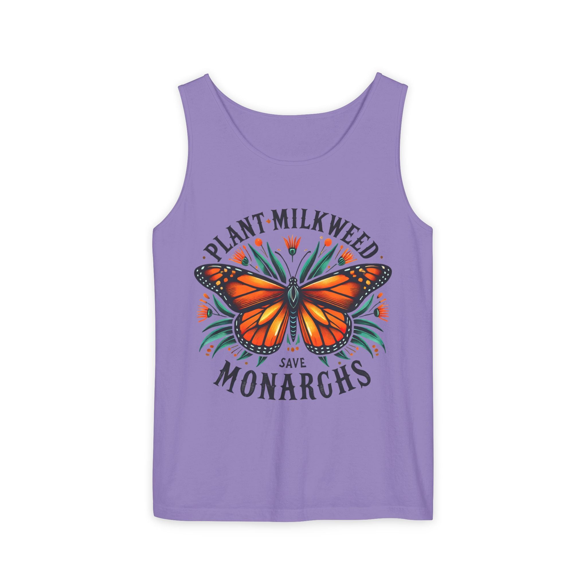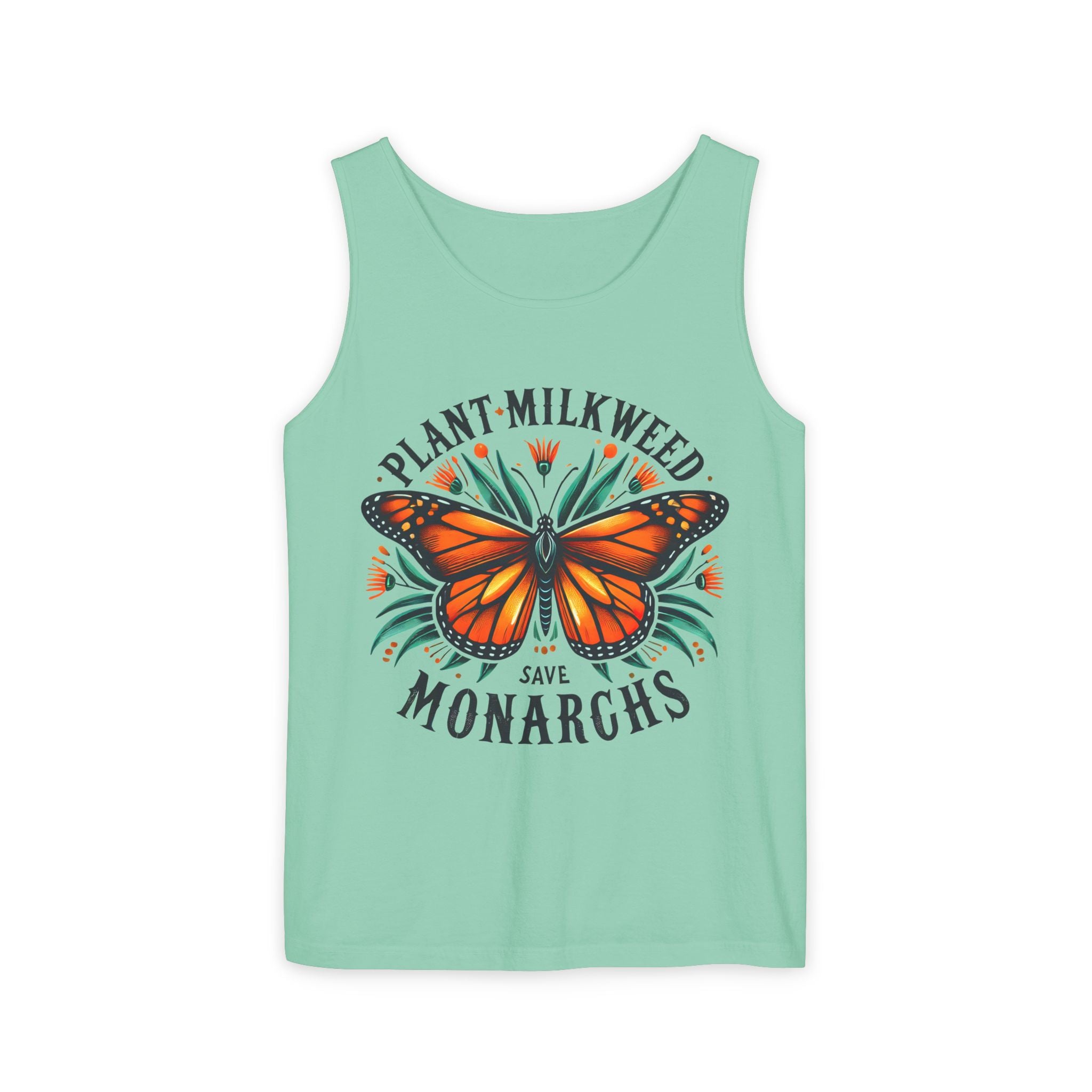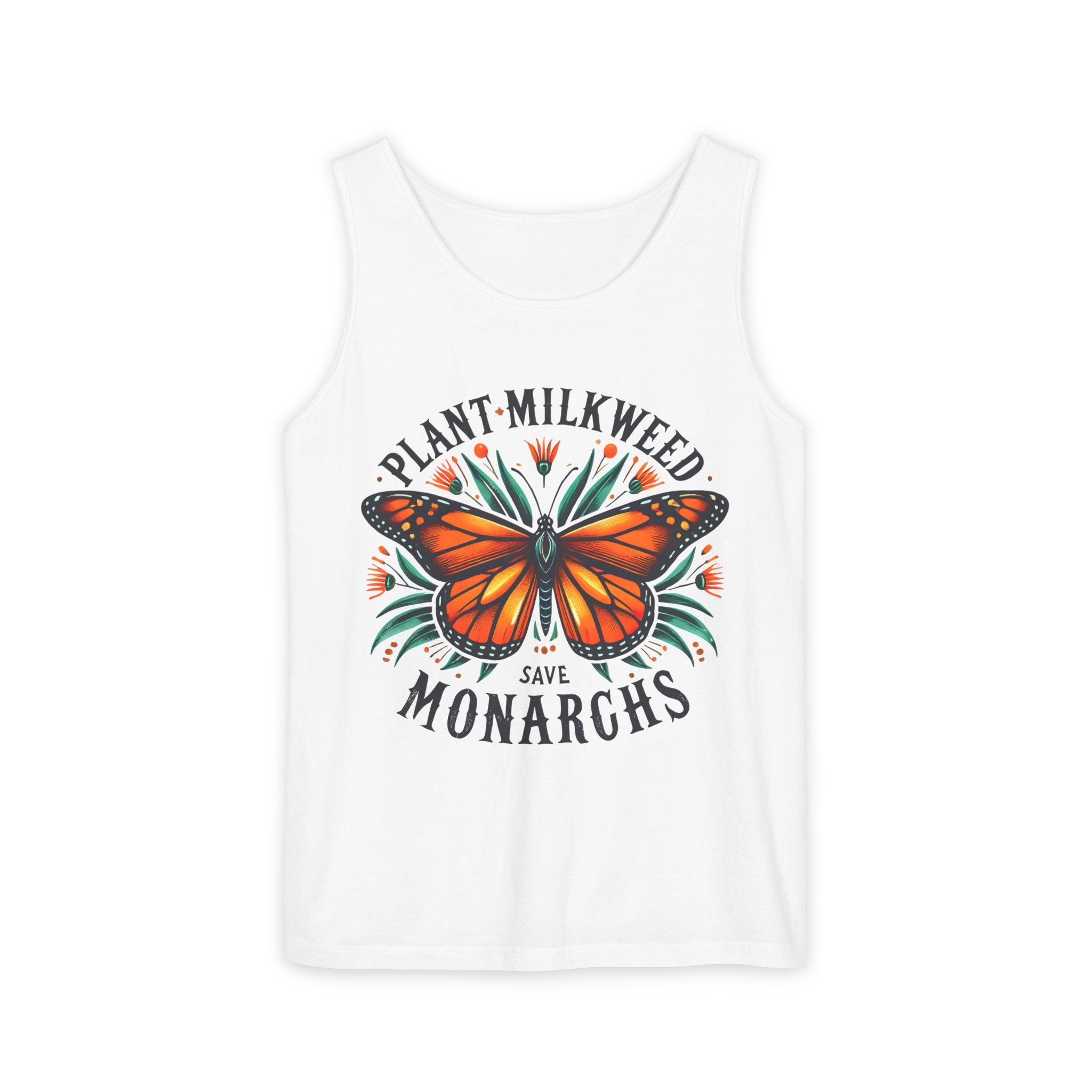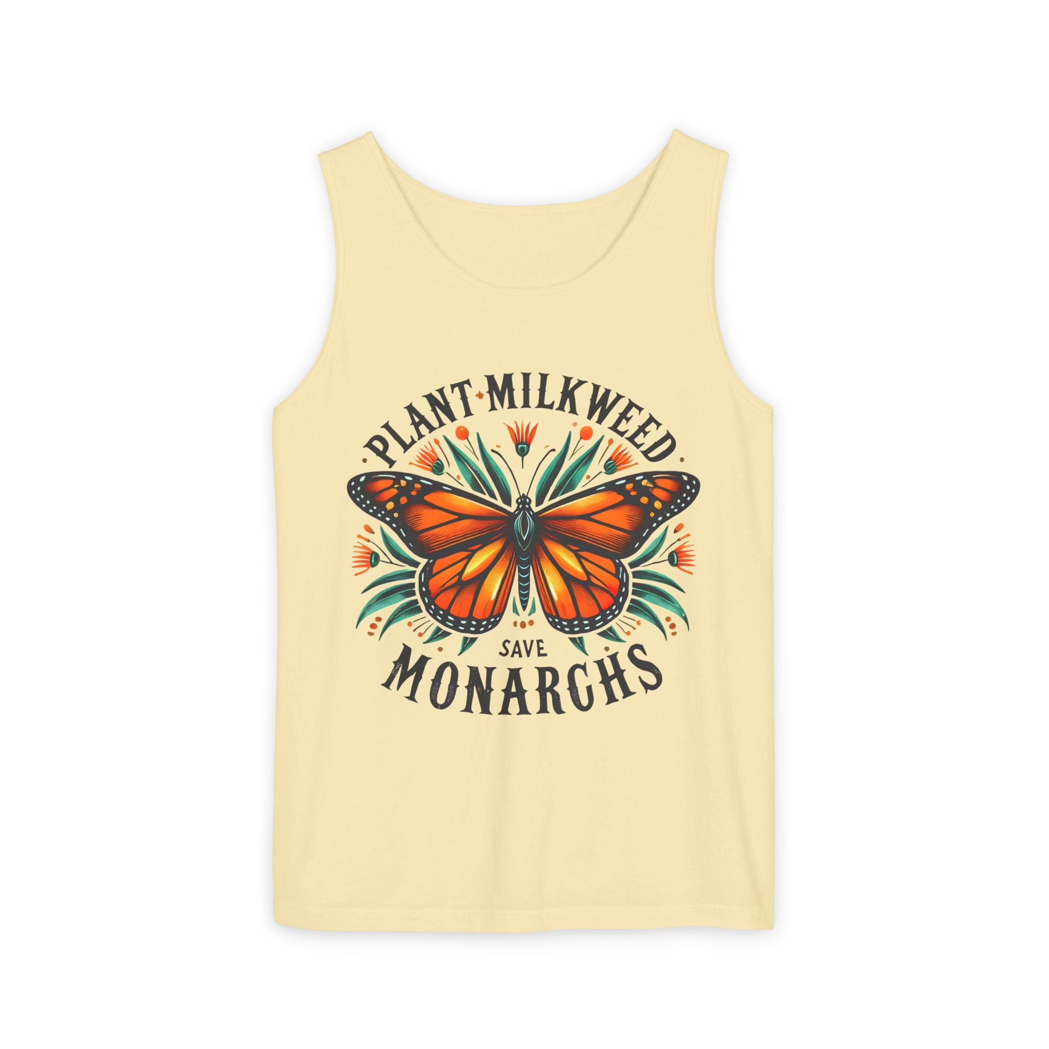 Plant Milkweed Save Monarchs Butterfly Shirt | Nature Lover Gift | Butterfly Garden Shirt | Unisex Garment-Dyed Tank Top