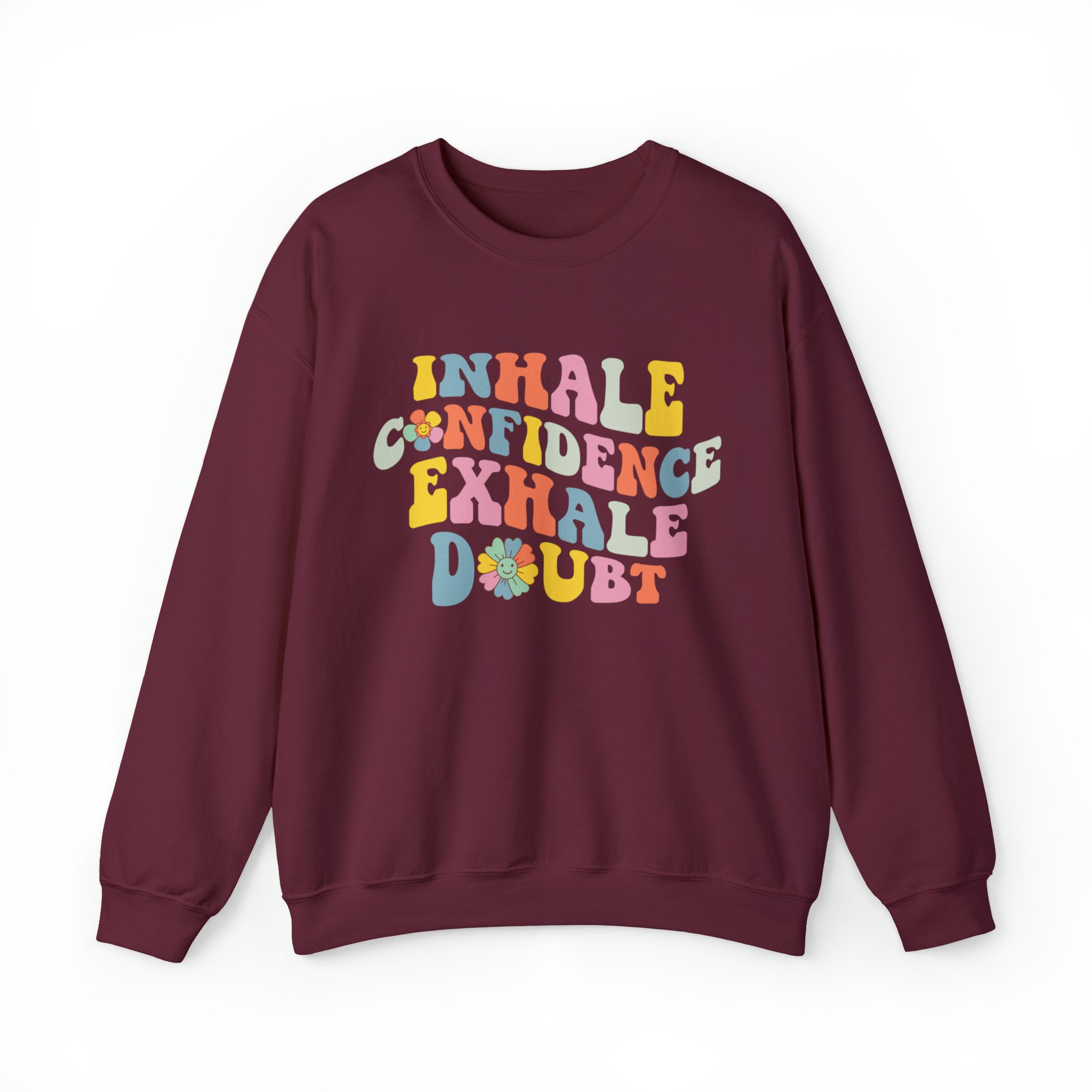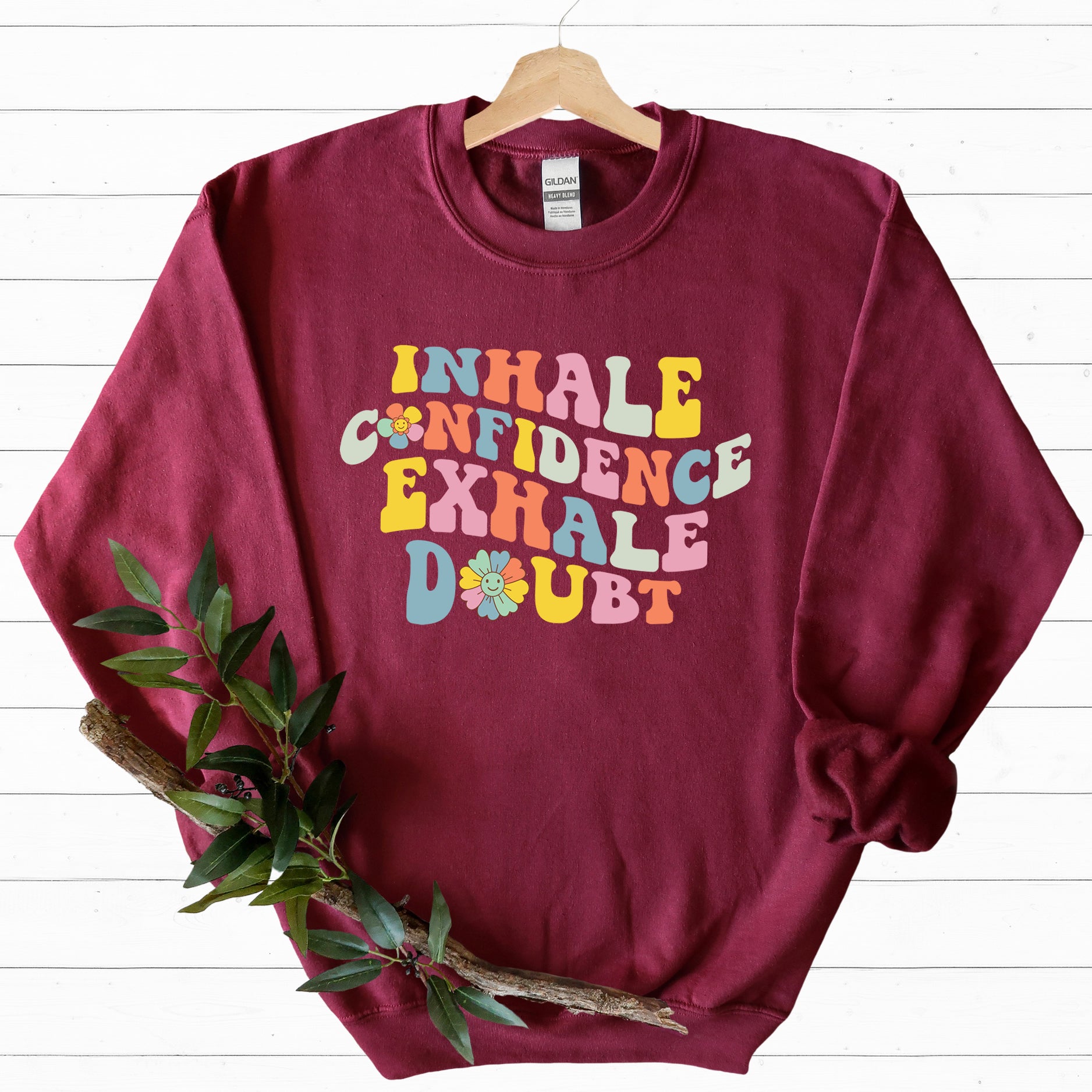 Our psychology shirt features the text (in a retro font) "Inhale Confidence Exhale Doubt" and is a perfect gift for a school counselor or for anyone who loves yoga and meditation! This school counselor shirt is a unisex crewneck sweatshirt that comes in 5 colors.