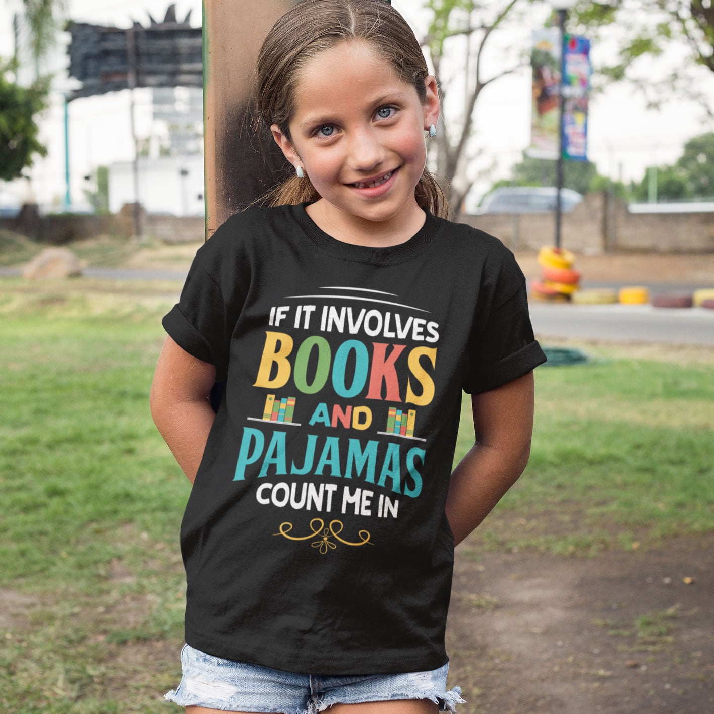 Our funny book worm shirt features the text: "If it involves books and pajamas count me in" and is a perfect book lover gift for your favorite bookworm! This reading shirt is a Bella Canvas youth kids tee that comes in 2 colors.