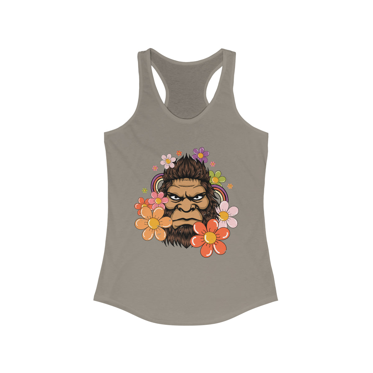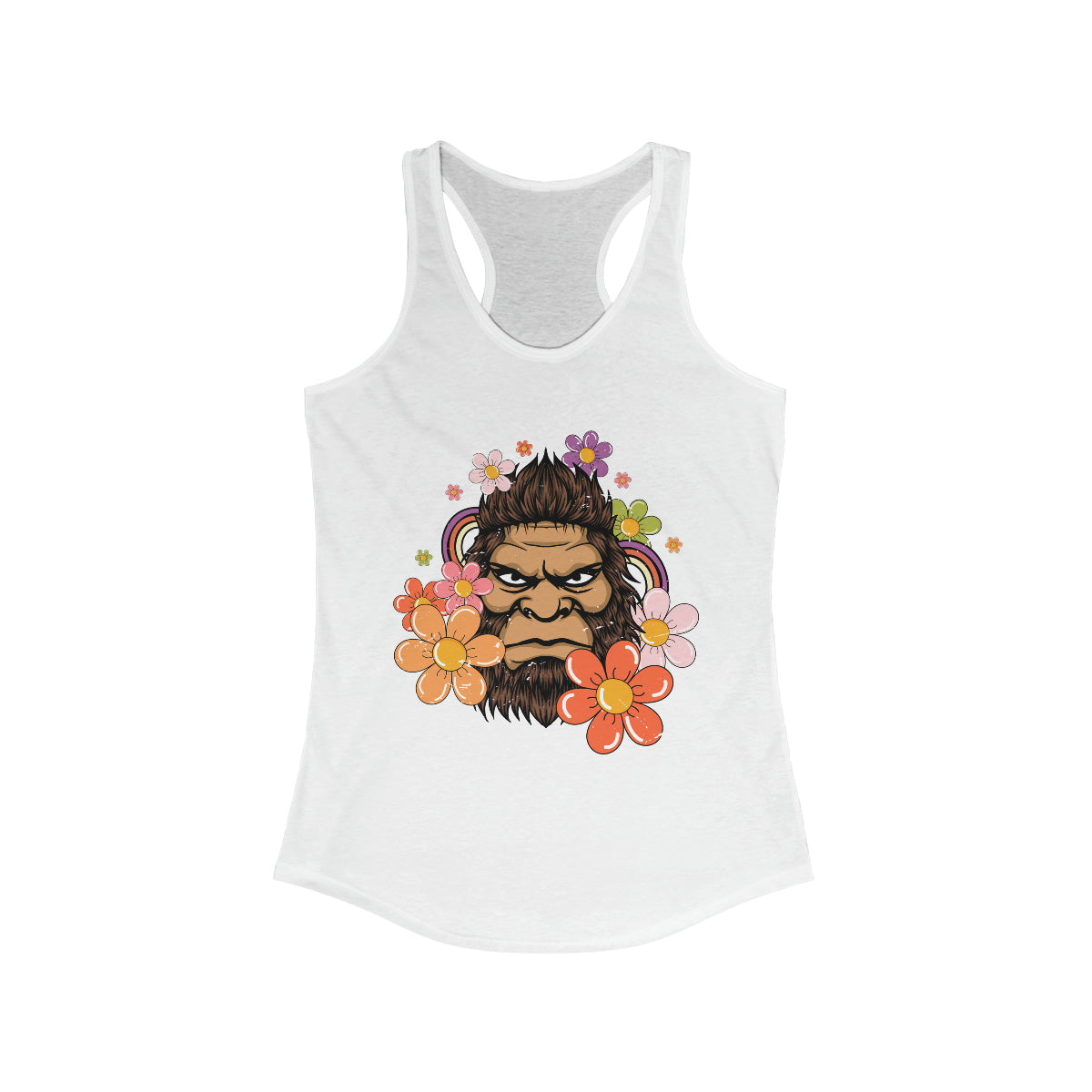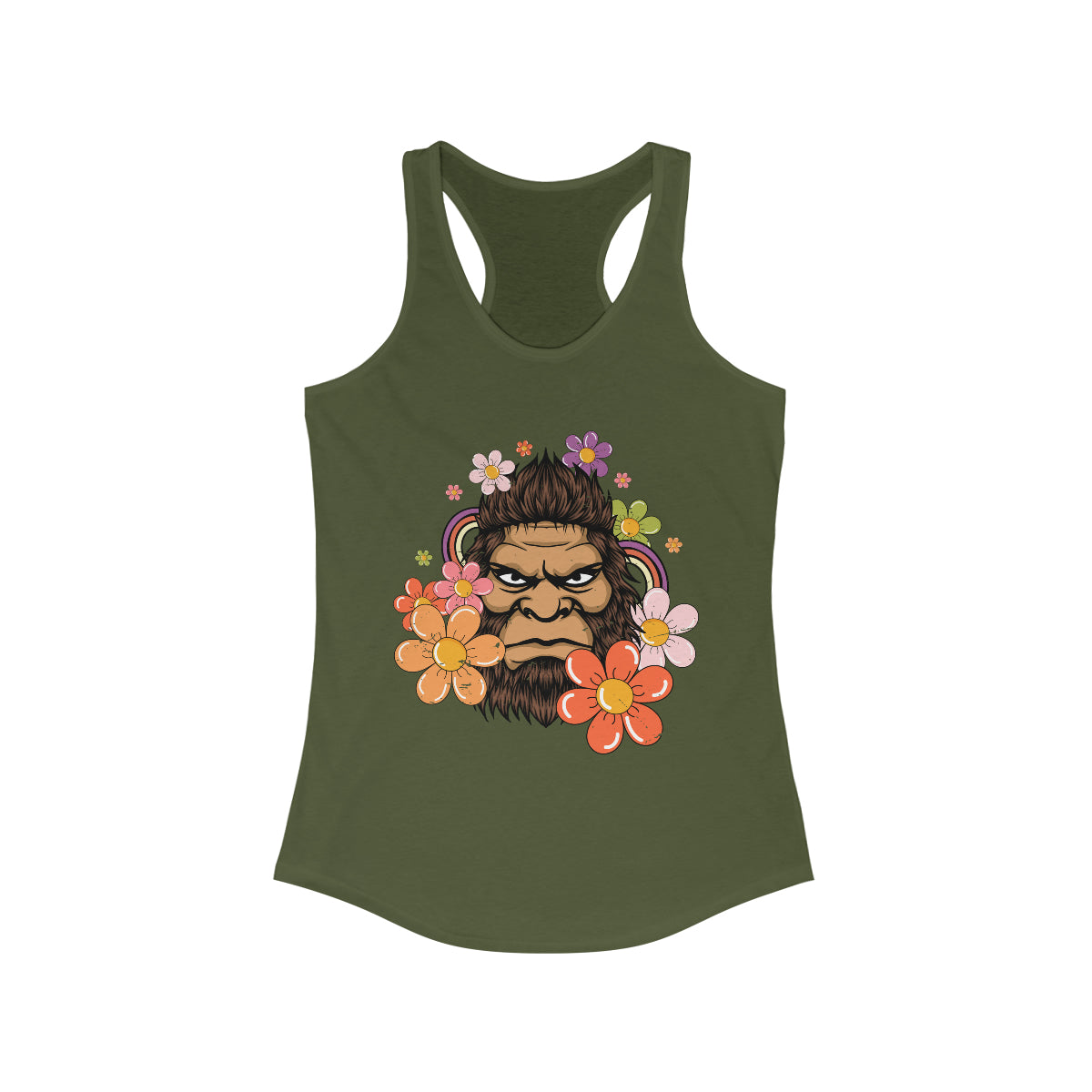 Retro 70s Floral Bigfoot Shirt | Funny Flower Power Shirt | Women's Slim-fit Racerback Tank Top