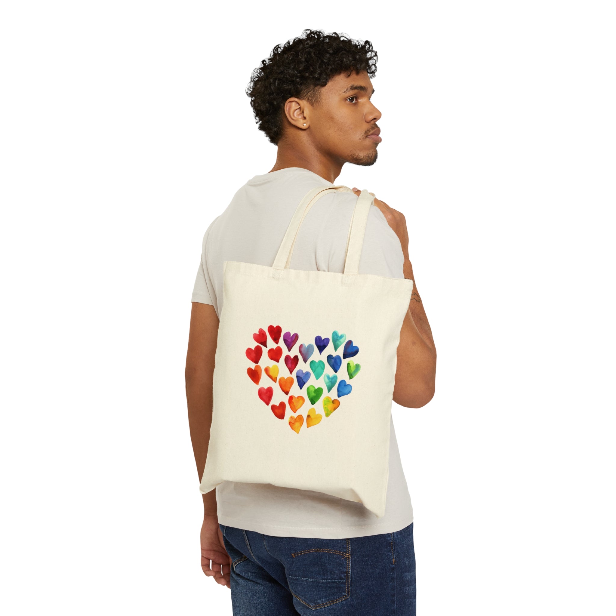 Watercolor Art Hearts Love Tote Bag | Valentine's Day Gift Bag | Cotton Canvas Tote Bag