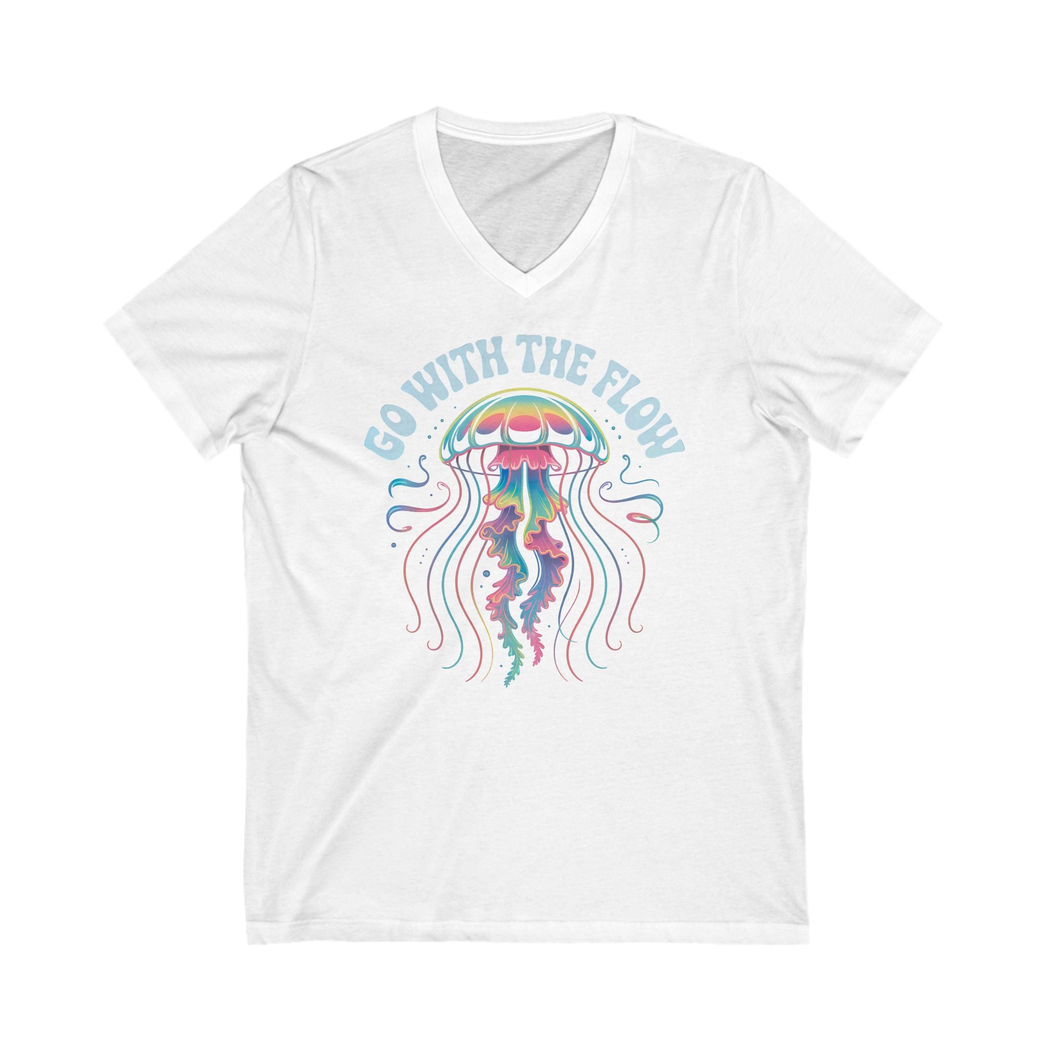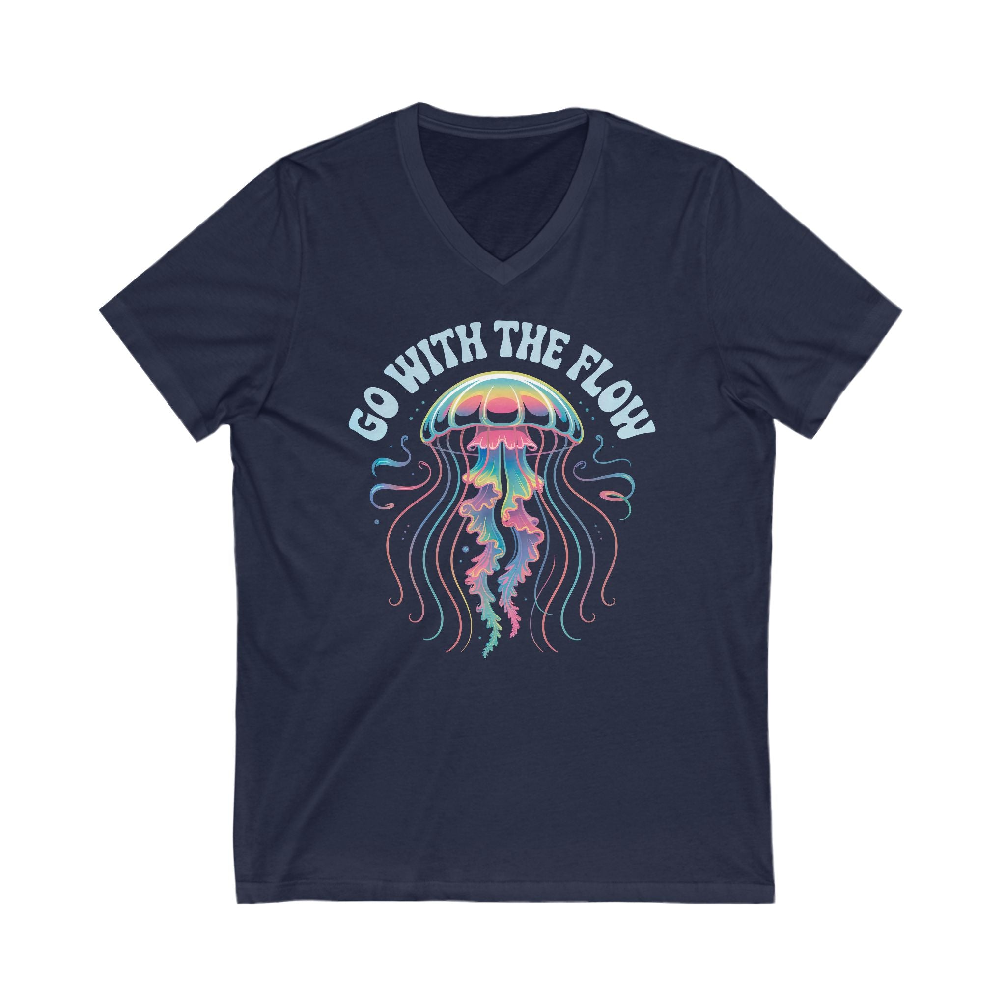 Go With The Flow Cute Jellyfish Shirt | Marine Life Mindfulness Shirt | Beach Bum Gift | Unisex Jersey V-neck T-shirt