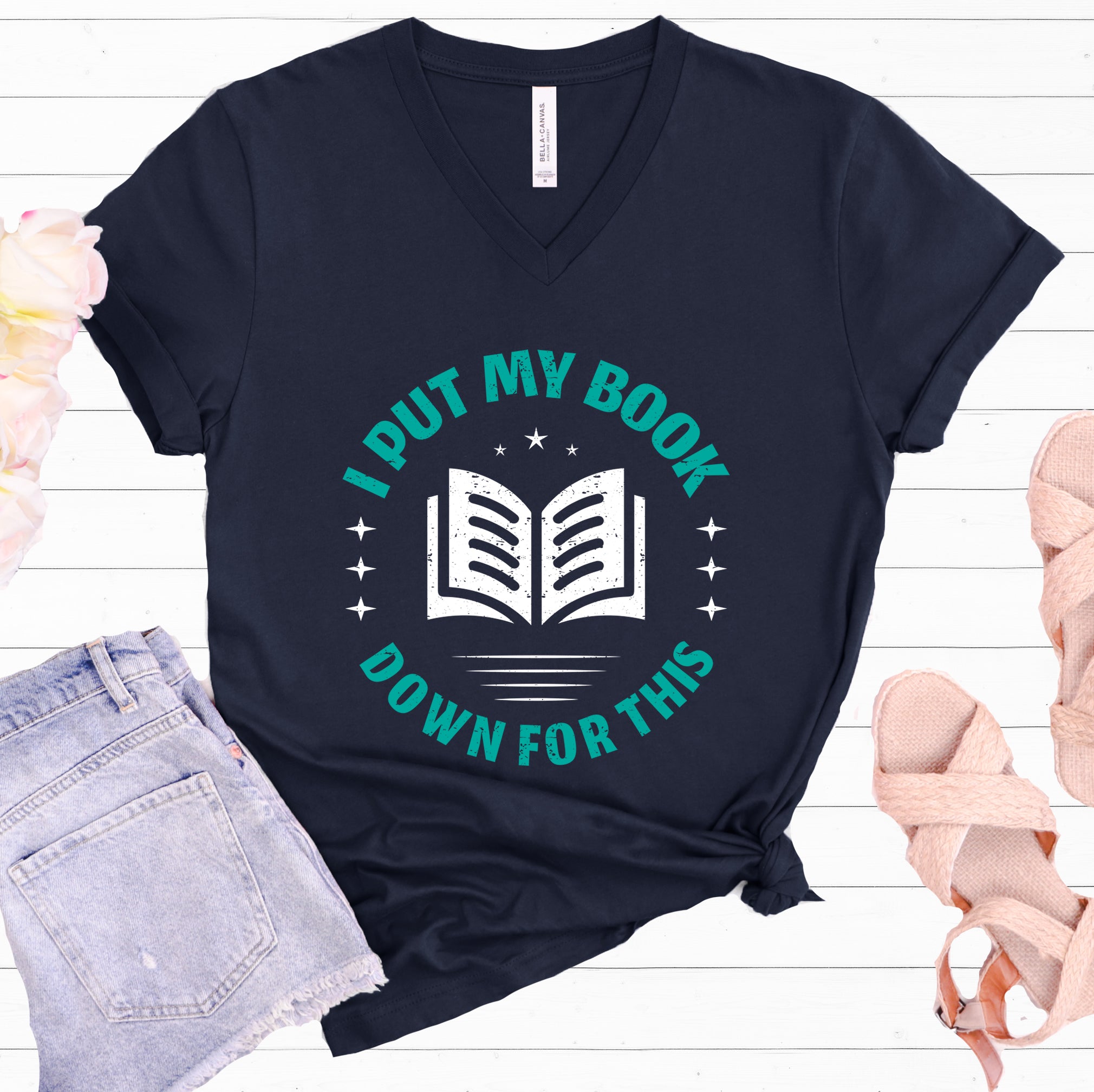 I Put My Book Down Funny Book Lover Shirt | Reader Gift | Book Worm Gift | Unisex Jersey V-neck T-shirt
