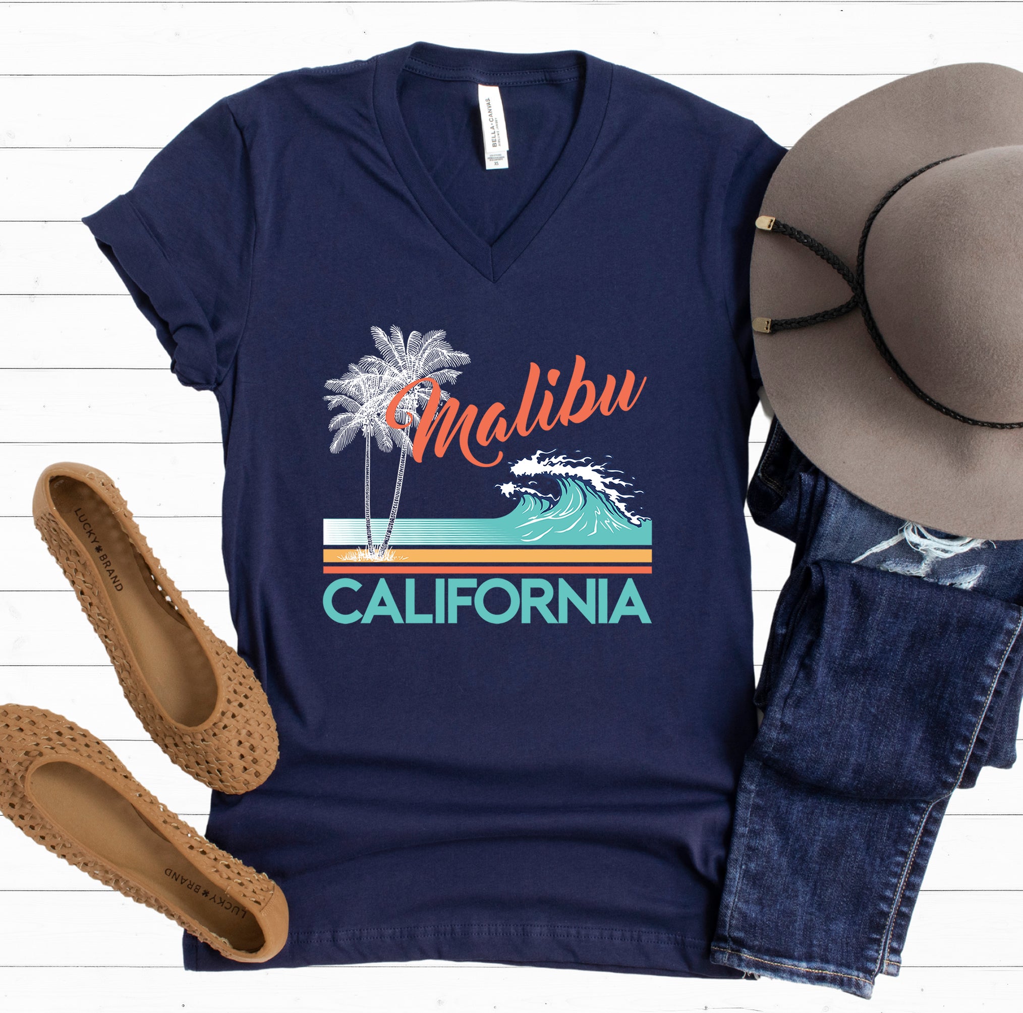 Our Malibu California beach bum shirt is perfect as a surfing gift or for anyone who loves Malibu! This vintage style unisex v-neck t-shirt comes in 2 colors.