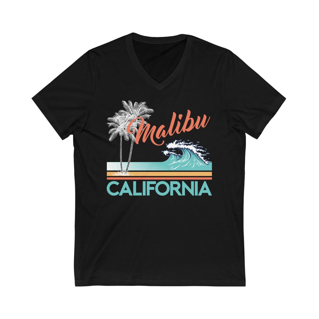 Malibu Beach Bum Vintage California Shirt | California Surfing Gift | Unisex Jersey V-neck T-shirt