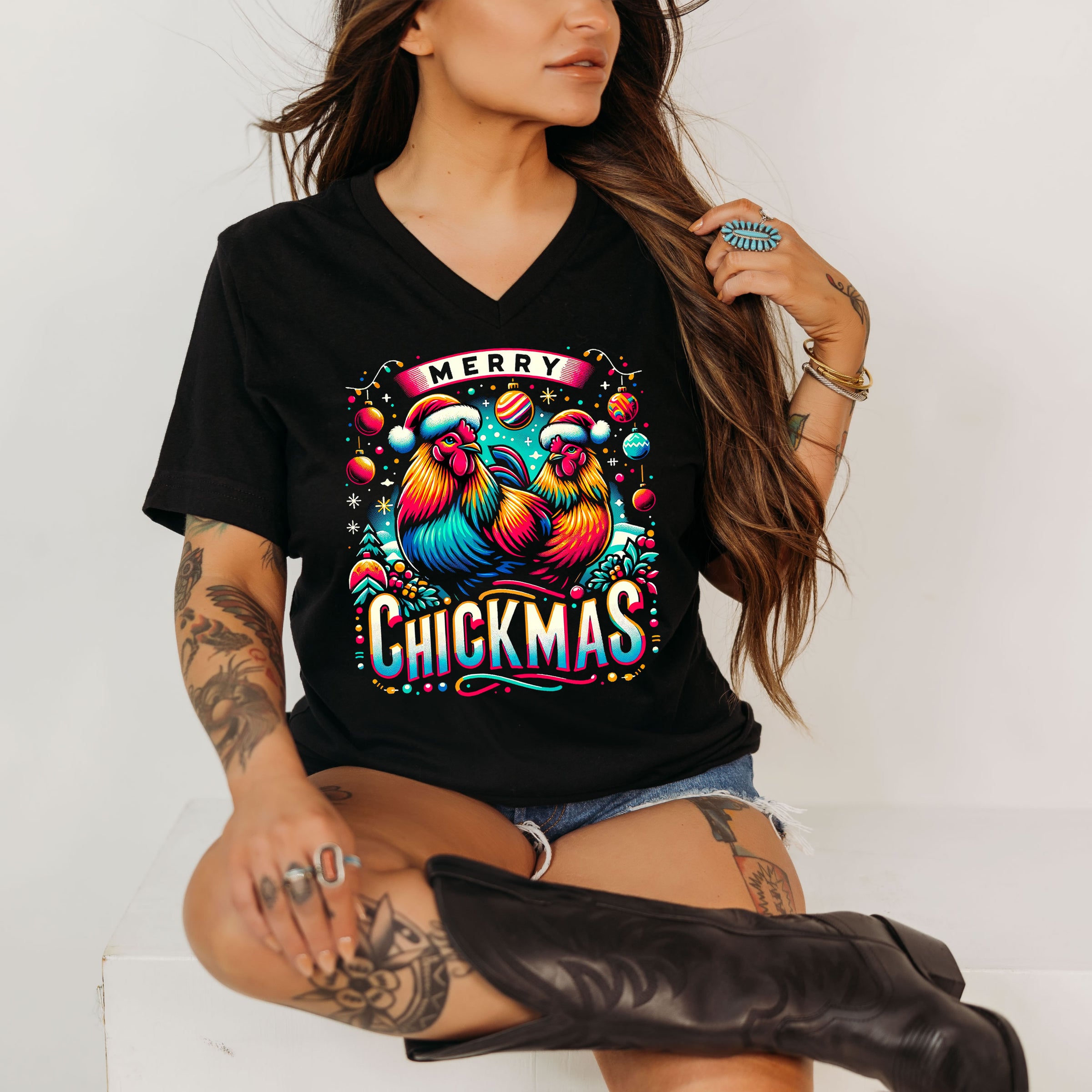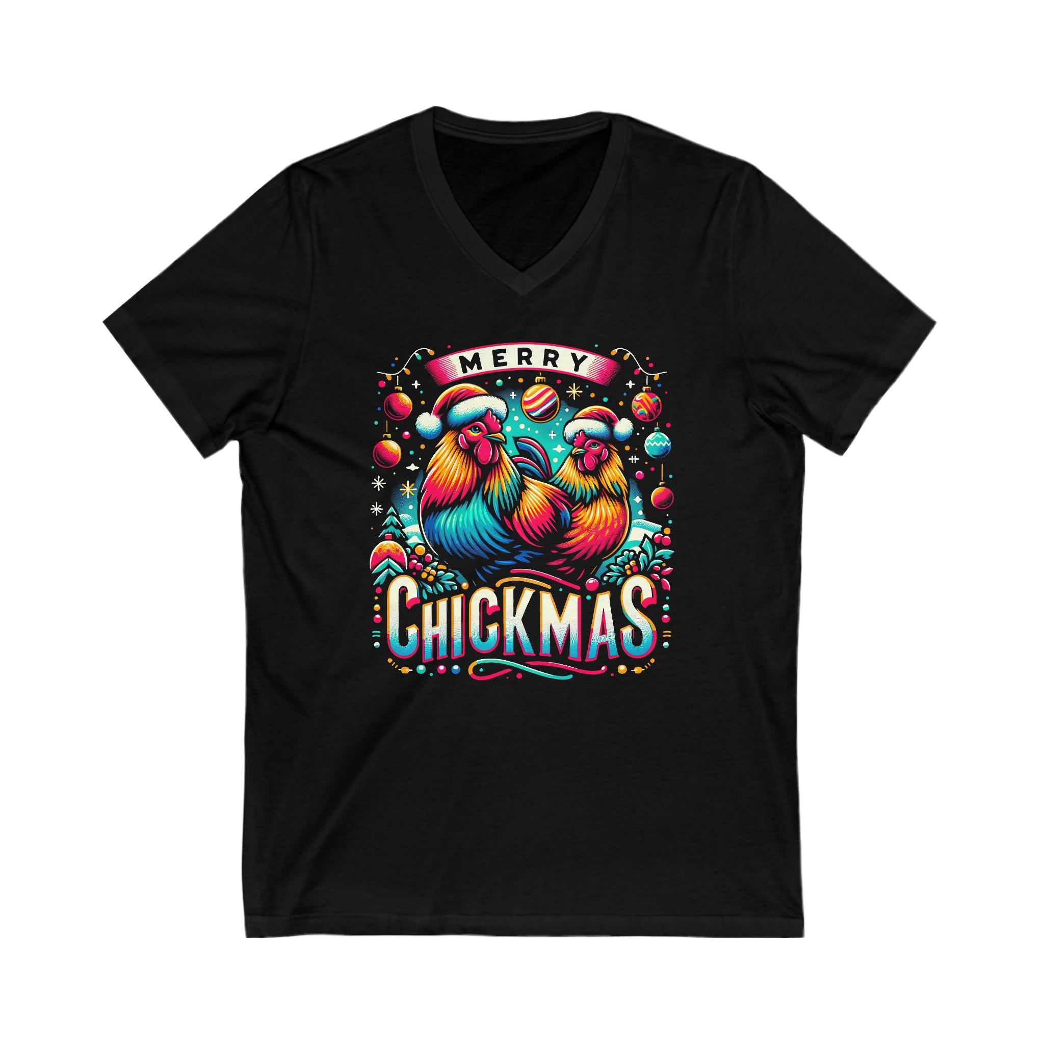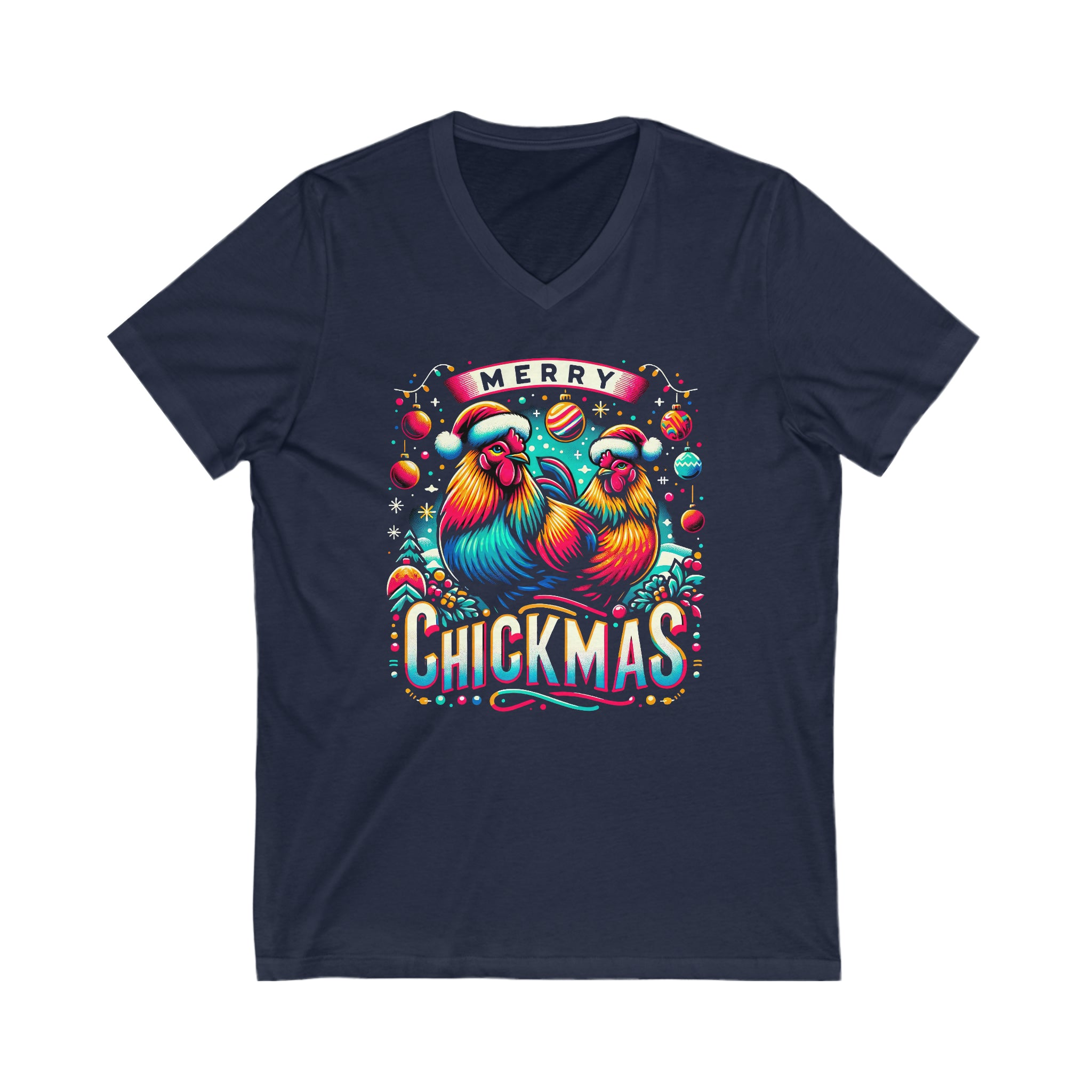 Merry Chickmas Christmas Chicken Shirt | Farm Life Chicken Farmer Gift | Unisex V-neck T-shirt