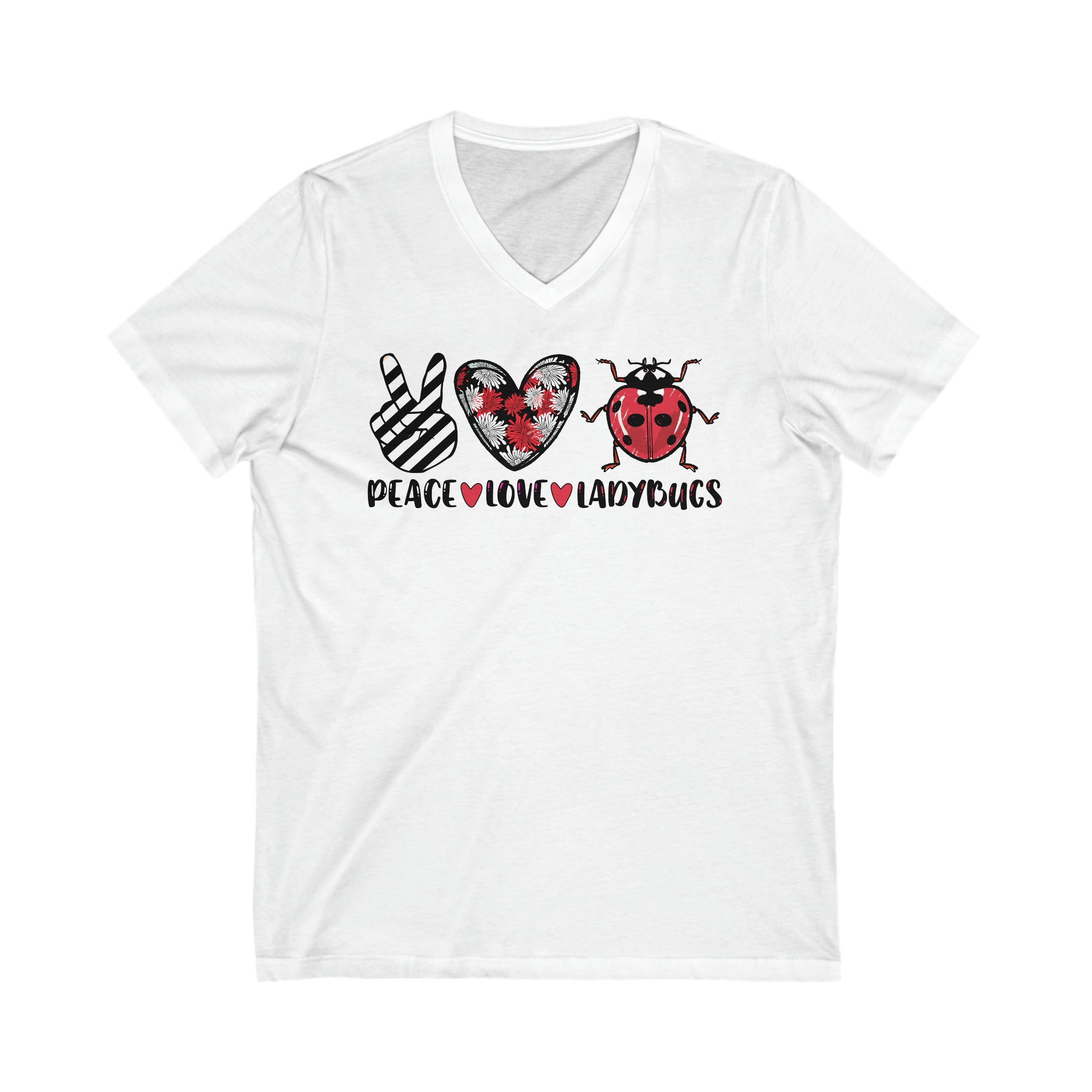 Peace Love Ladybug Gifts, Insect Shirt, Lady Bug Nature Shirt, Unisex Jersey V-neck T-shirt